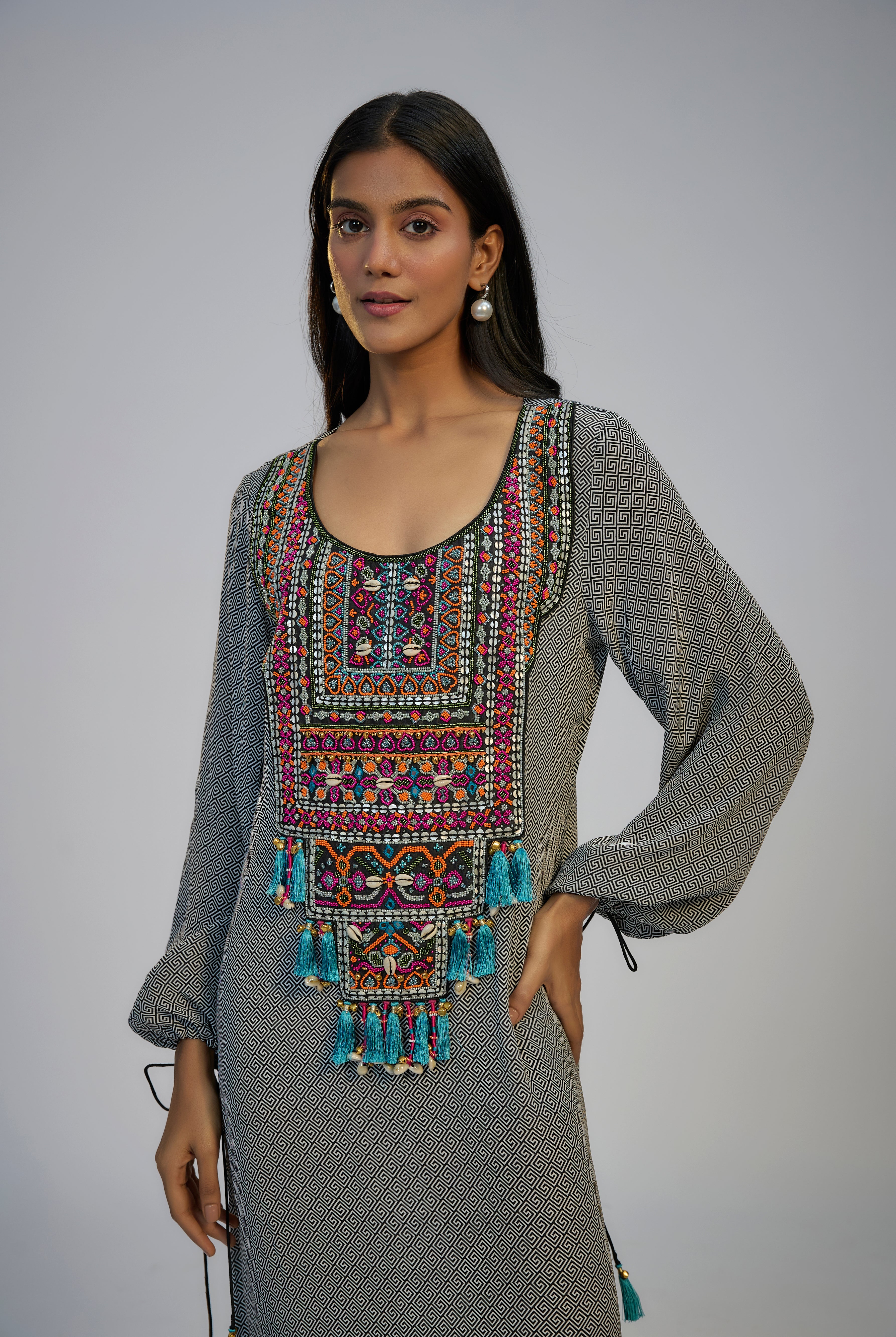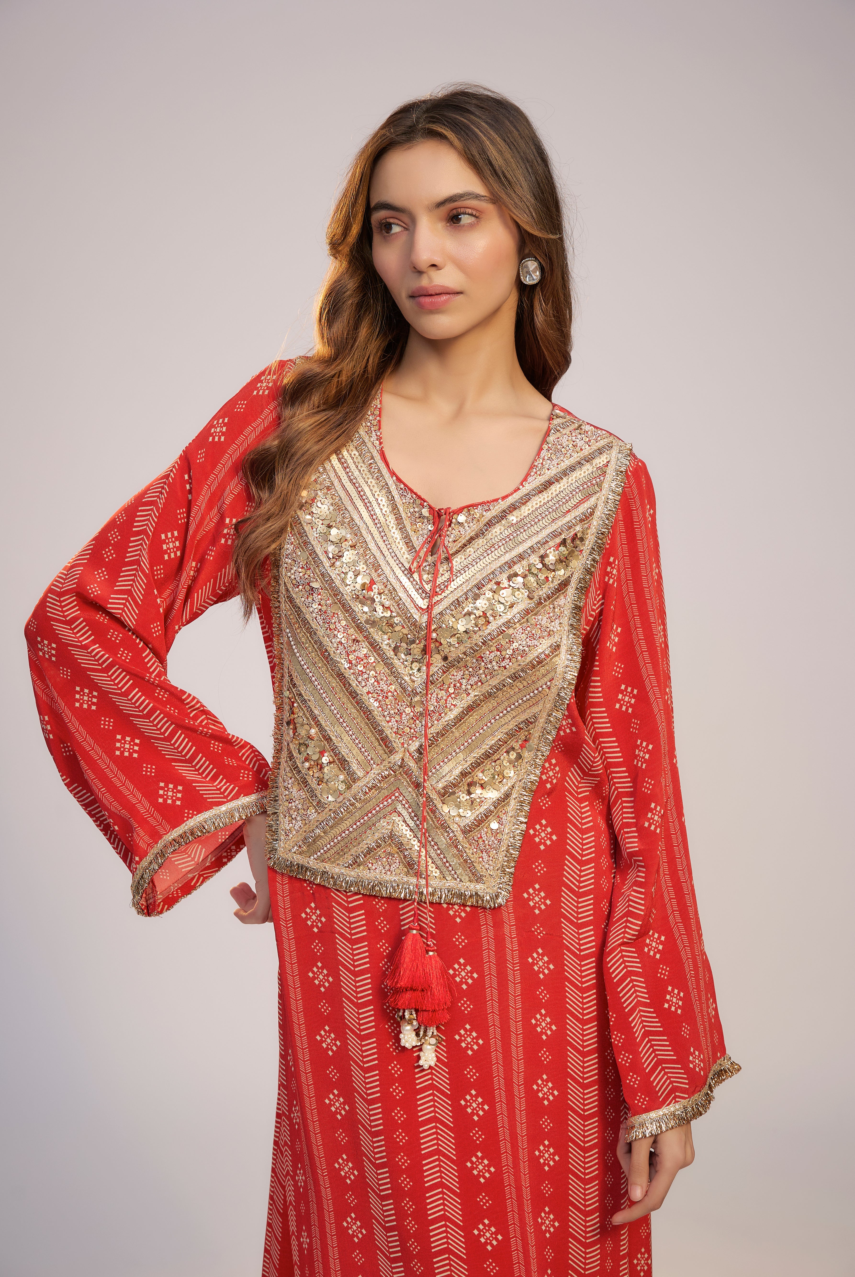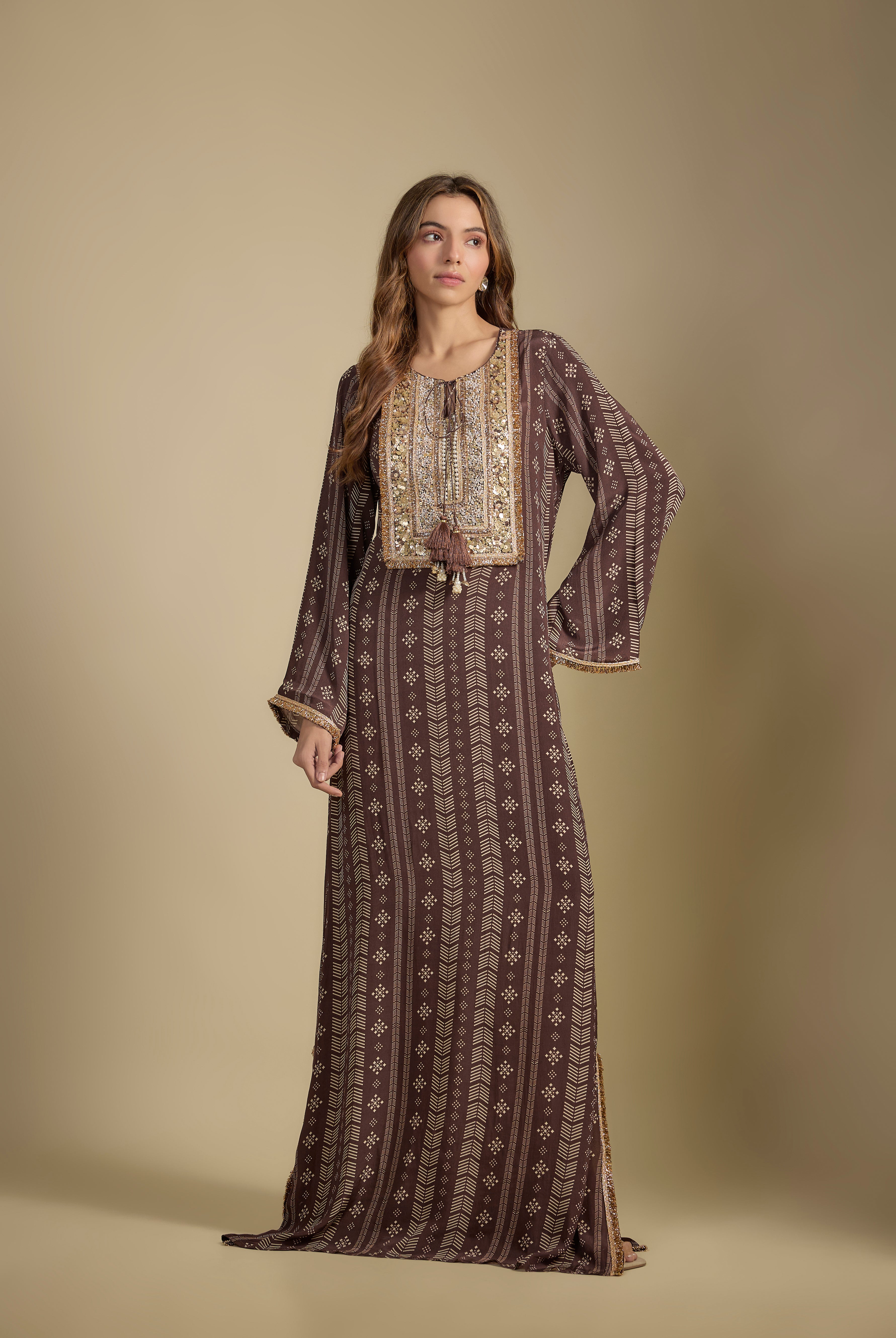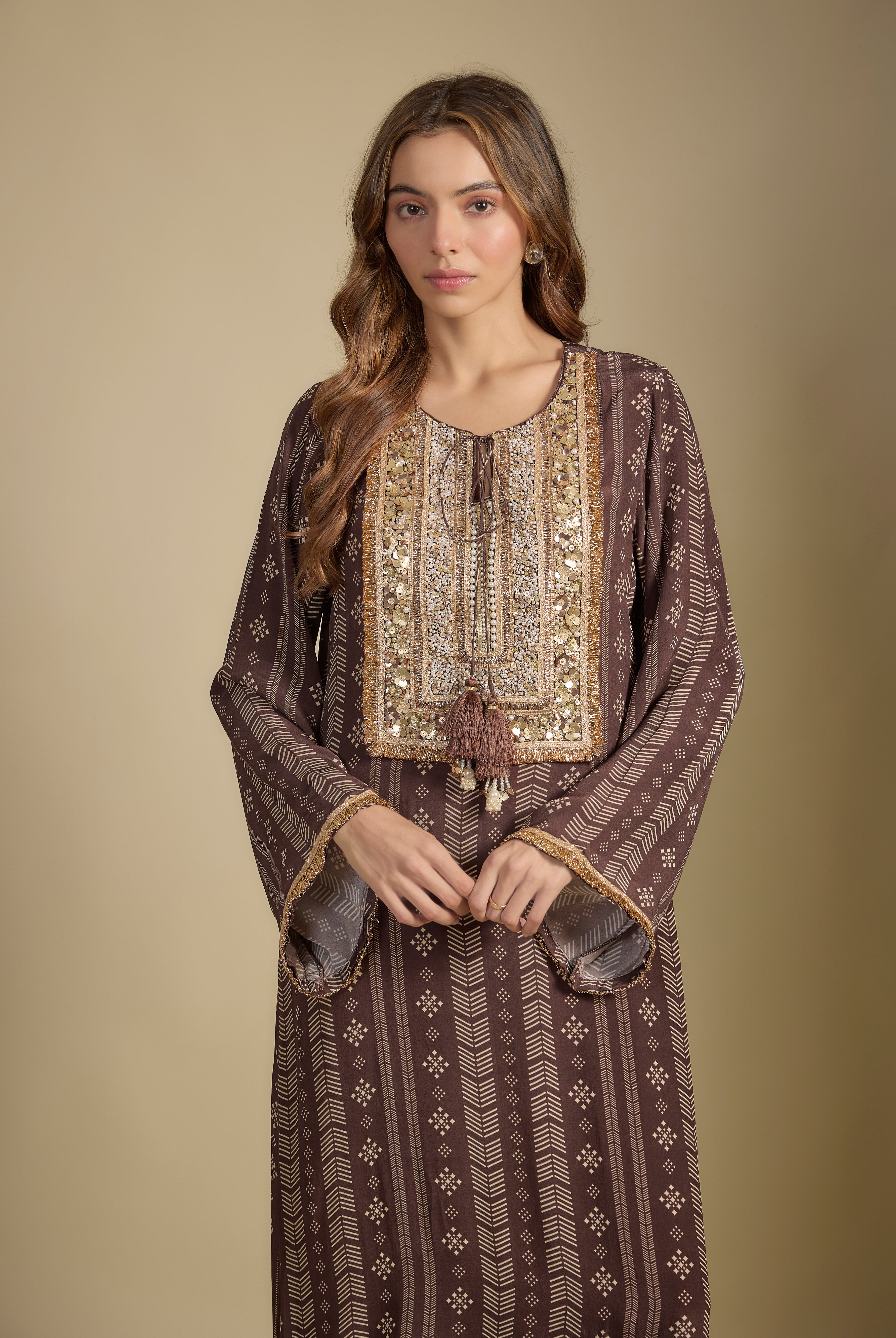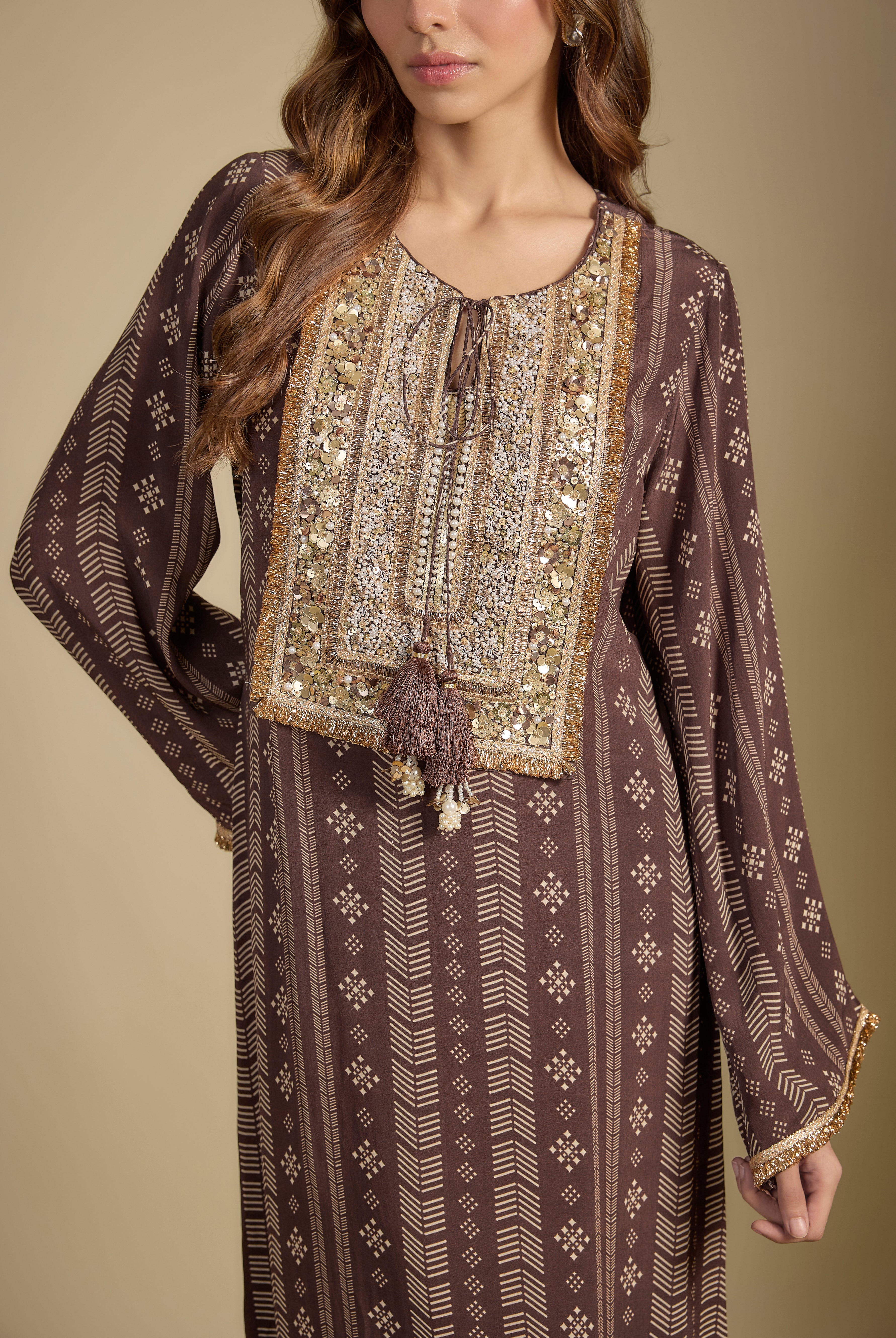Inspired the eternal emblem of Ethnic Opulence - our beloved Paisley , this festive collection celebrates its luminous exuberance at its Bohemian best. This immortal ornamental motif travelled from persia to Kashmir and became an inseparable stamp of our Indian design vocabulary. From the intricately woven patterns of pashmina to dexterously carvings of Mughal architecture, paisley has mesmerized us with its swirly hypnosis.