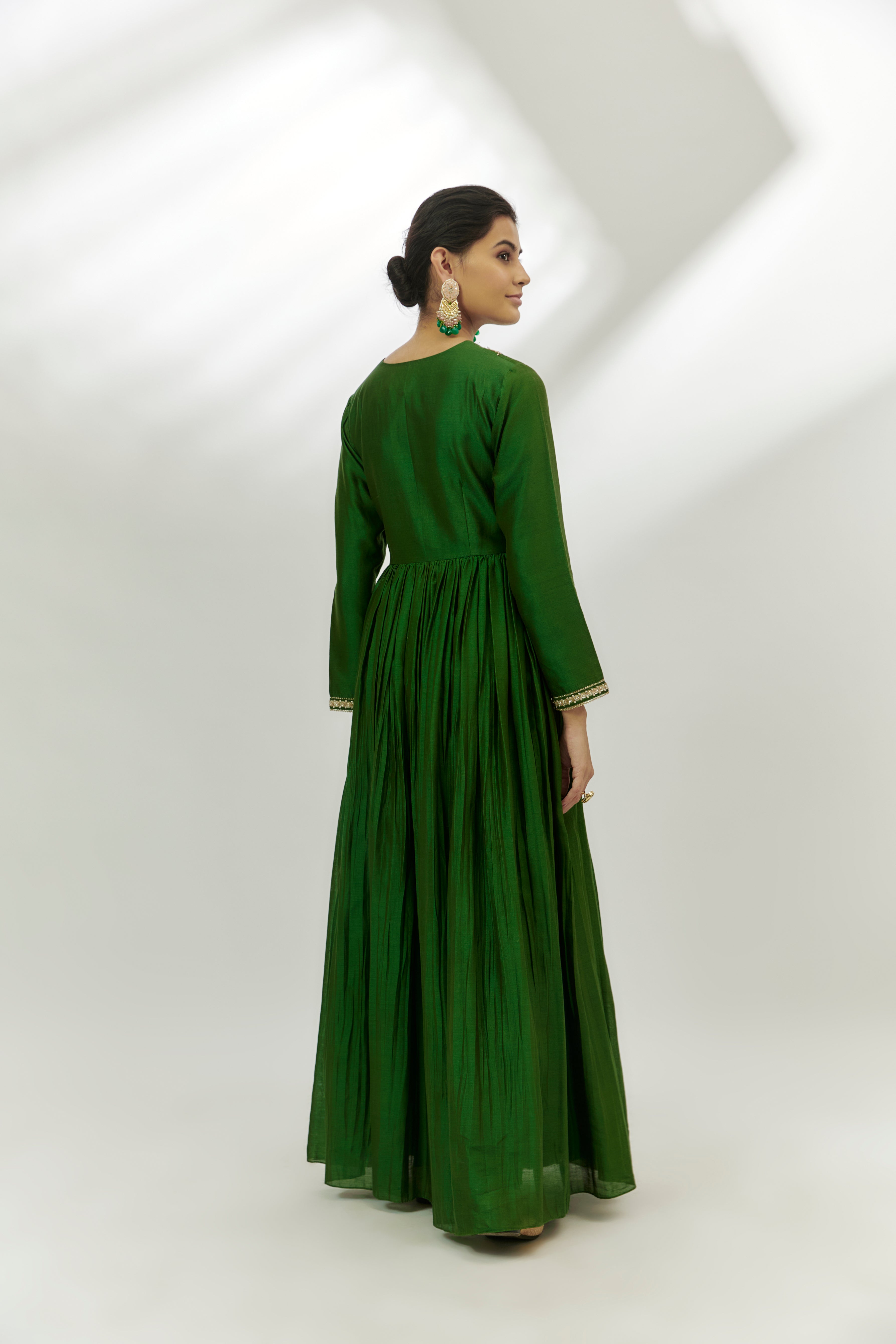 Dark Green Chanderi Zardosi Embroidered Anarkali Set