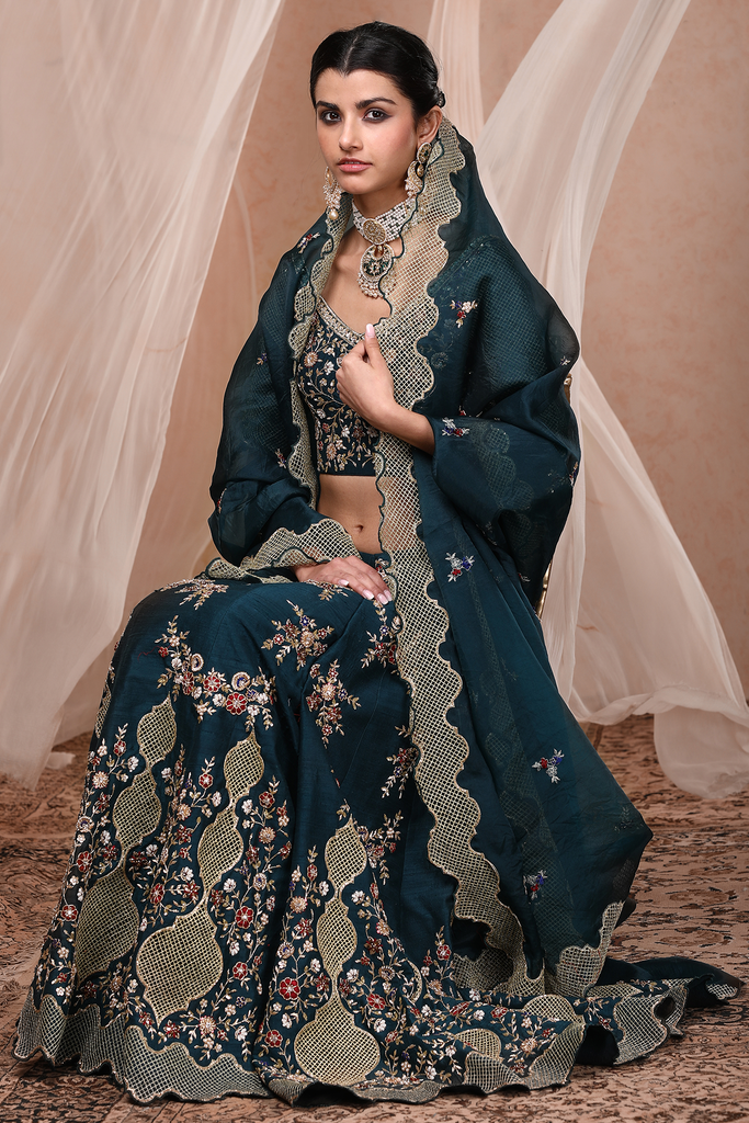 Contemporary Indian silhouettes are re-created to fit the requirements of modern brides. Easy separates with quintessential vintage undertone makes each look unique in itself. Heirloom Silhouettes are revisited along with Traditional handwork techniques.