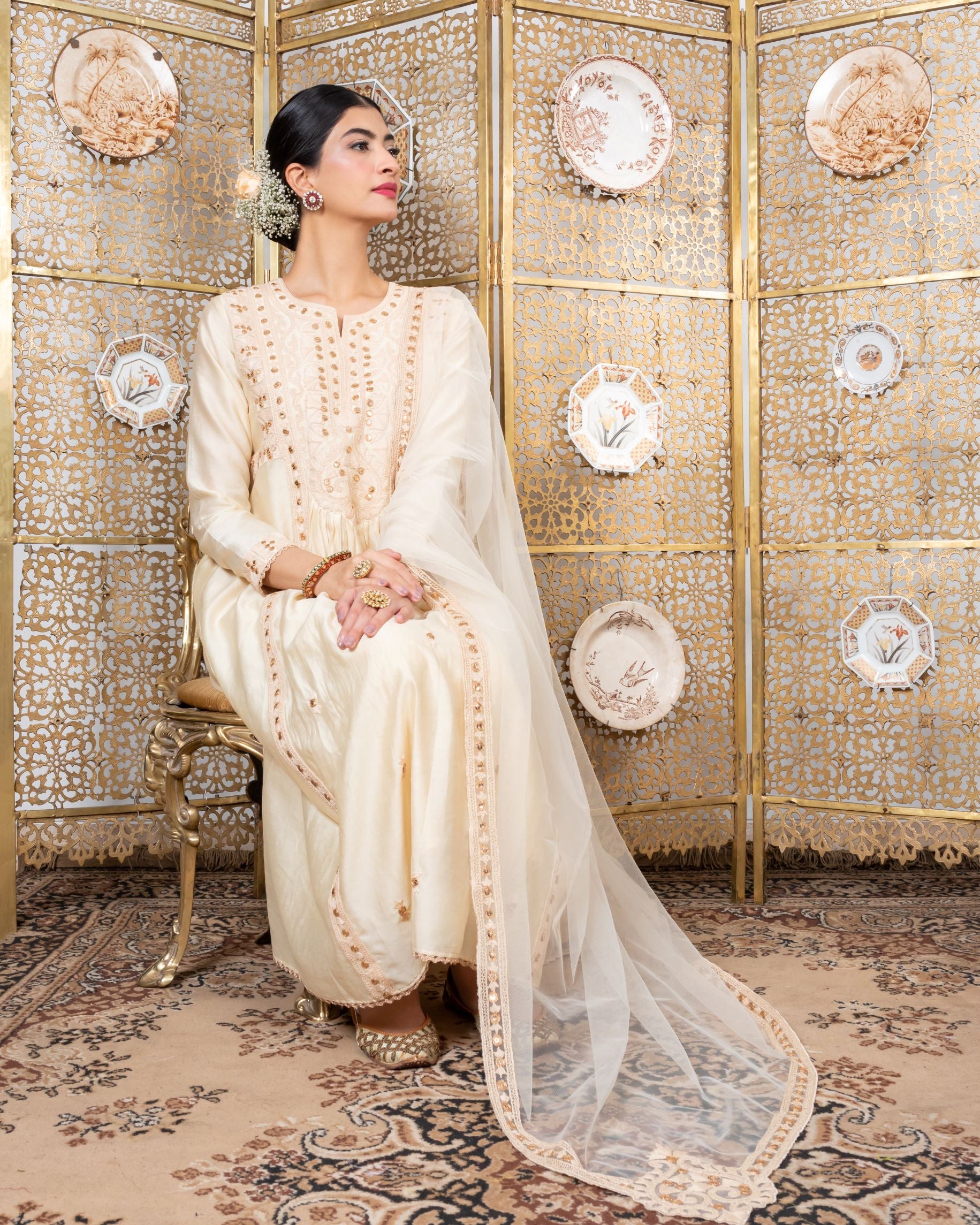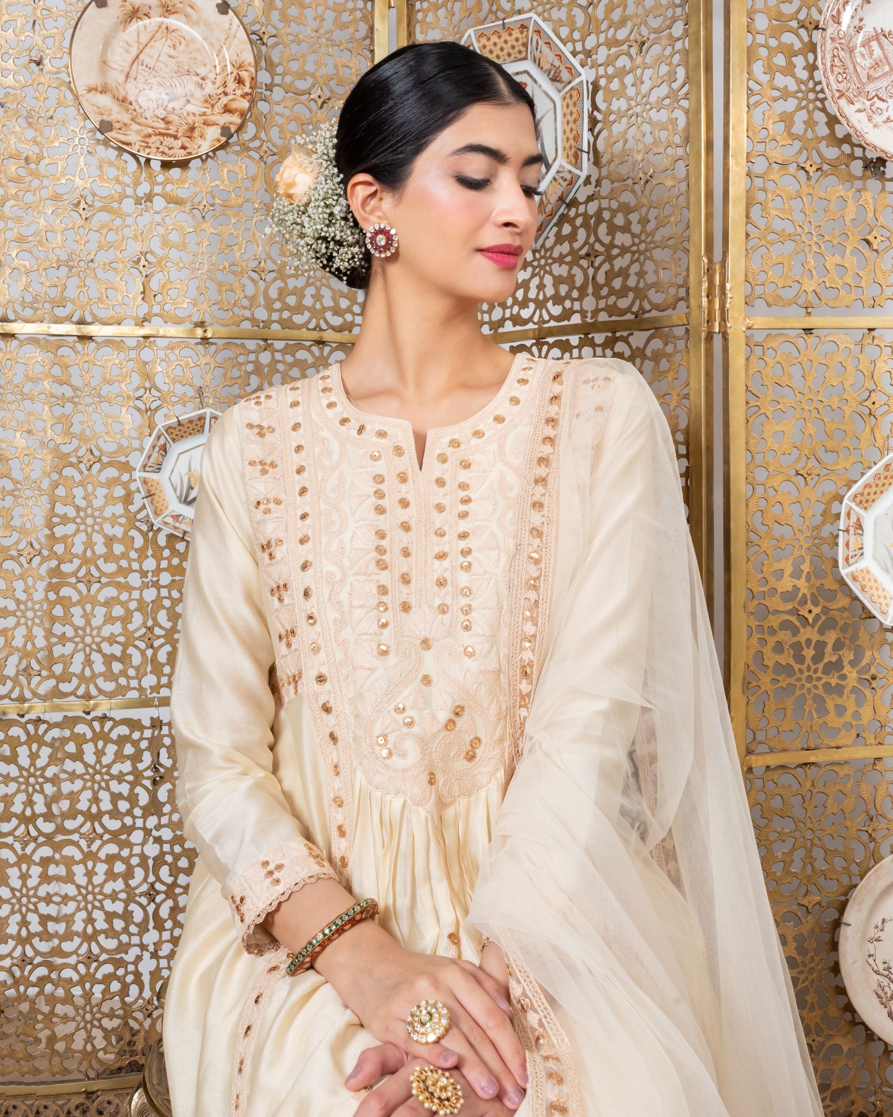 هانا خان في مجموعة كورتا مطرزة بالبيج
