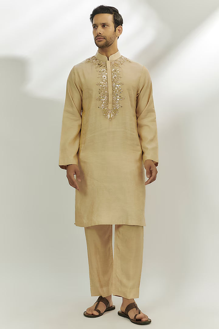 مجموعة كورتا مزينة بخيوط وزرودسي من قماش تشاندي بيج عثمان