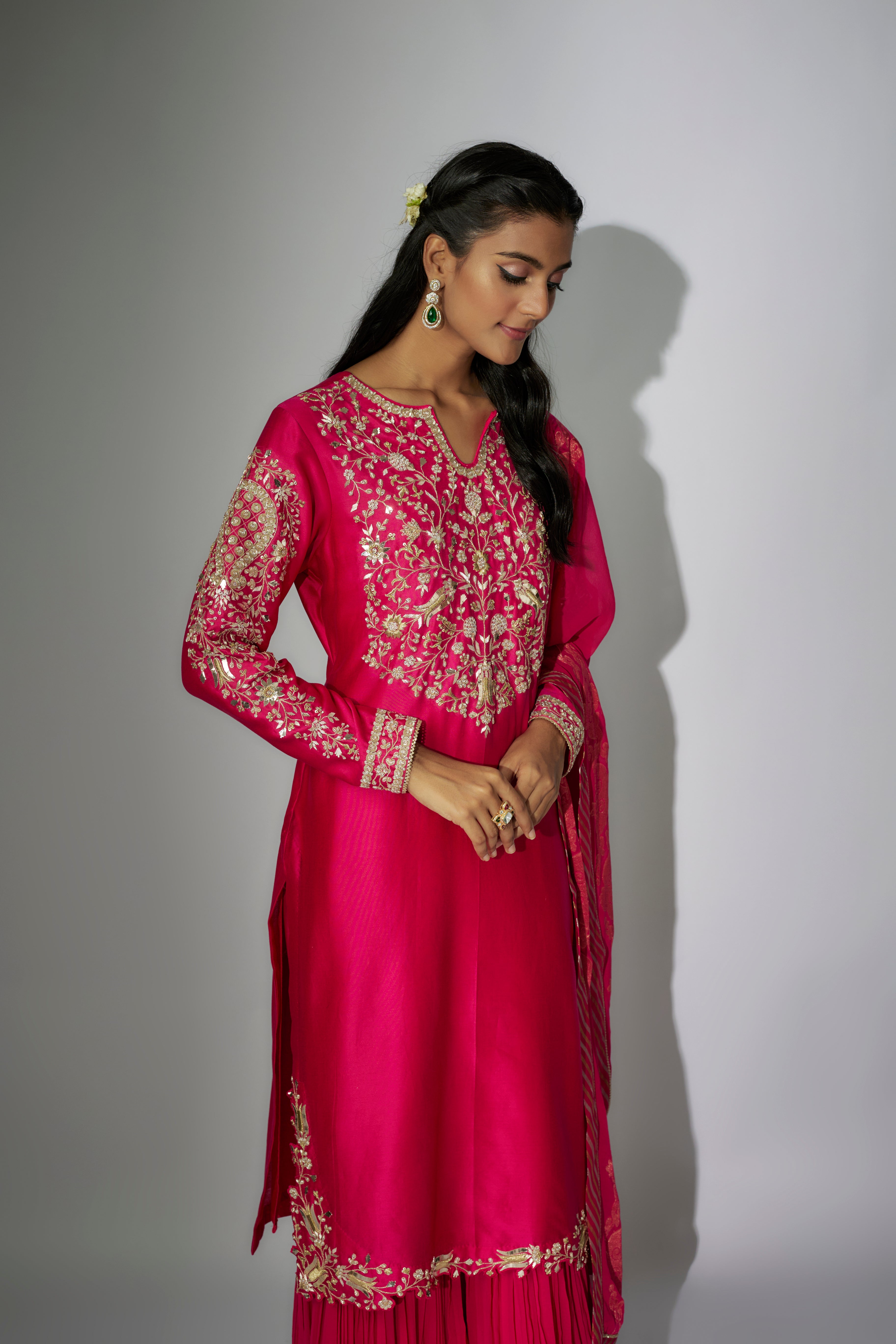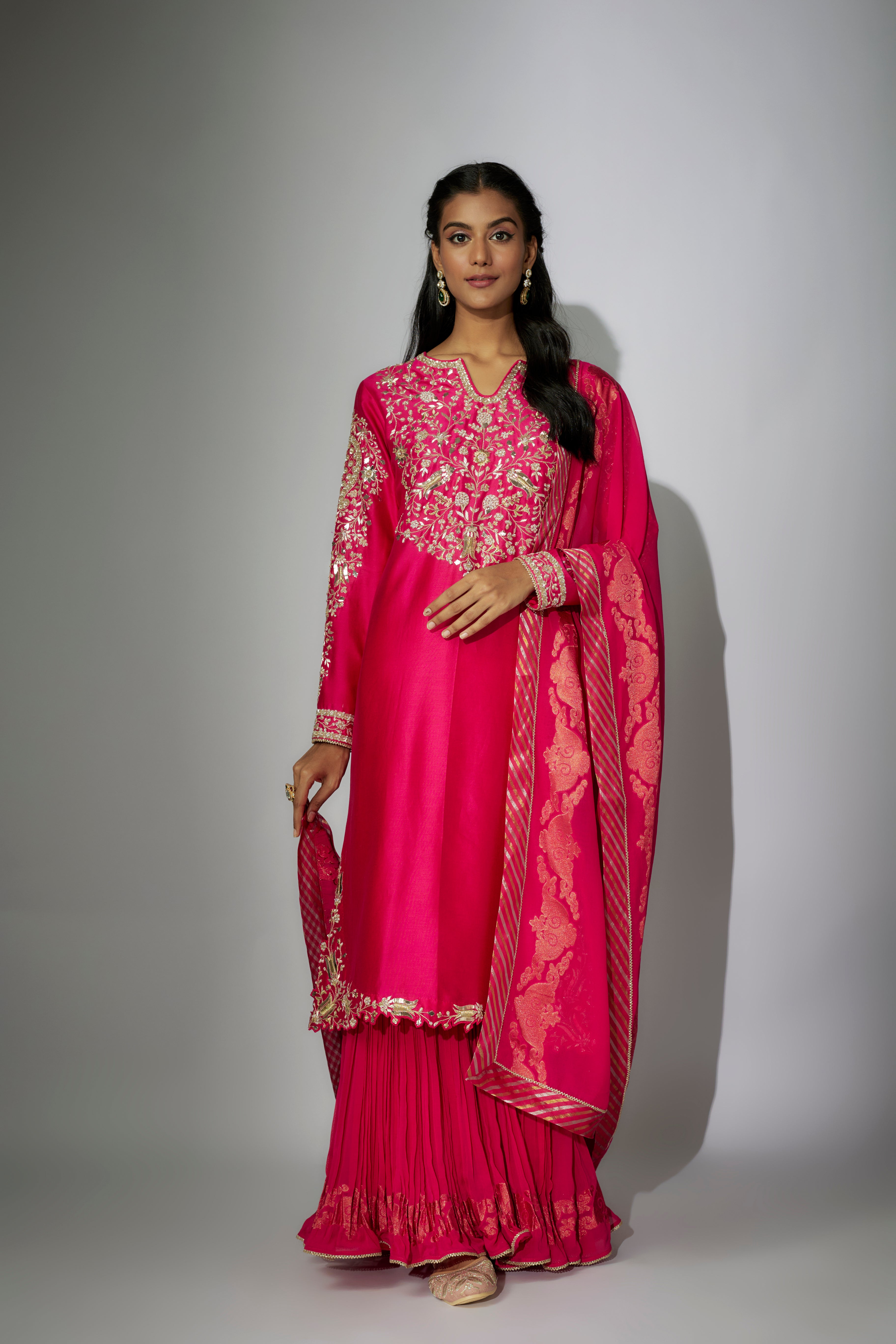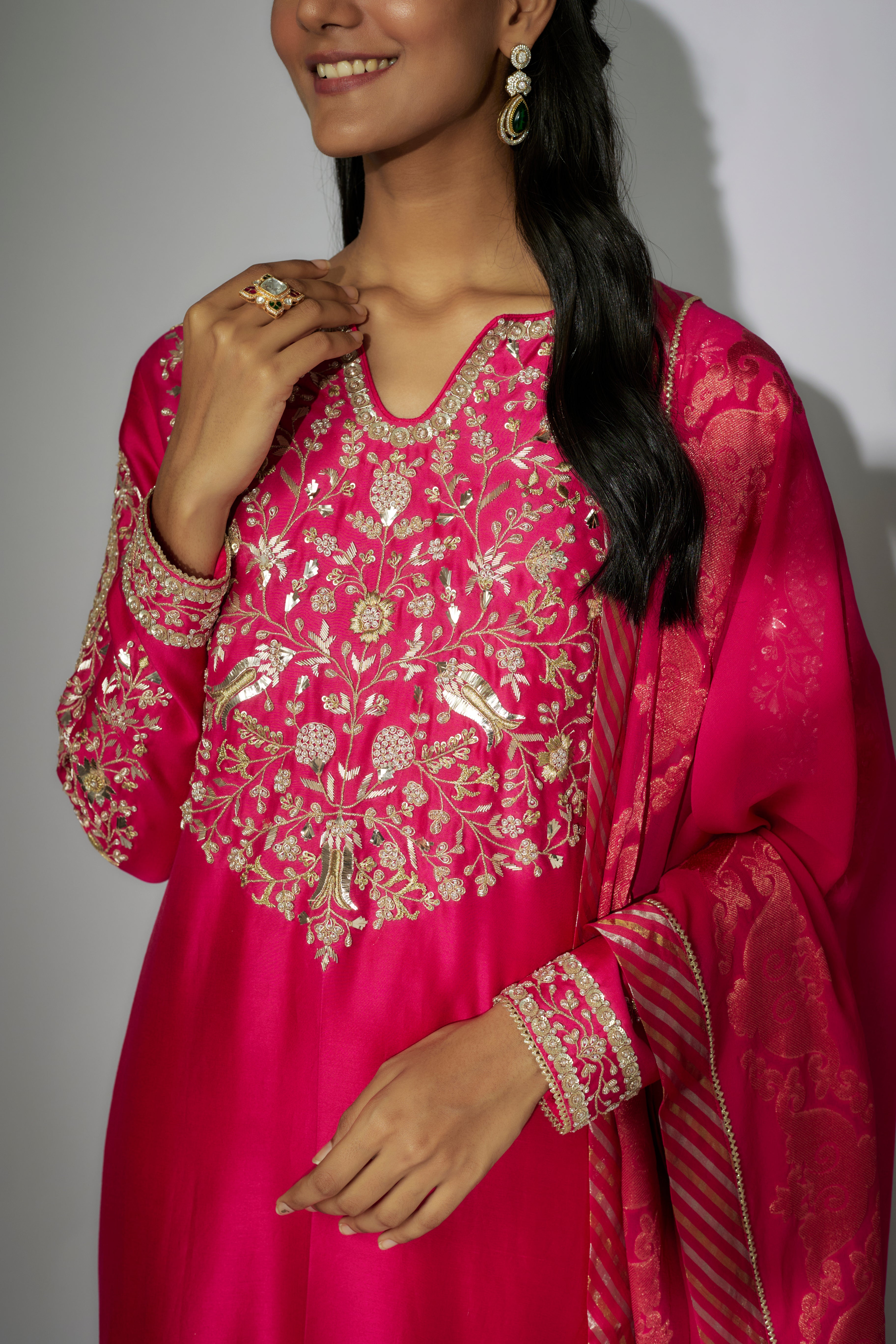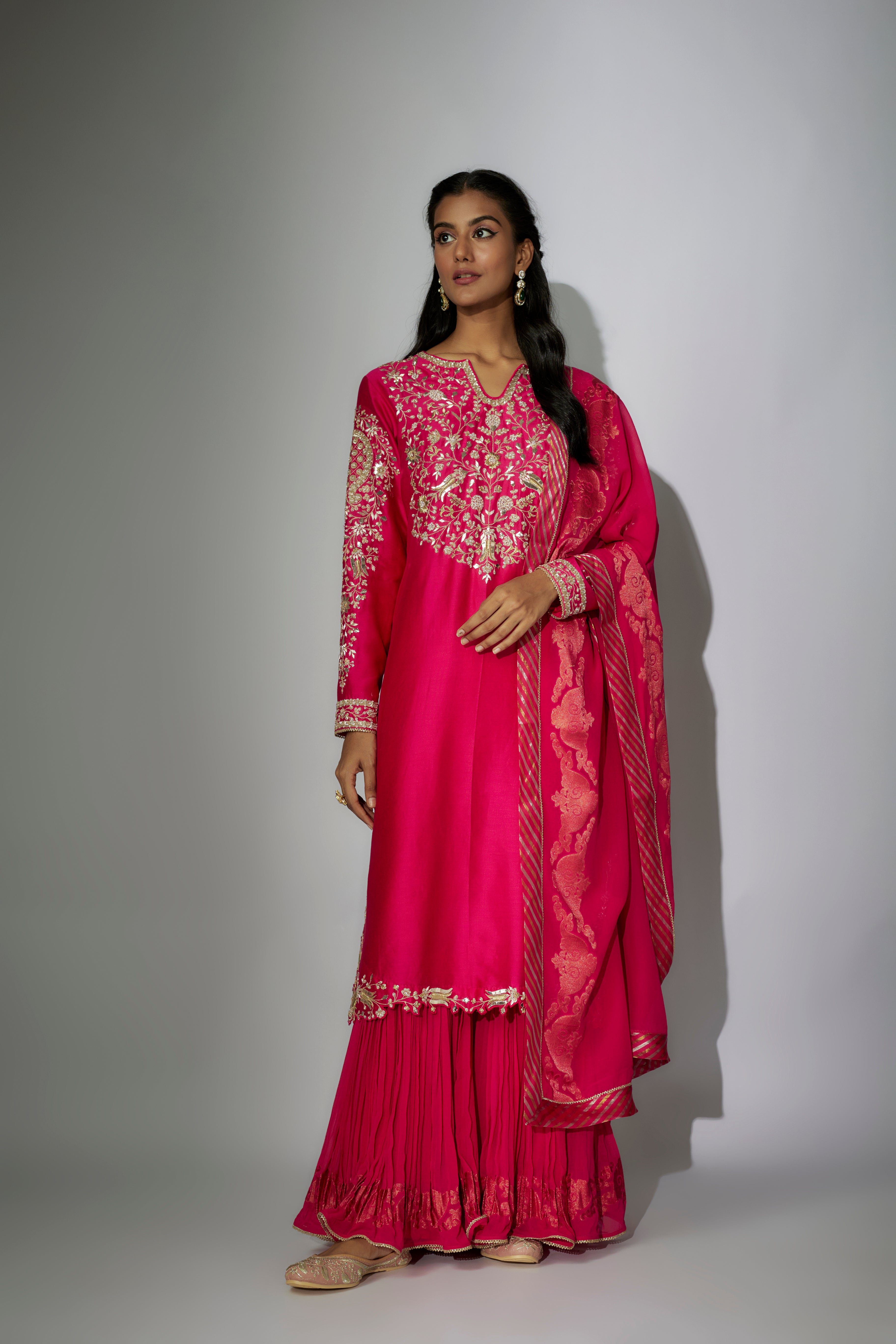 سارة مجموعة غارارا مطرزة باللون الوردي الساخن