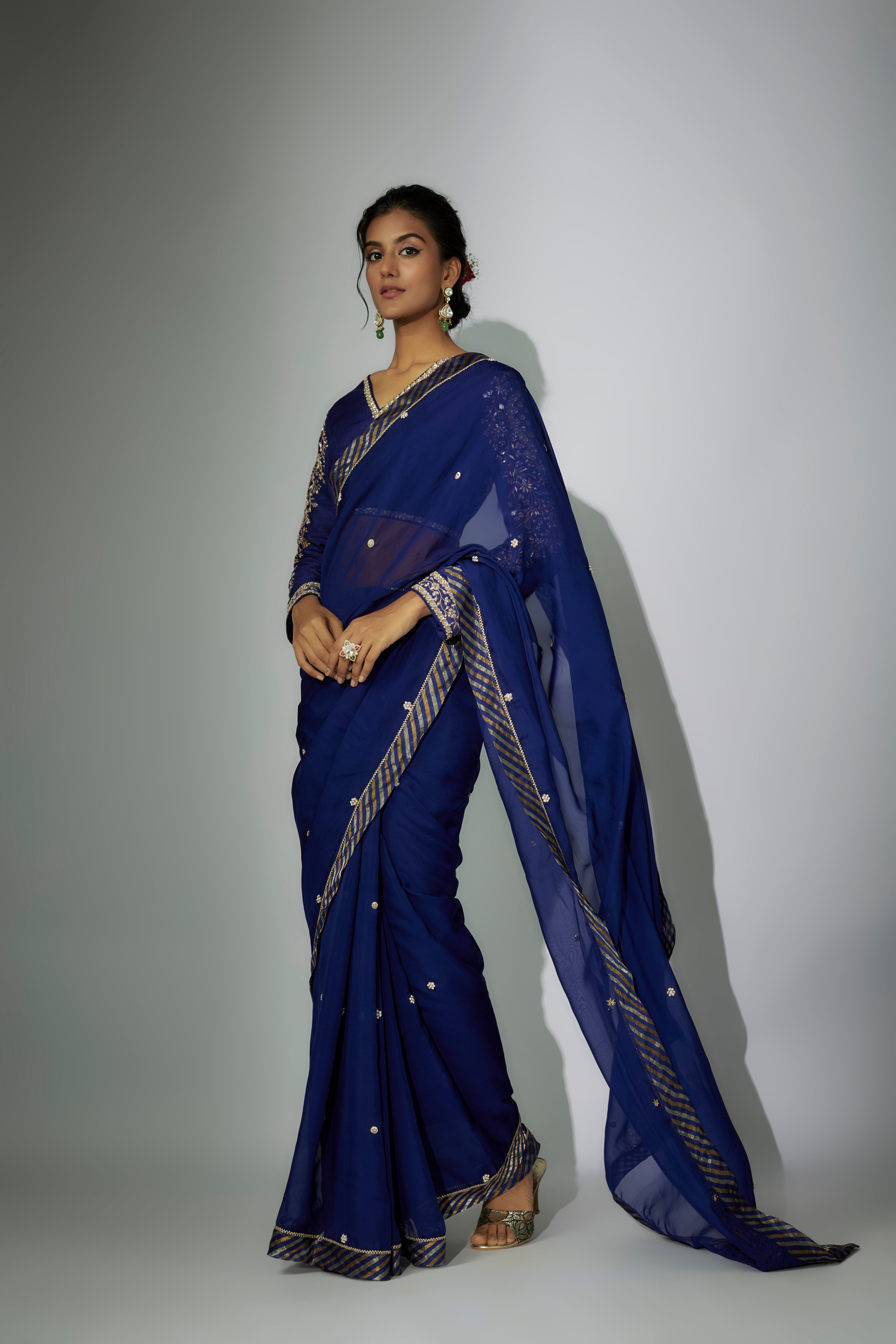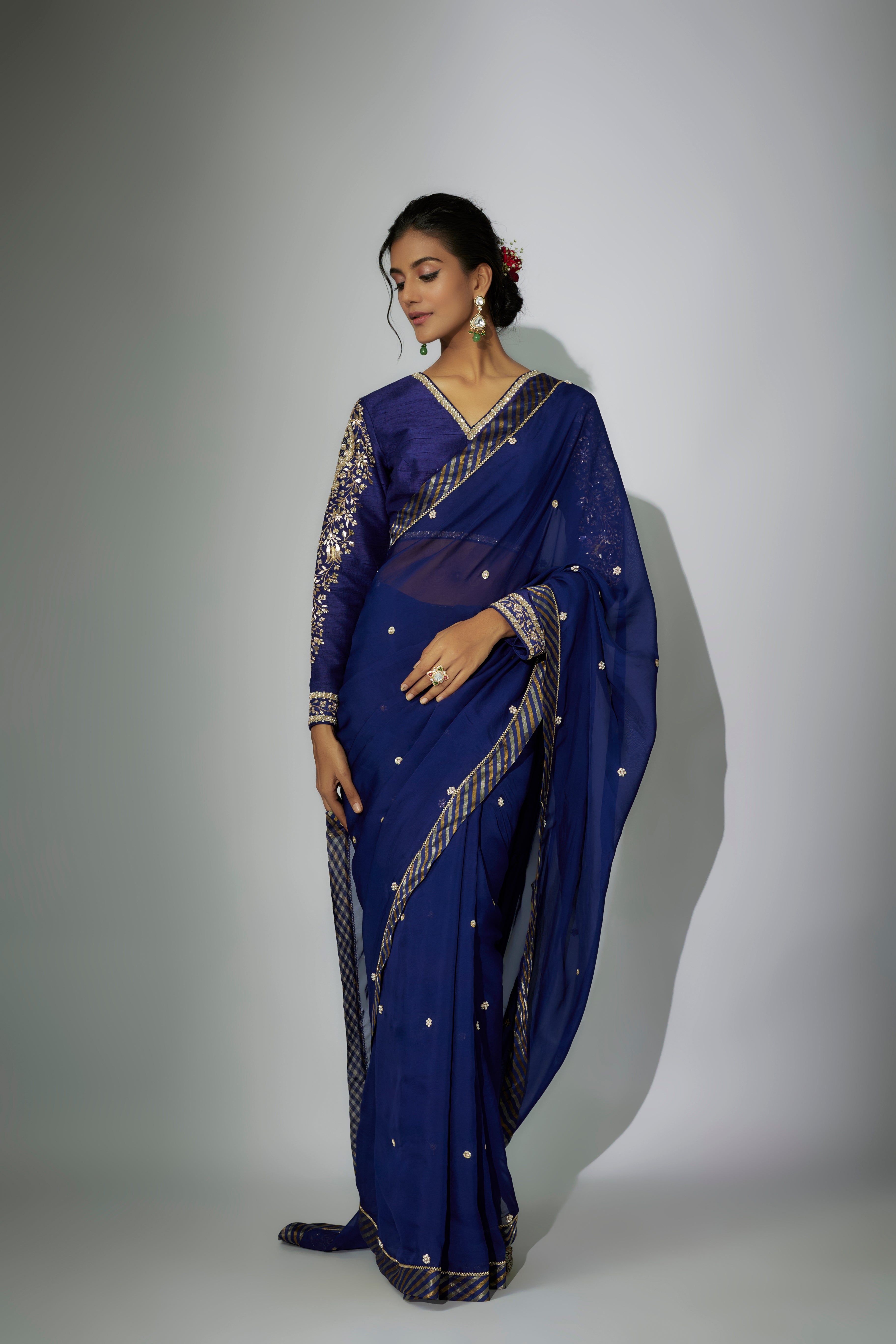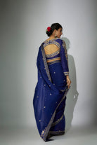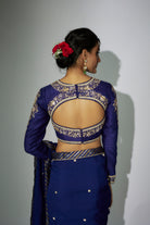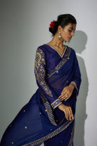 ساري مجموعة مطرزة باللون الأزرق الملكي سلطانة