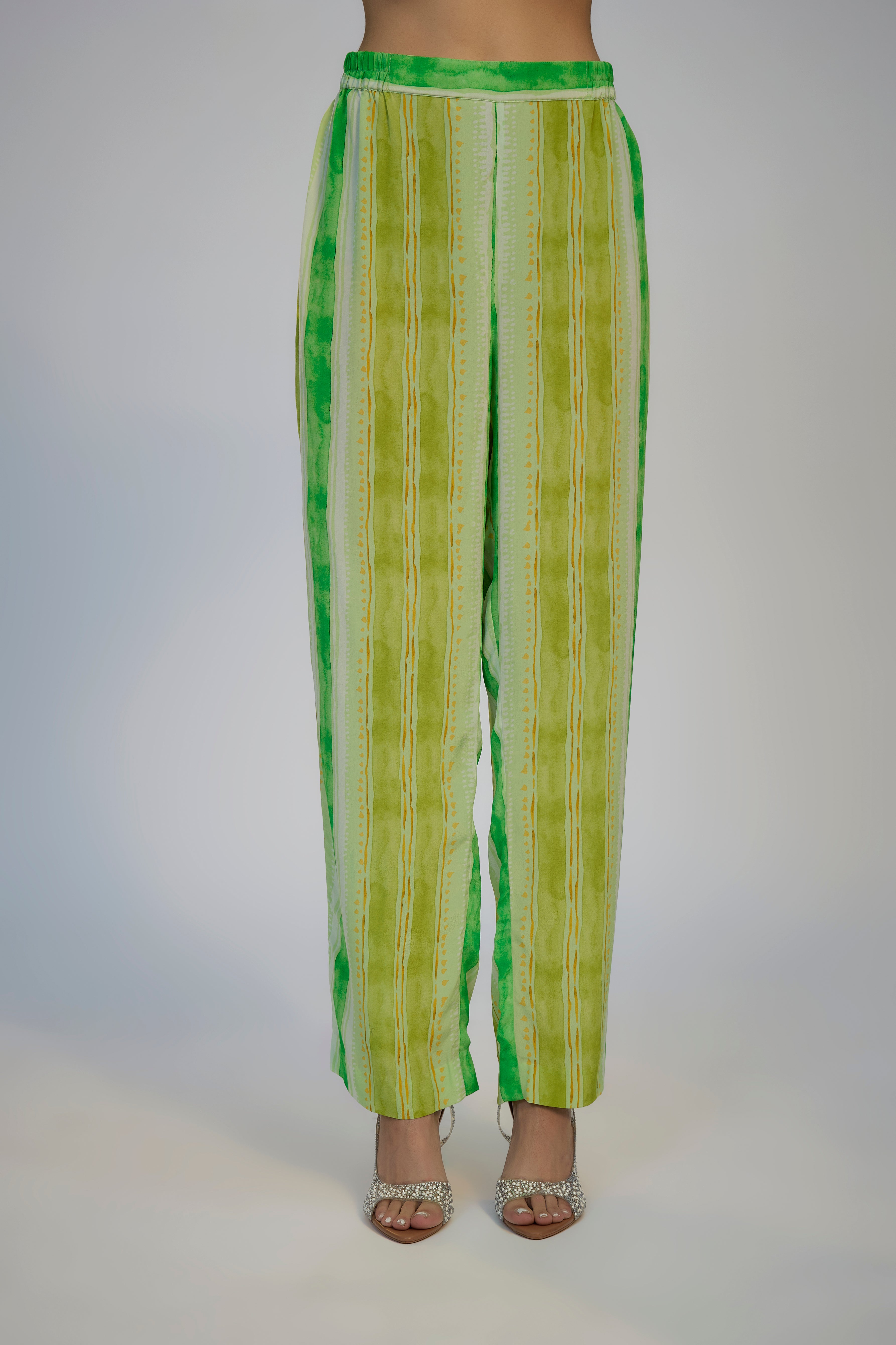 طقم قفطان وبنطلون مطبوع بخطوط خضراء ليمونية