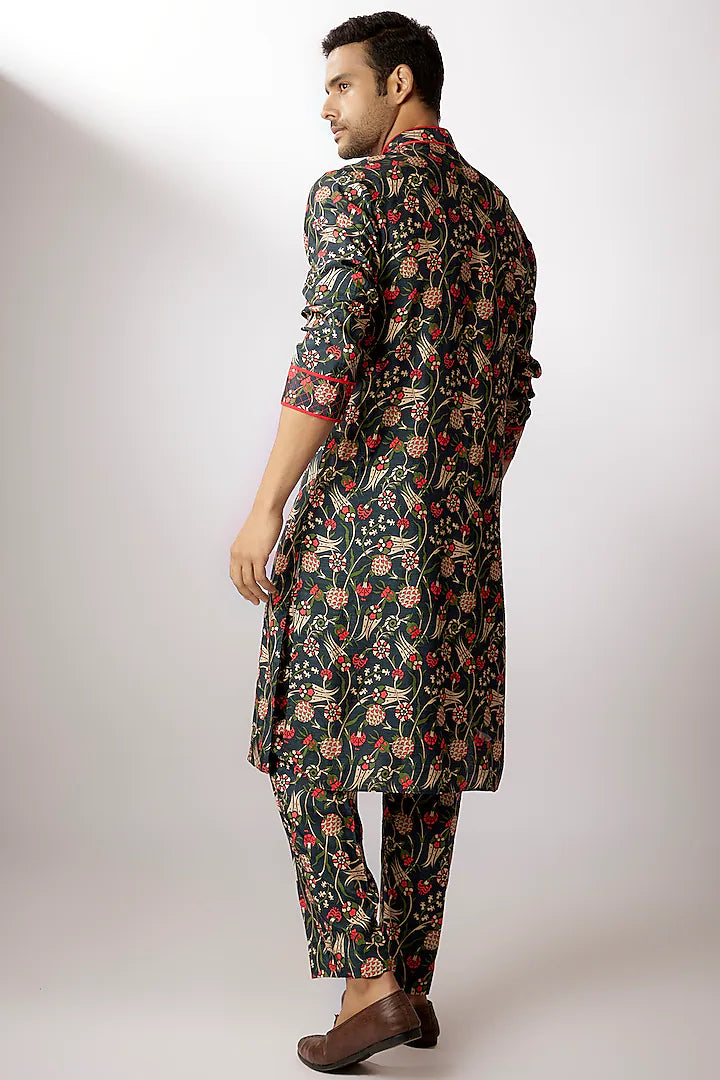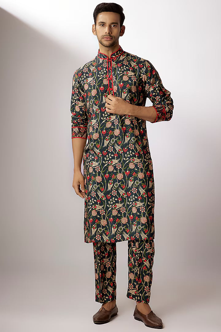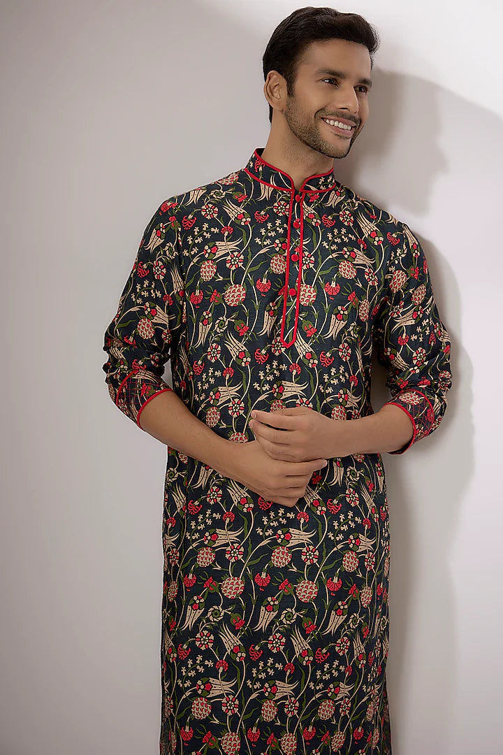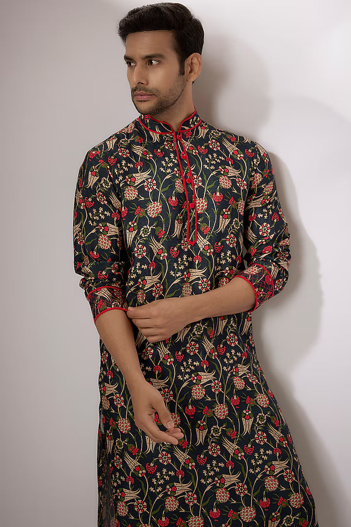 مجموعة قميص كورتا مطبوعة رقمياً من حرير دوبون الداكن الأزرق آيان