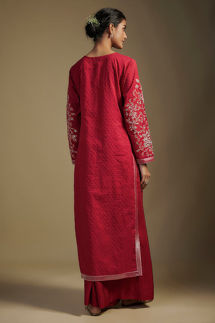 مجموعة كورتا من الشانيري الأحمر والأورجانزا مع عمل التطريز