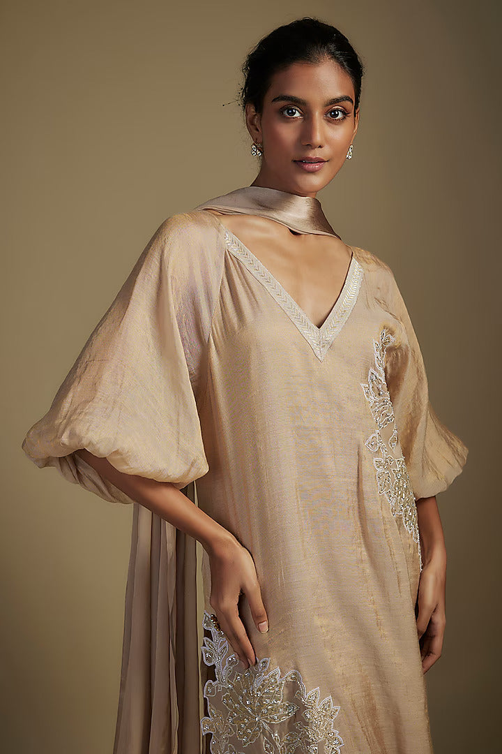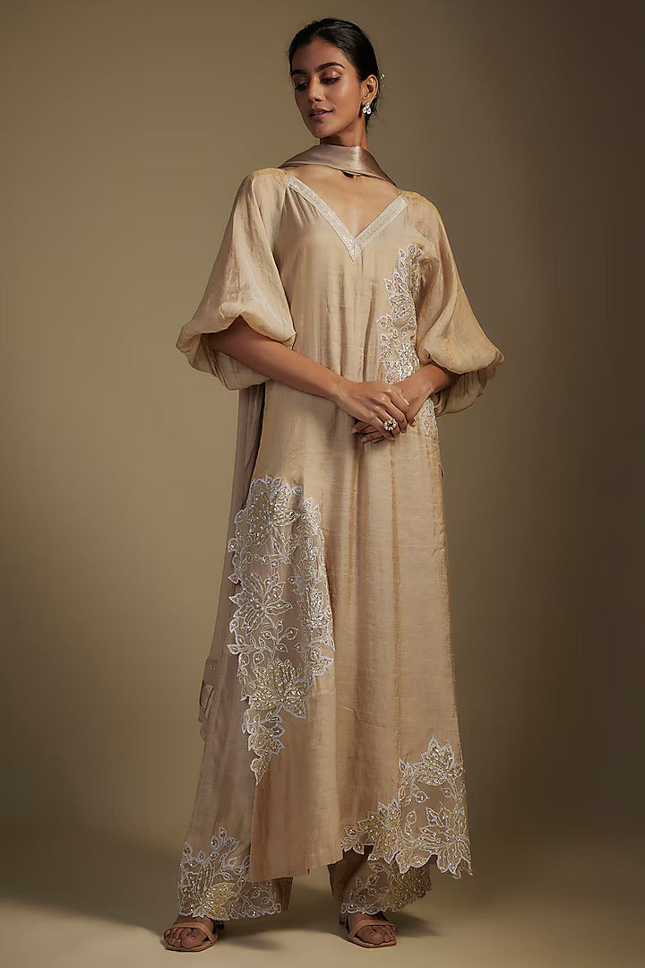 طقم كورتا مزين بخيوط وخرز من قماش التفتا وال organza من Aaliyah Brown