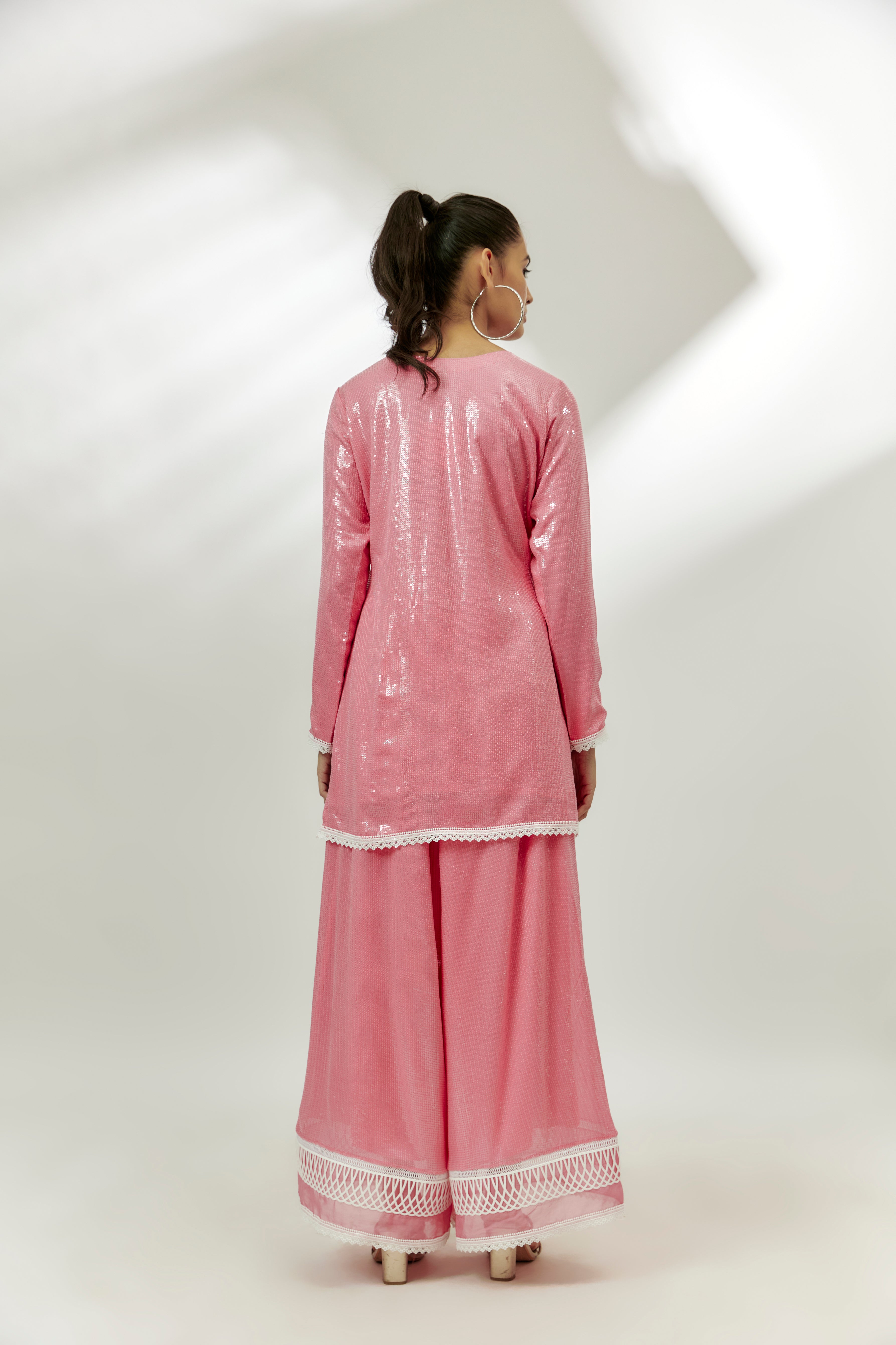 طقم كورتا قصير من جورجيت باللون الوردي الباستيل عاليا