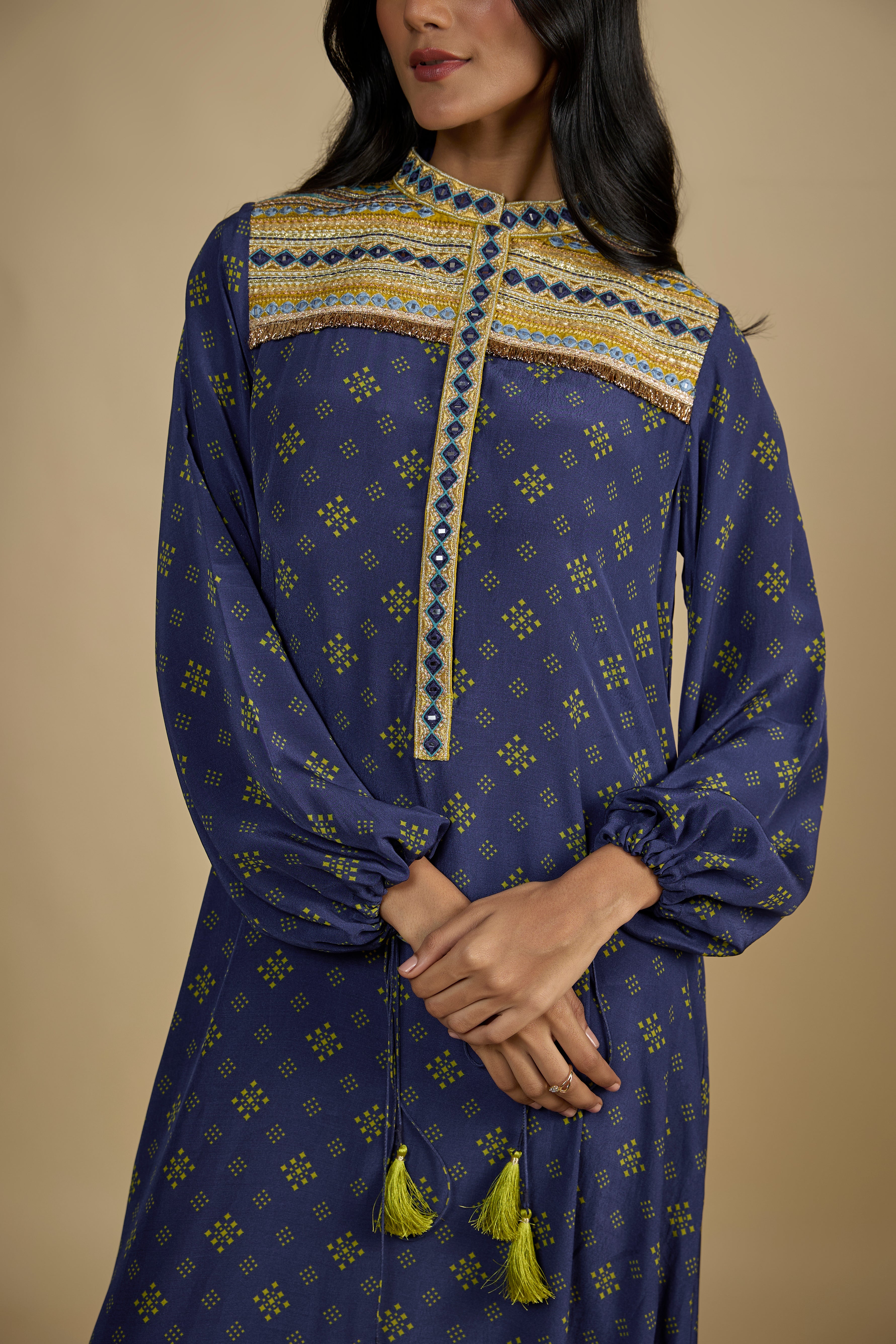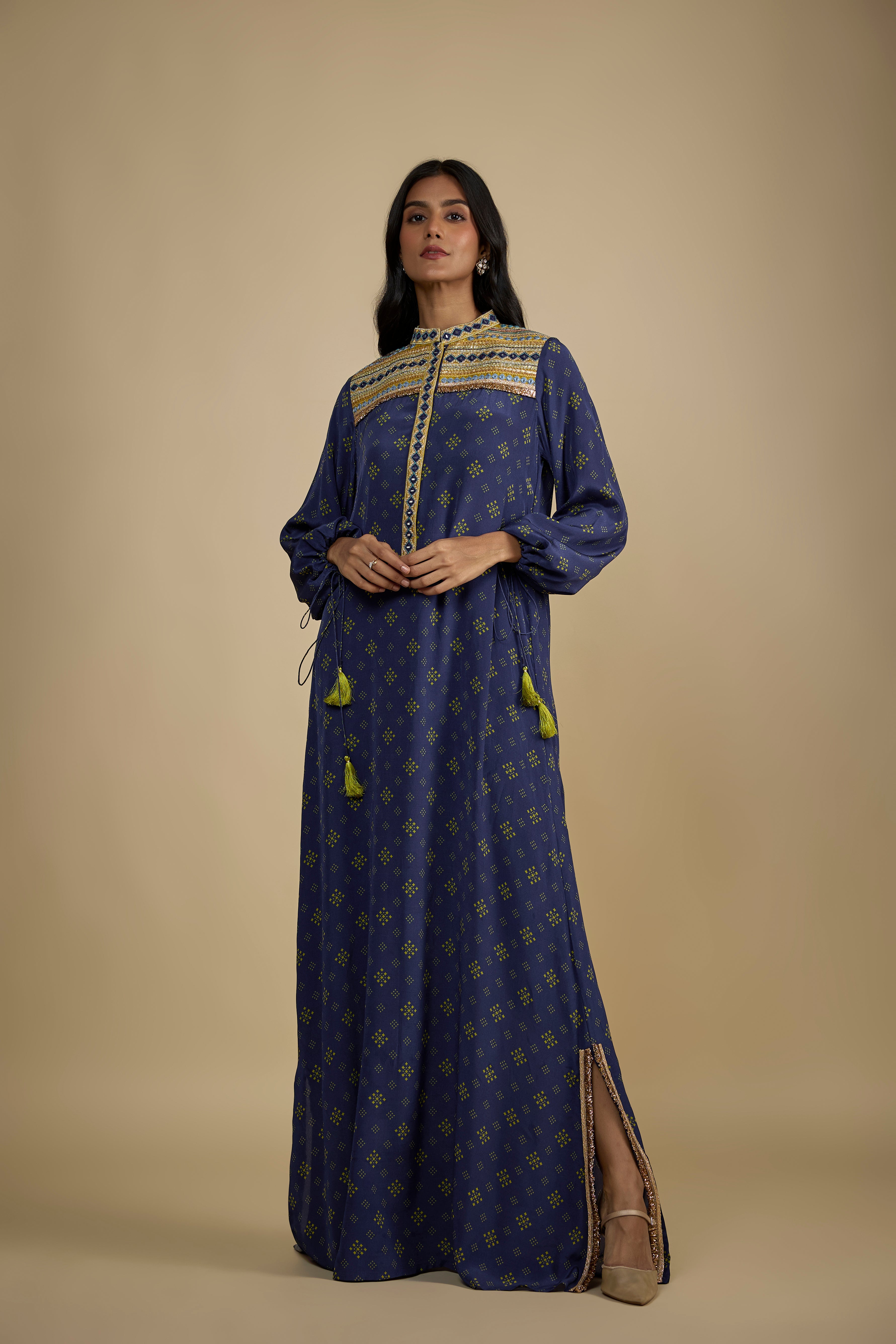 "يمكن صنع هذا المنتج بلون آخر ووفقًا لمقاساتك المخصصة أيضًا. راسلنا على واتساب على +91 9833533149 وسيكون مصممنا الشخصي هناك لمساعدتك."