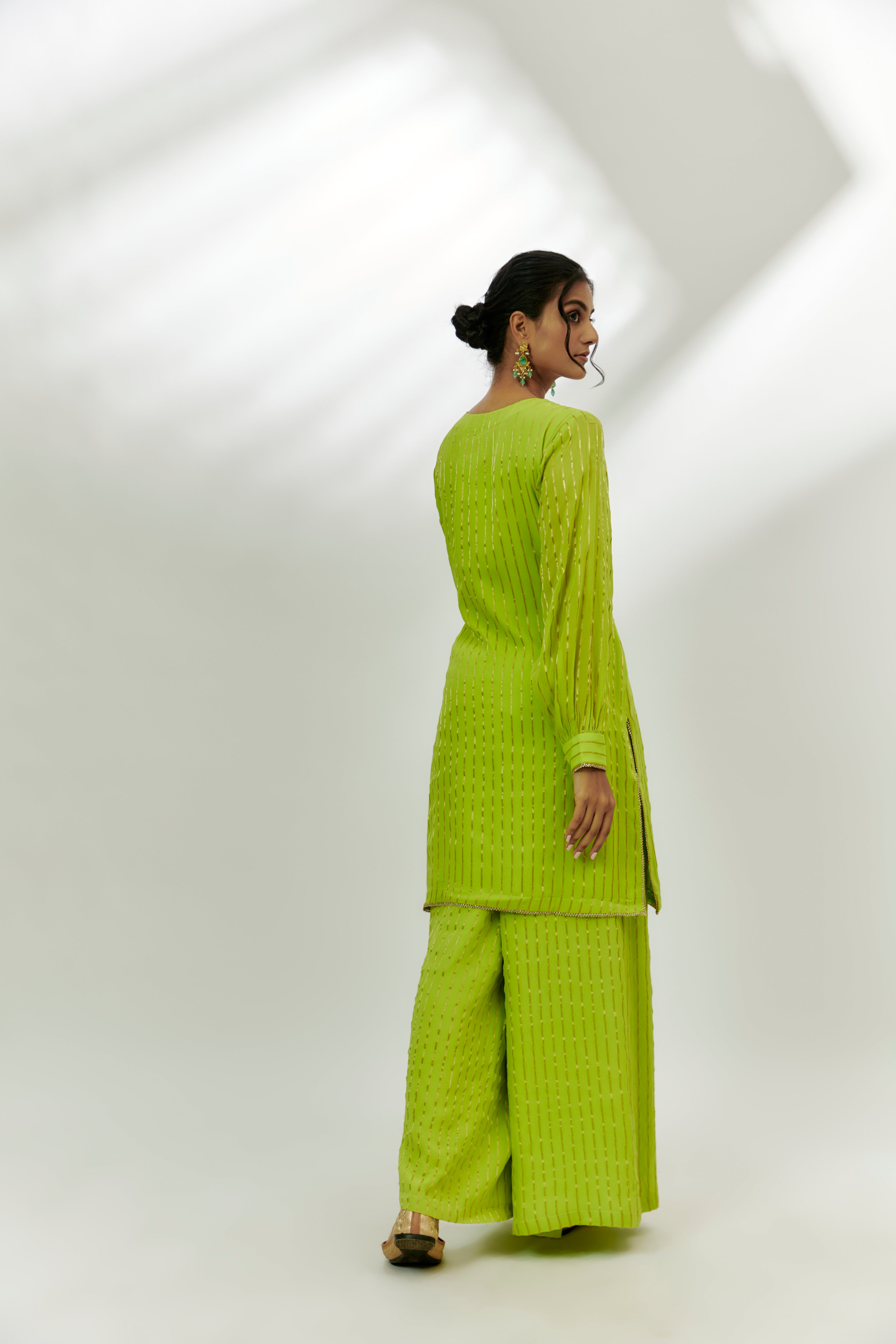 طقم كورتا بعمل مروضي من جورجيت باللون الأخضر الليموني من آيات