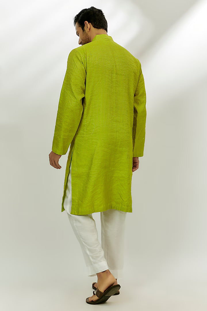 أيوب كورتا من حرير تشندرِي بتطريز زاردوسي وخيوط باللون الأخضر الليموني