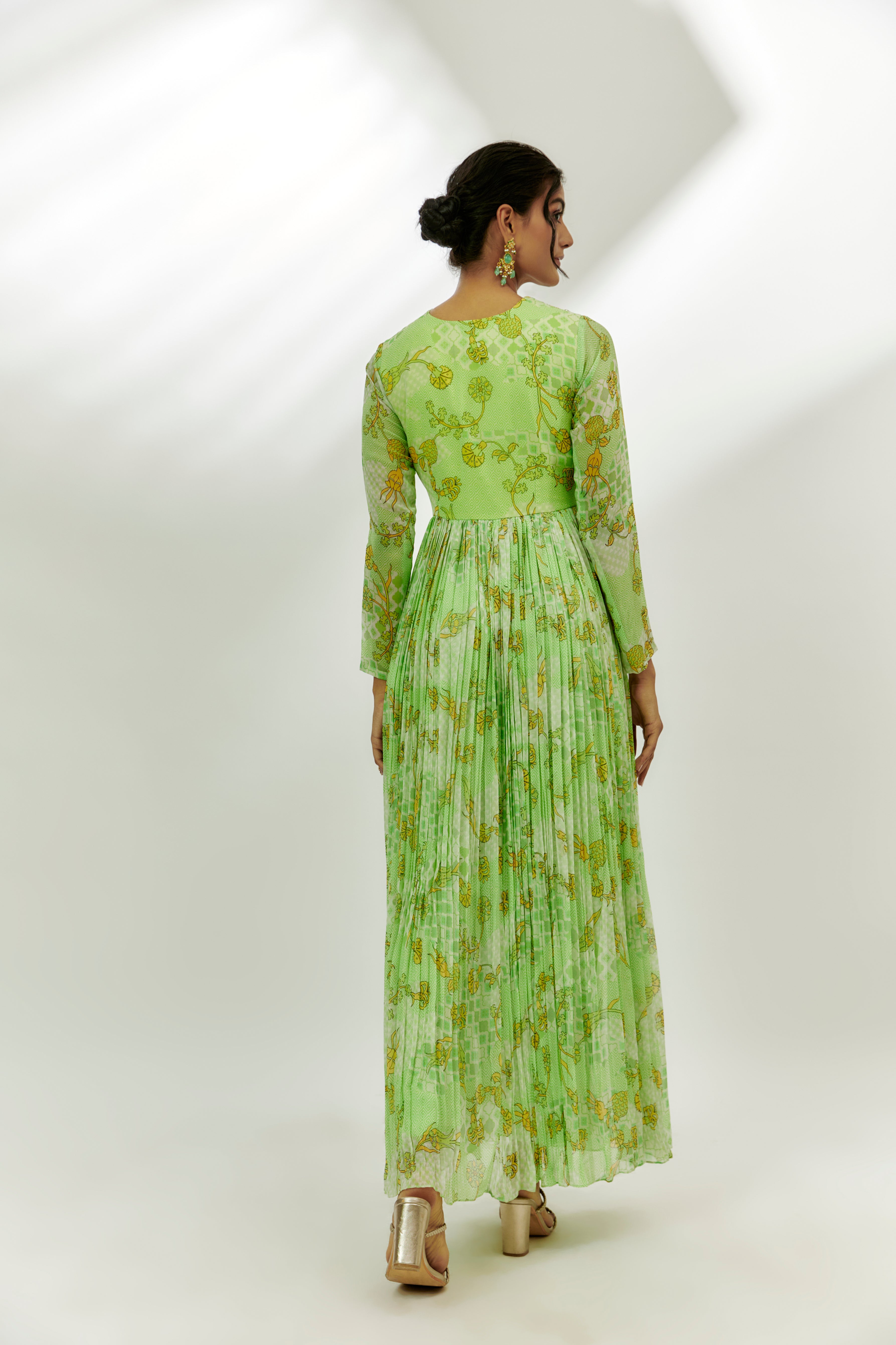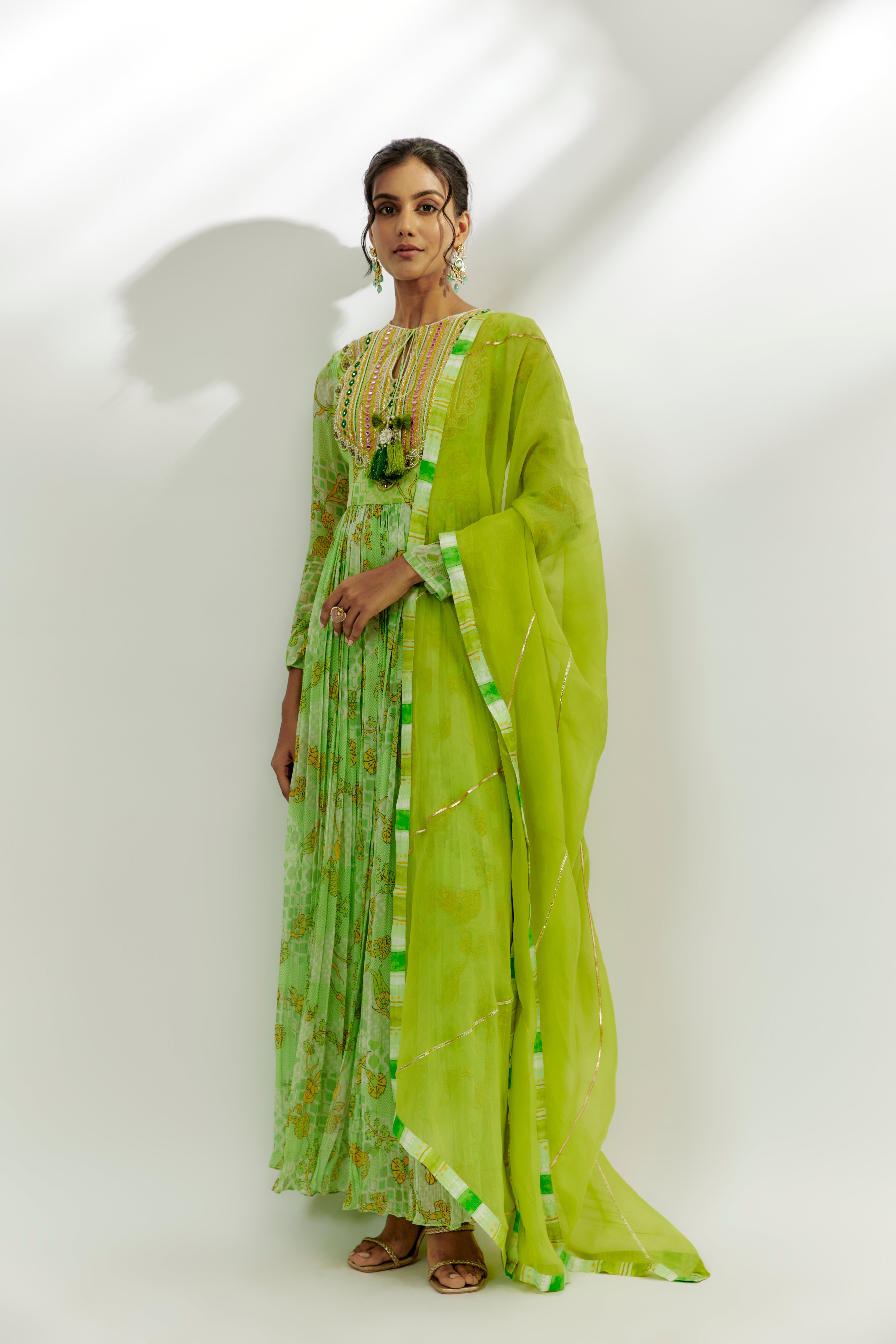 Asma Lime Green Georgette Printed & Gota Work Anarkali Set