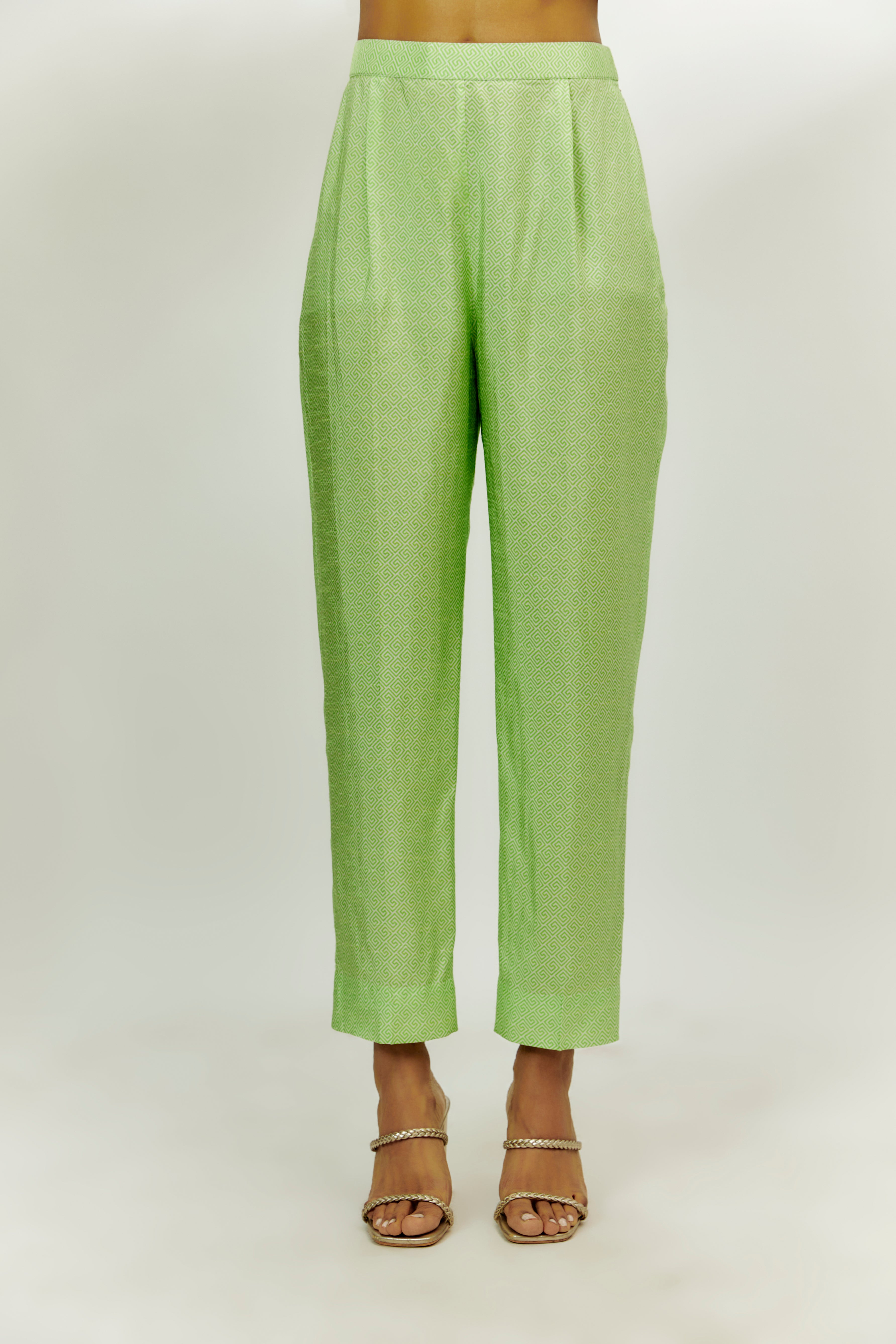 Featuring a lime green anarkali in georgette base with print, gota and mirror work. It is paired with dupion silk straight pants and an organza dupatta. Accentuate with statement jewellery and heels for a festive occasion.