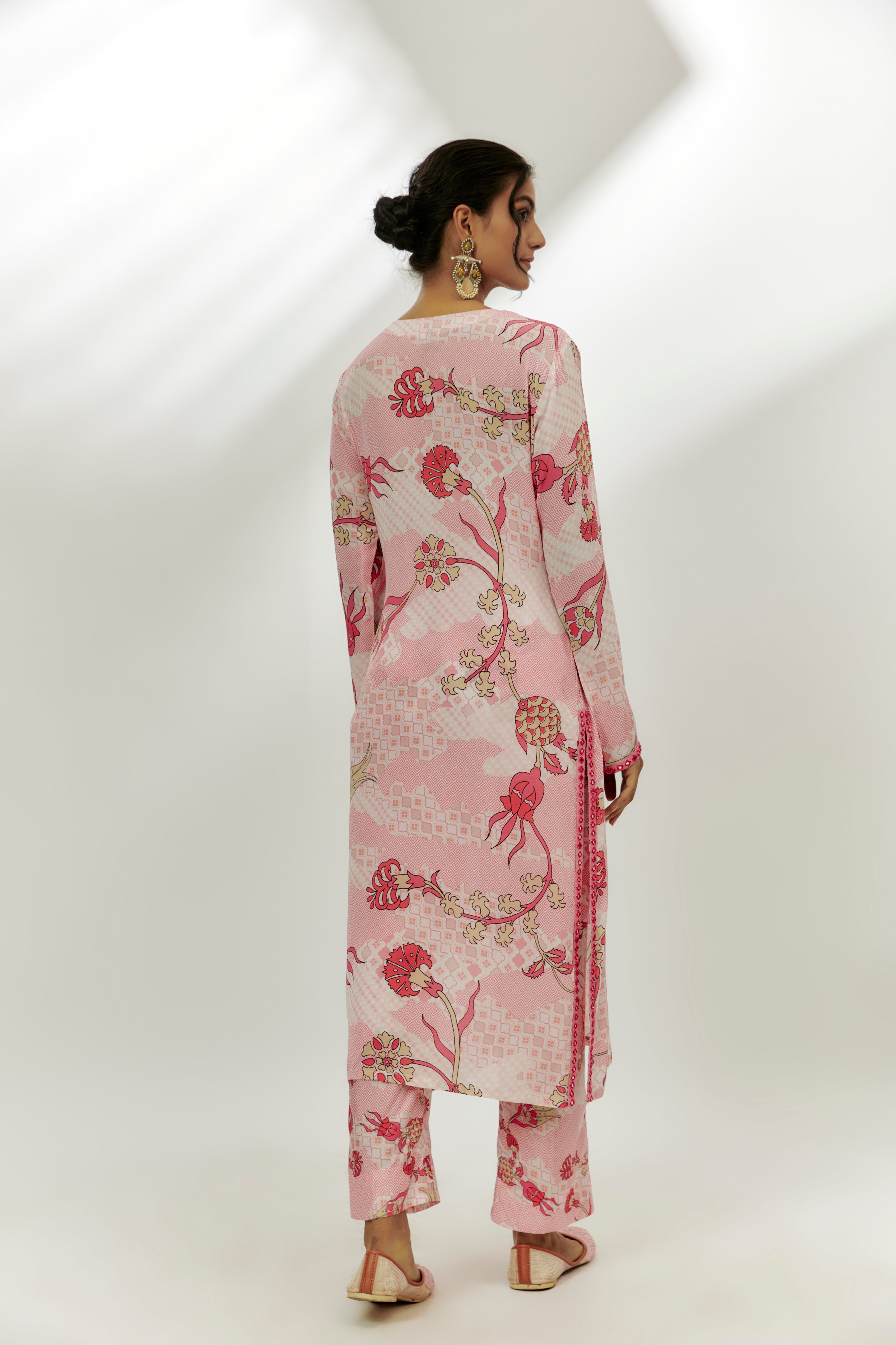 Kauser Pastel Pink Crepe Printed Kurta Set