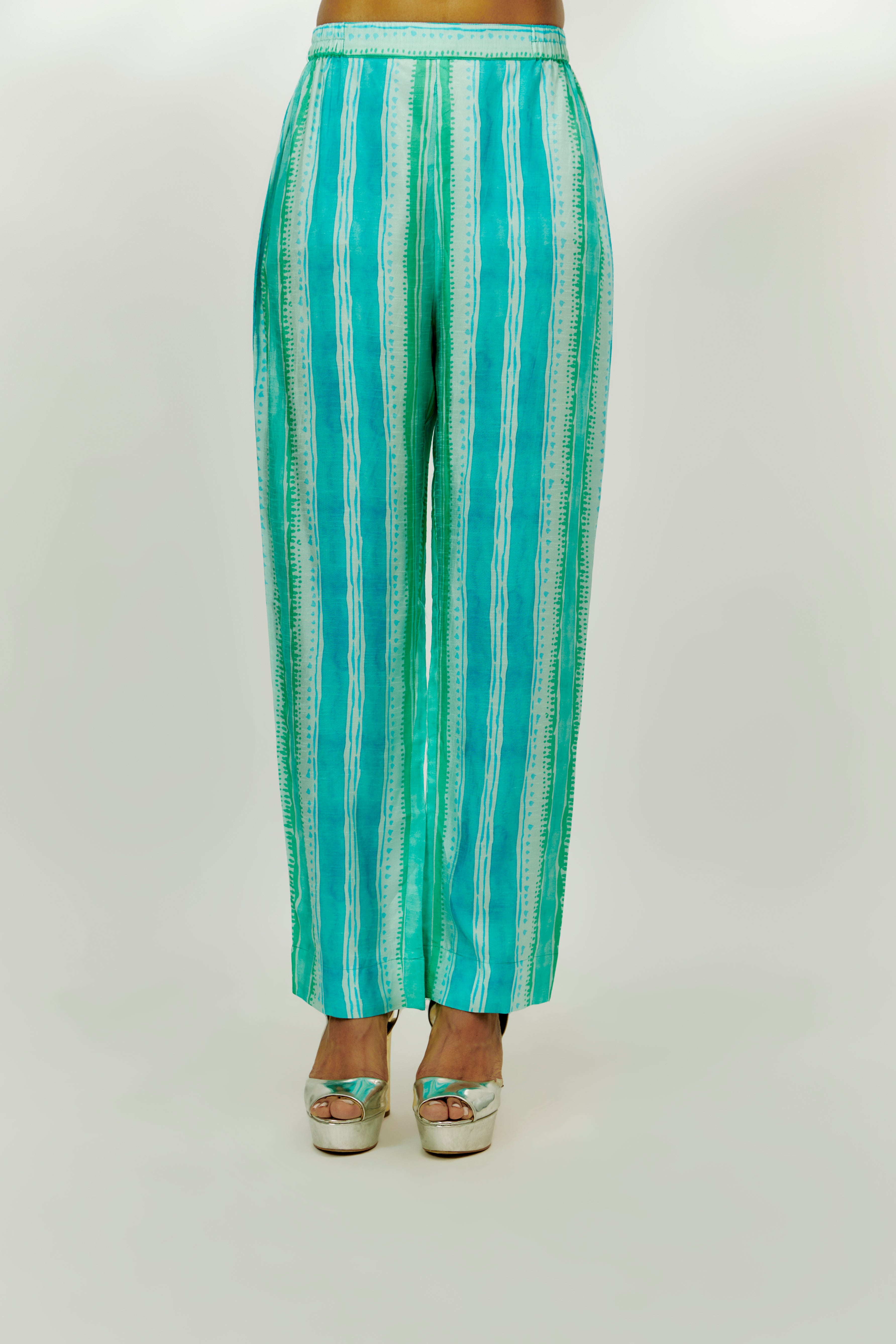 Featuring a cyan blue kaftan in cotton crush base with front slit, digital print and sequins embroidery. It is paired with dupion silk straight pants. Accentuate it with statement jewellery and heels for a festive occasion or pooja ceremony.