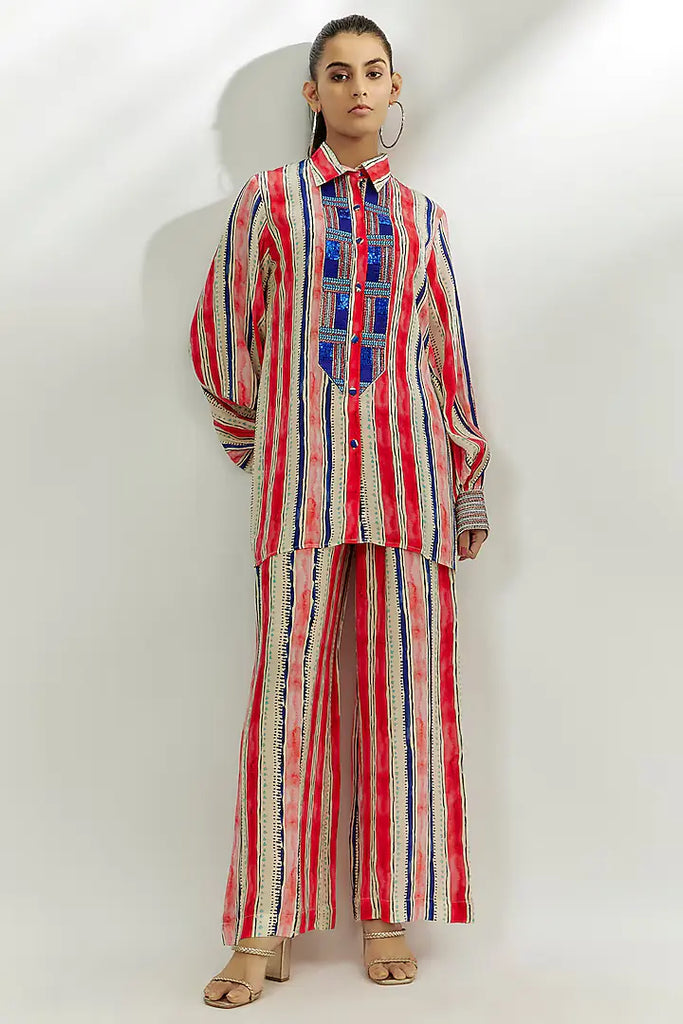 Nyasia Red Chanderi & Organza Applique Work Kurta Set