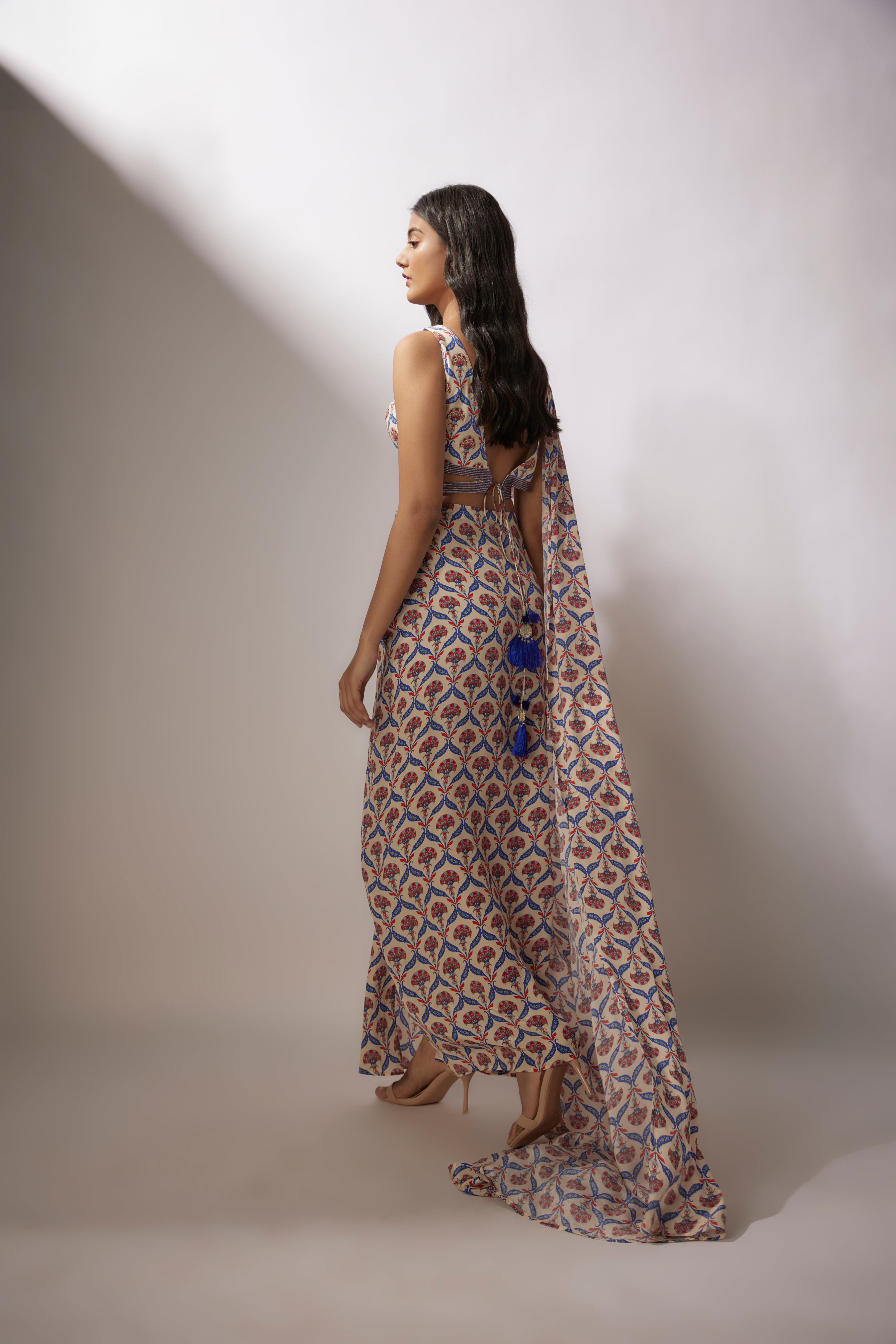 Ivory Printed Pre-Draped Saree Set
