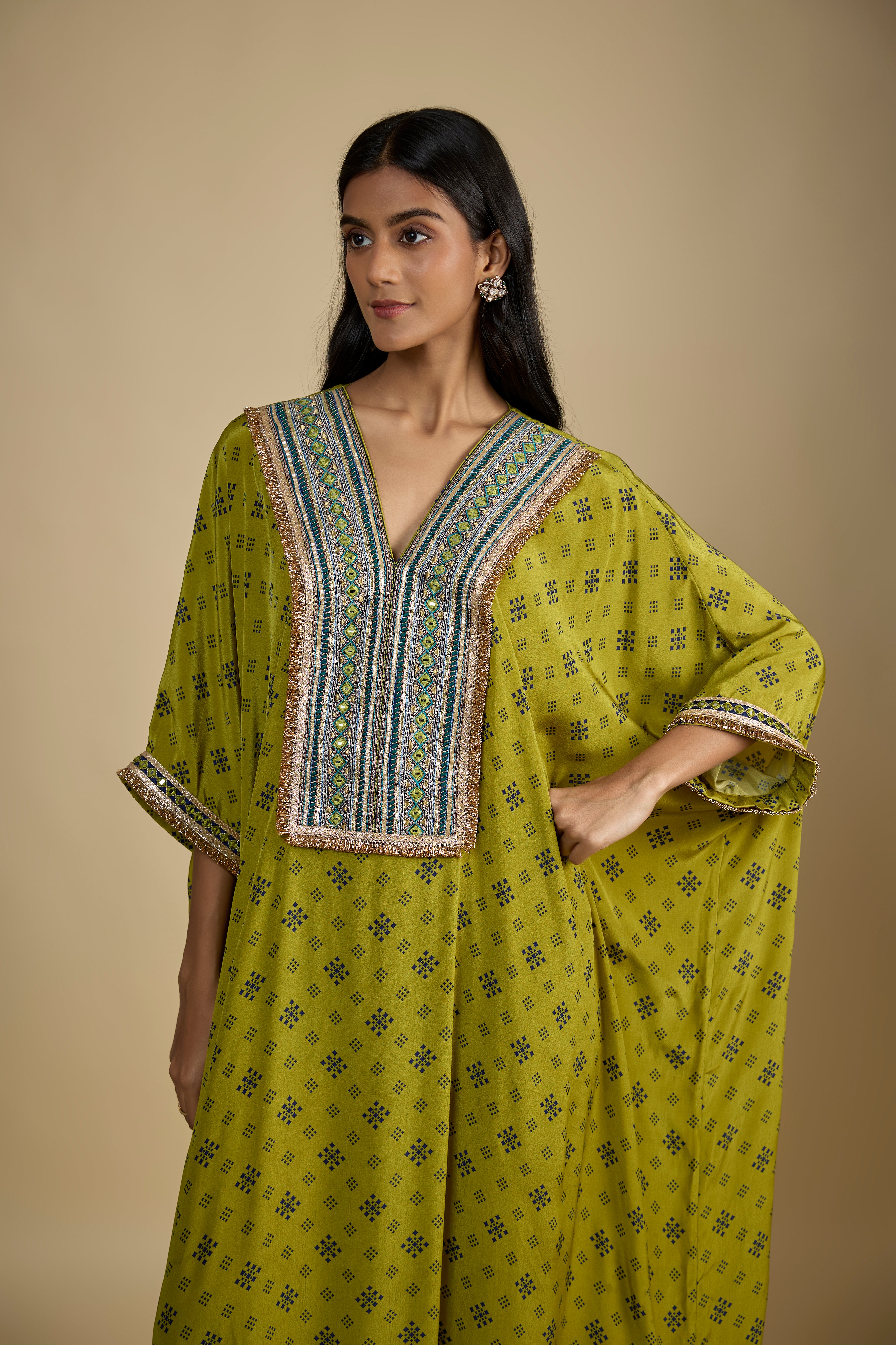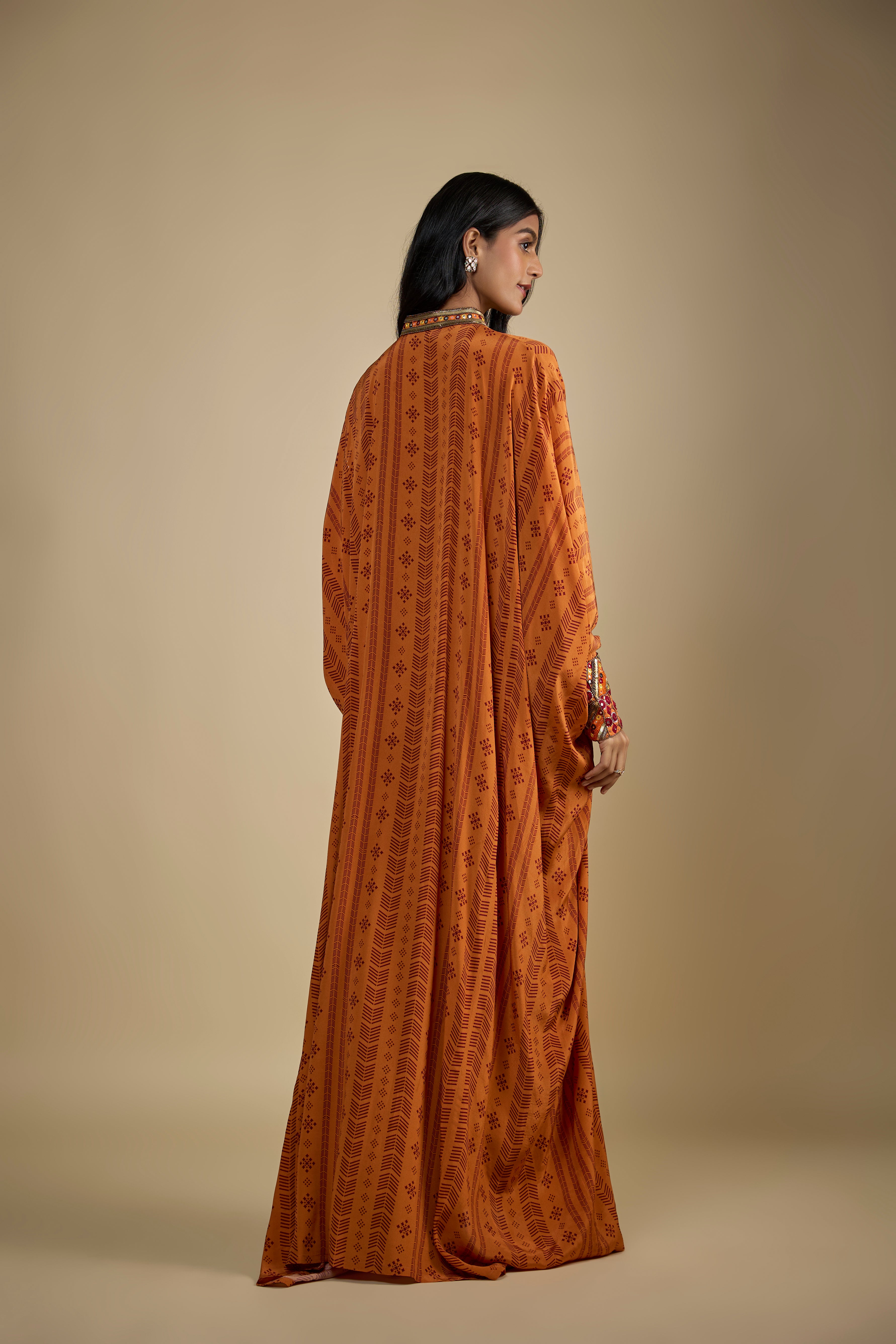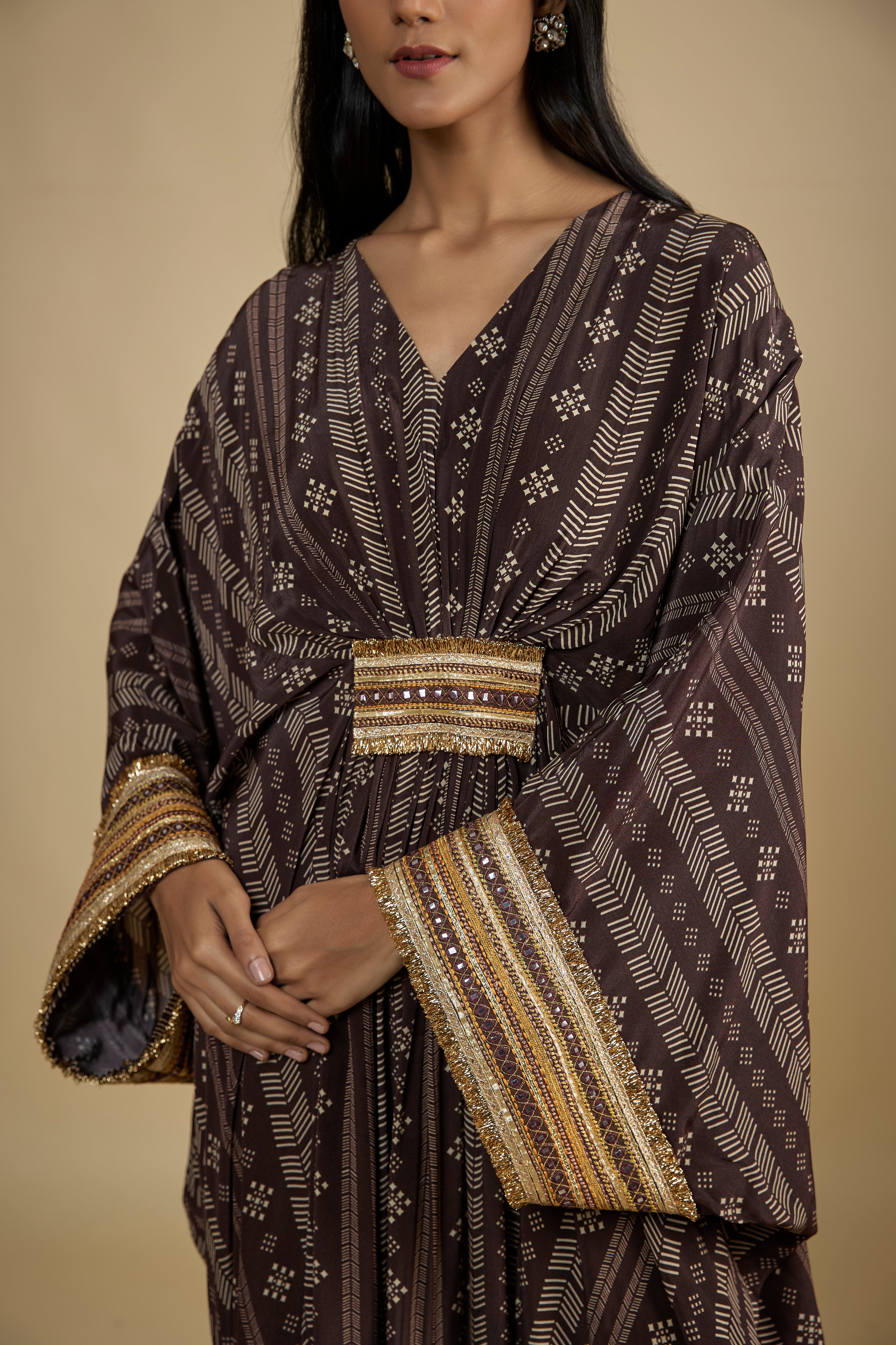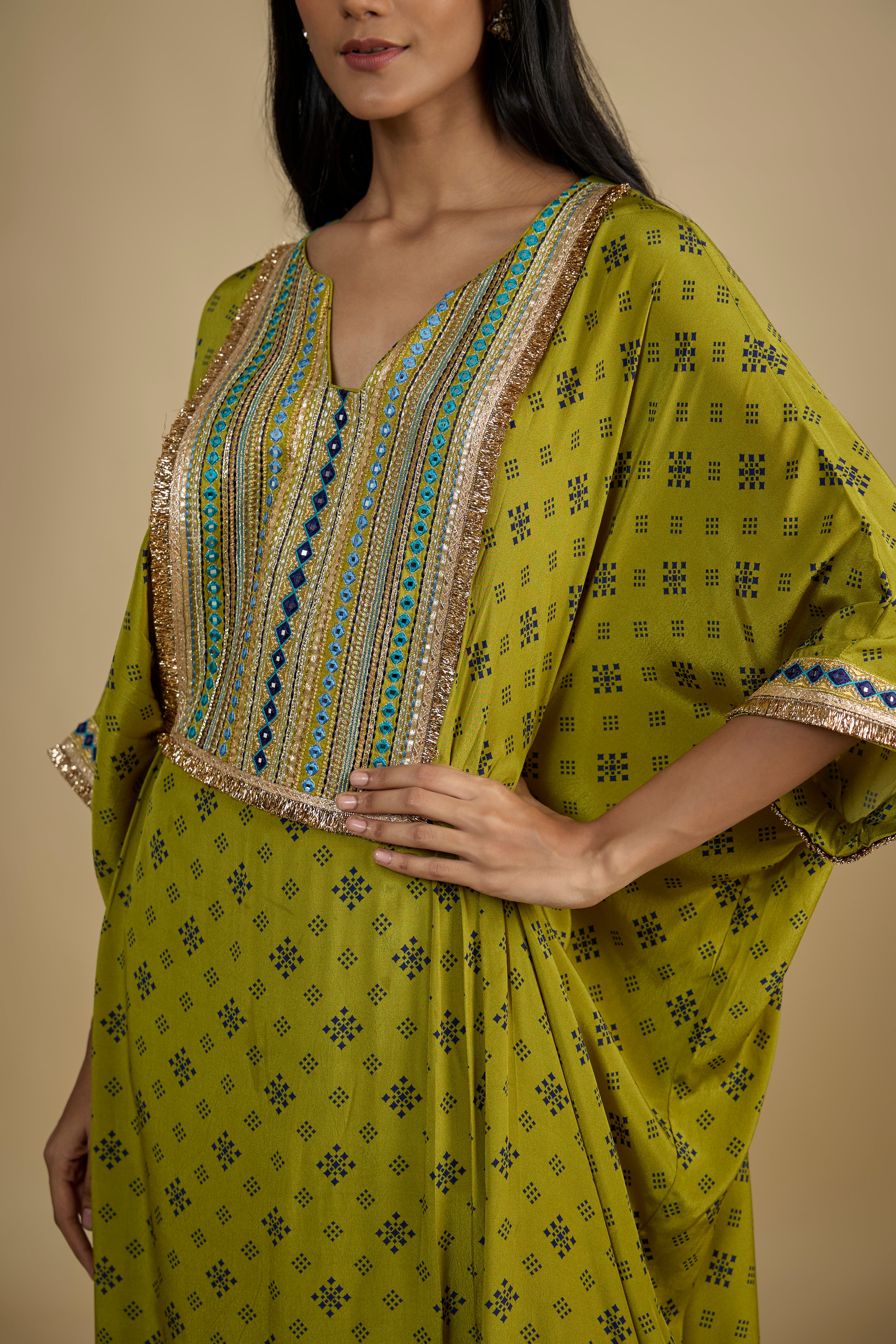 Multi Color Printed and Embroidered One- Shoulder Kaftan