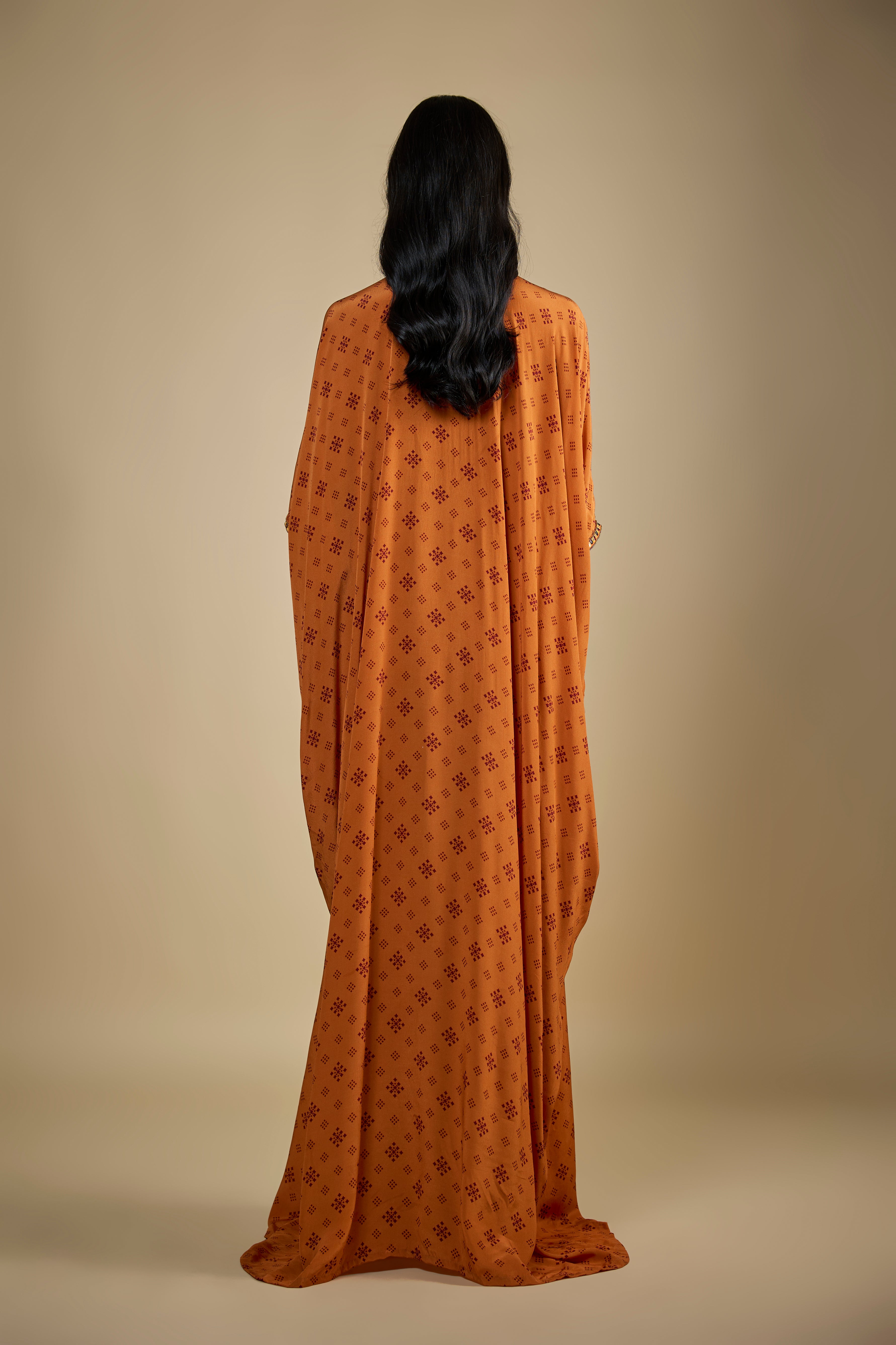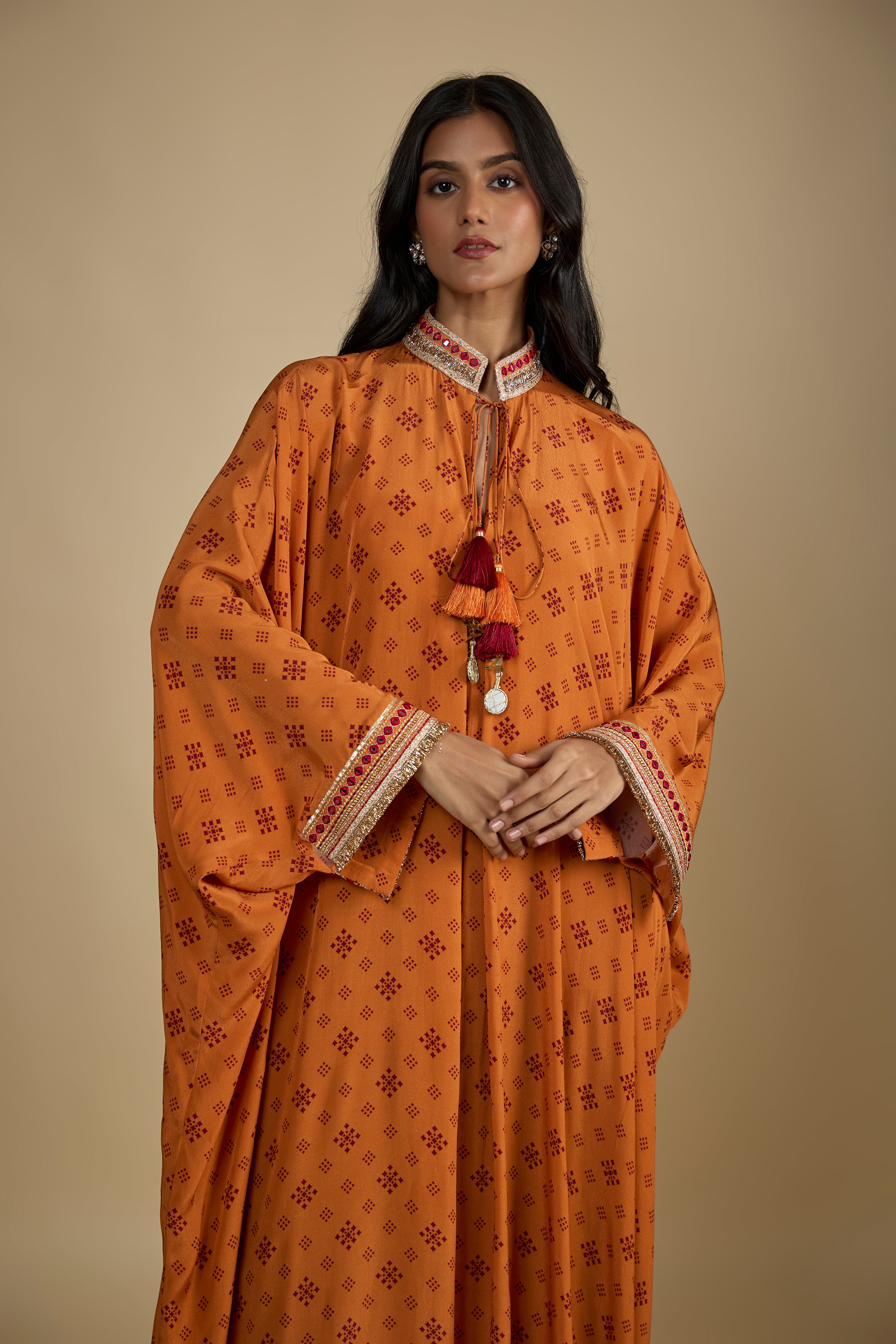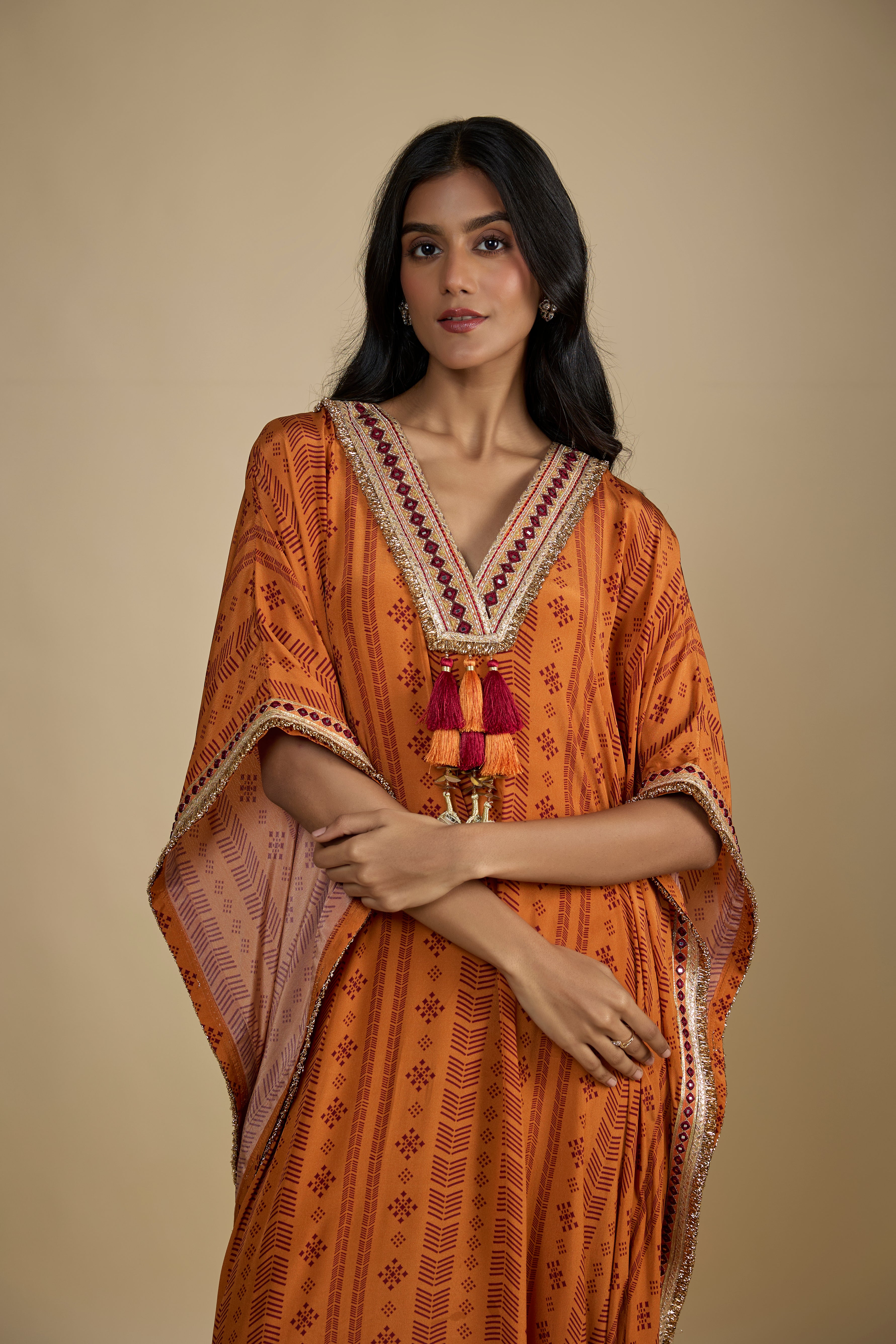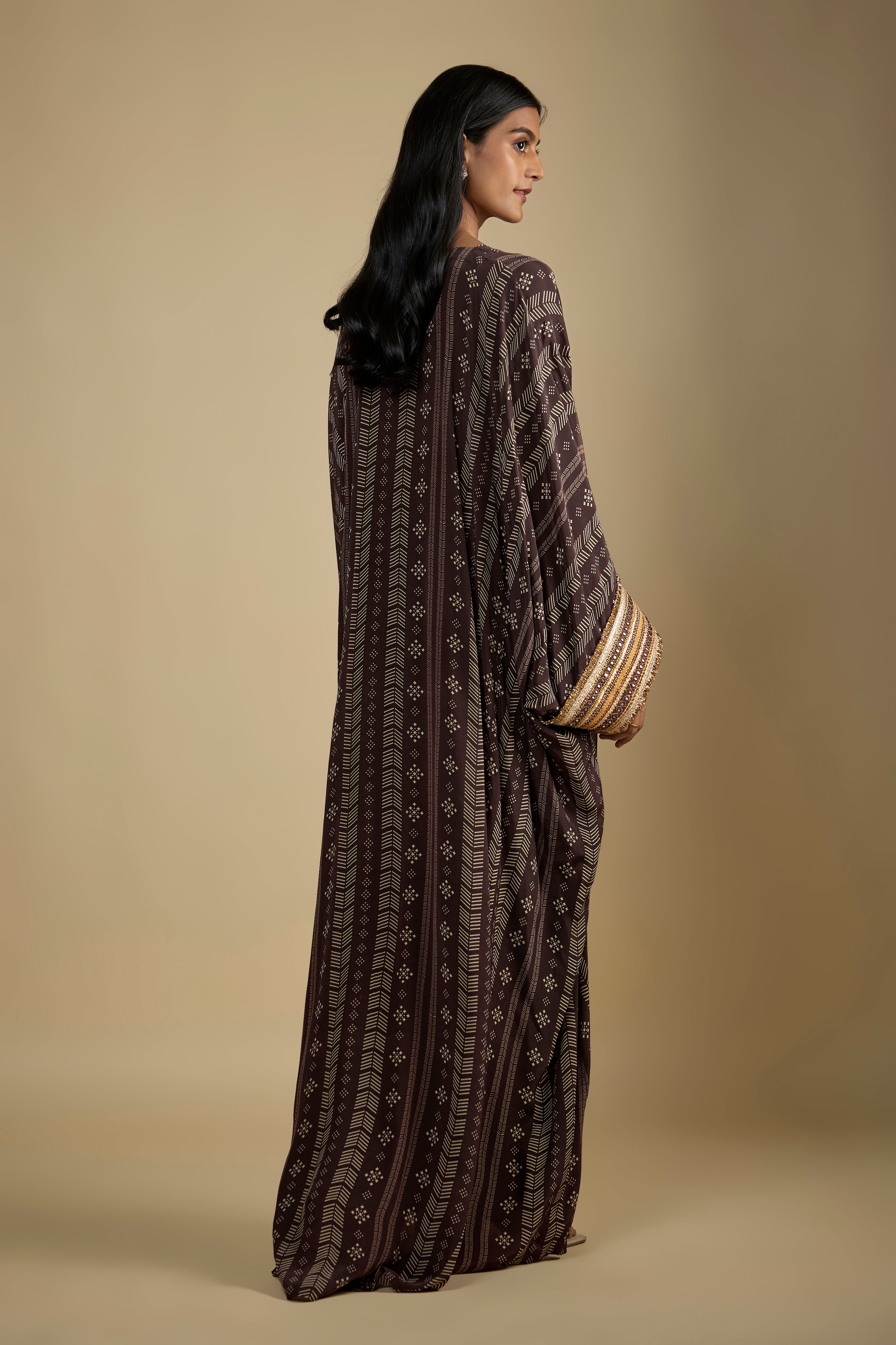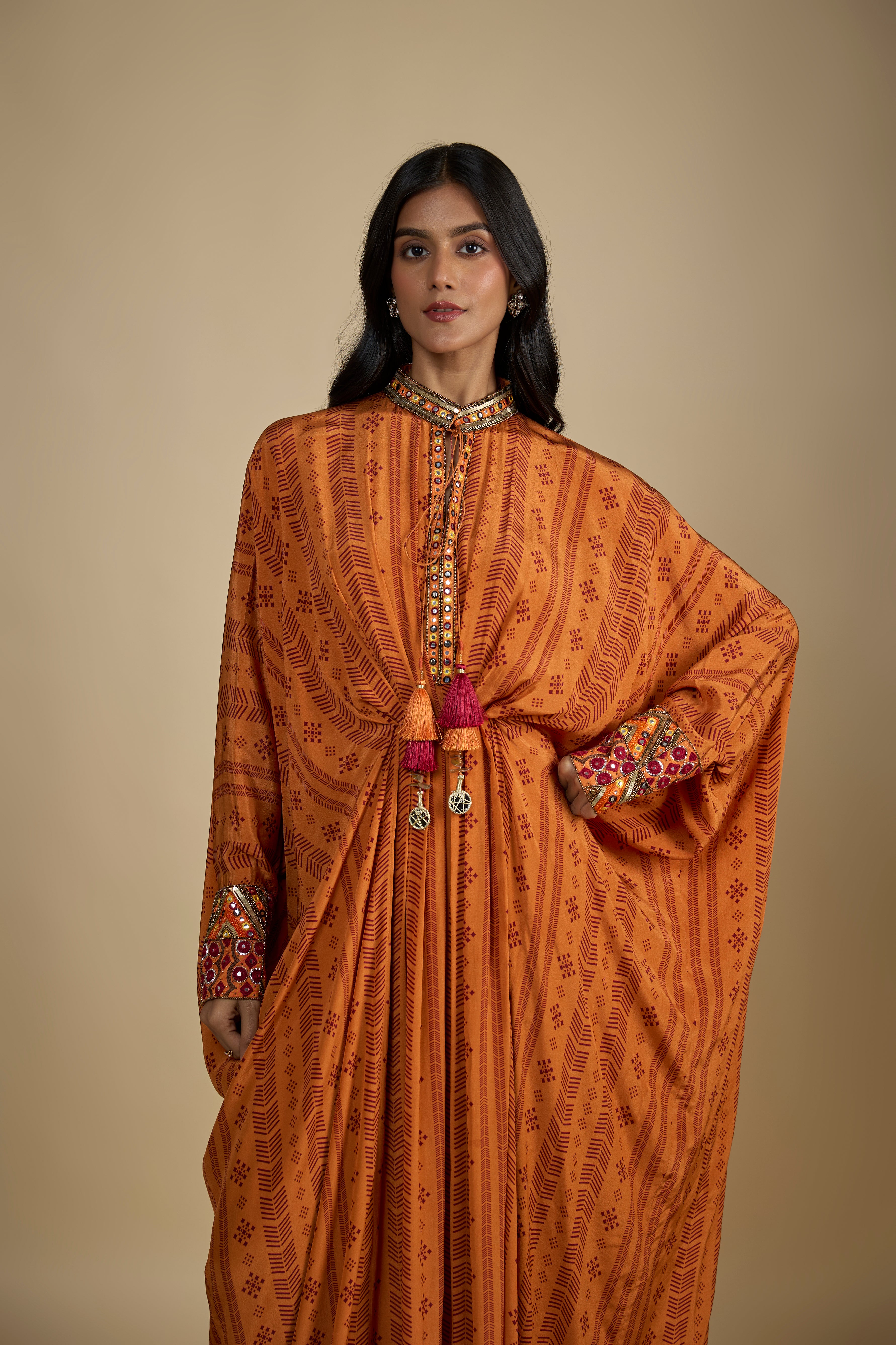 Multi Color Printed and Embroidered One- Shoulder Kaftan