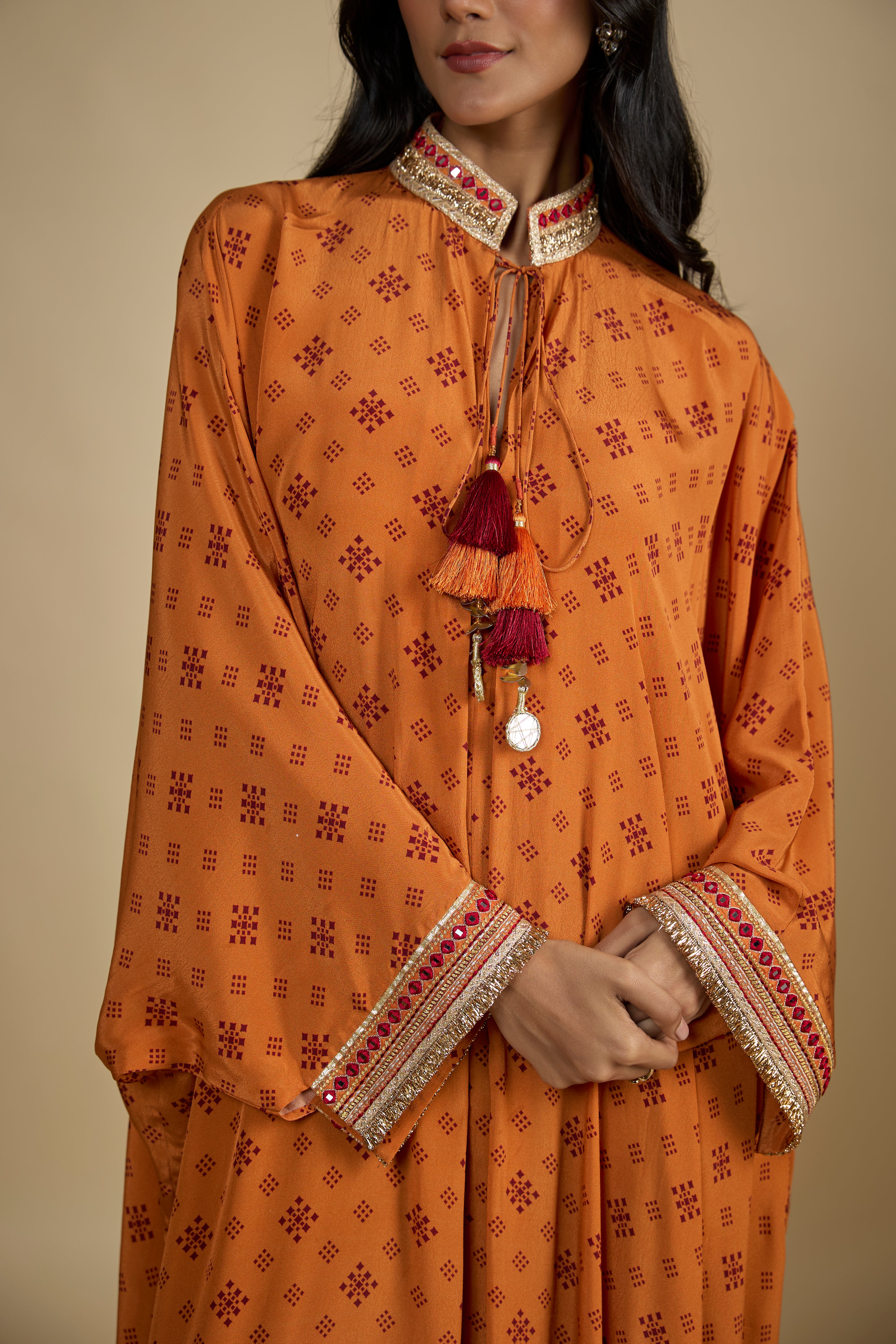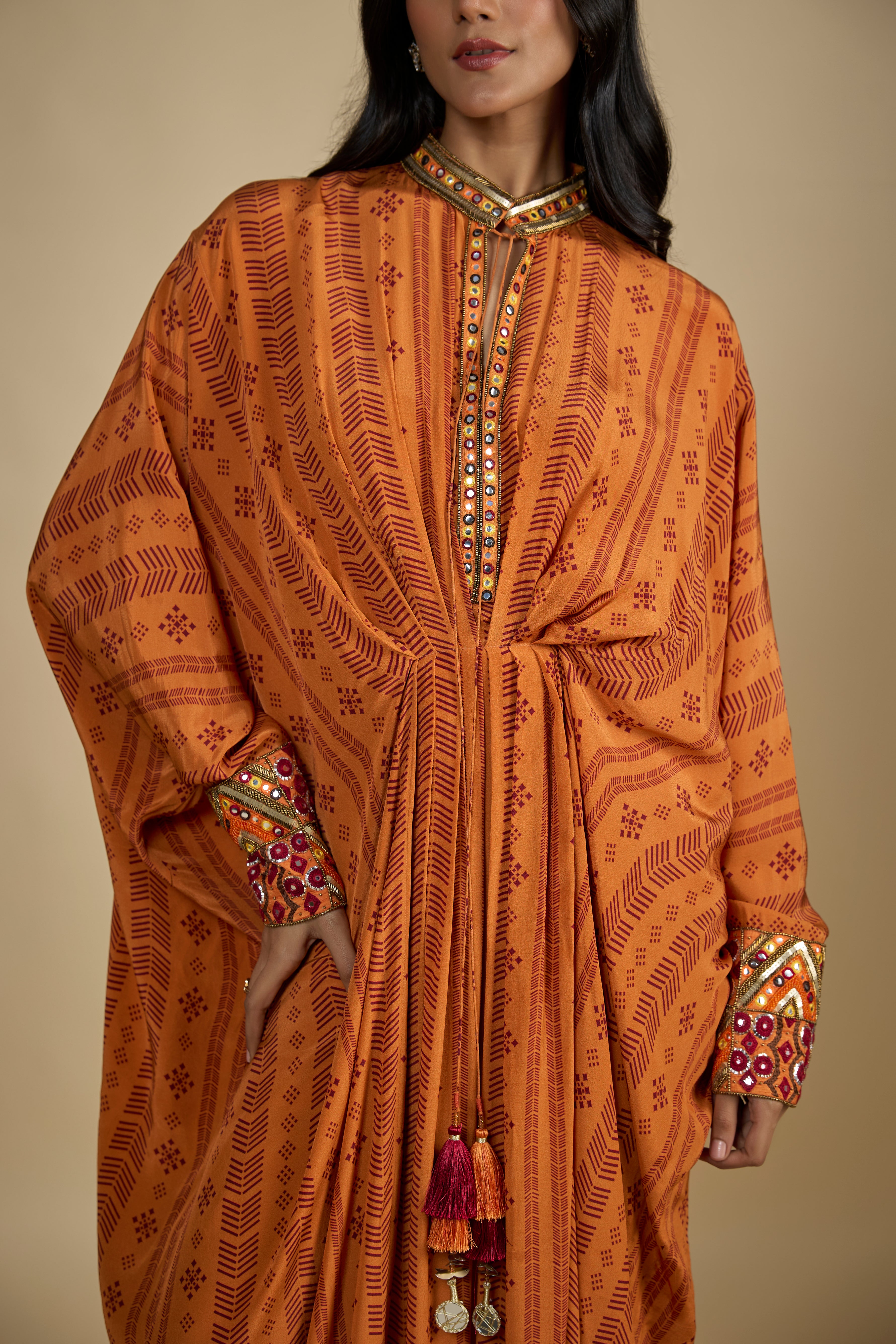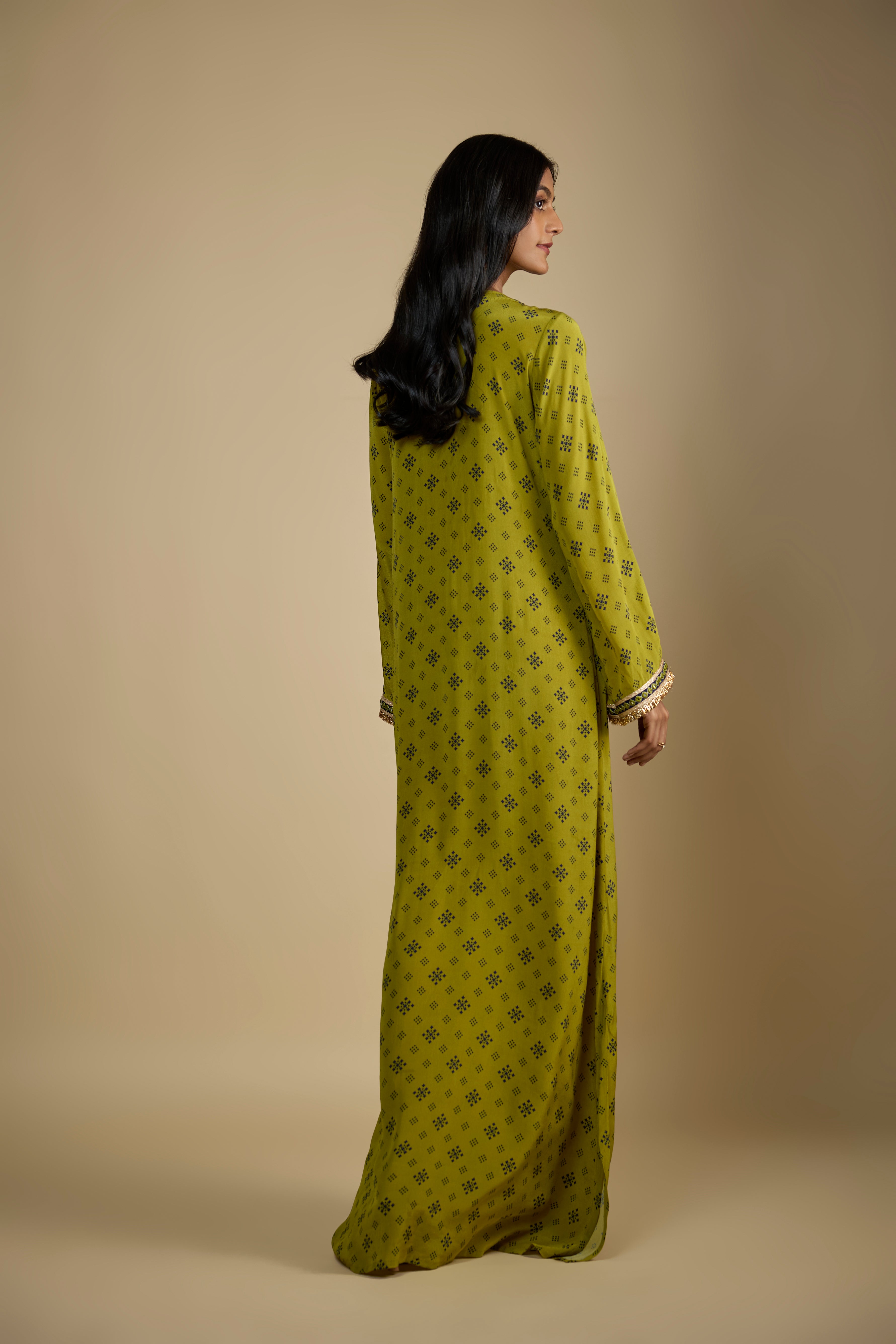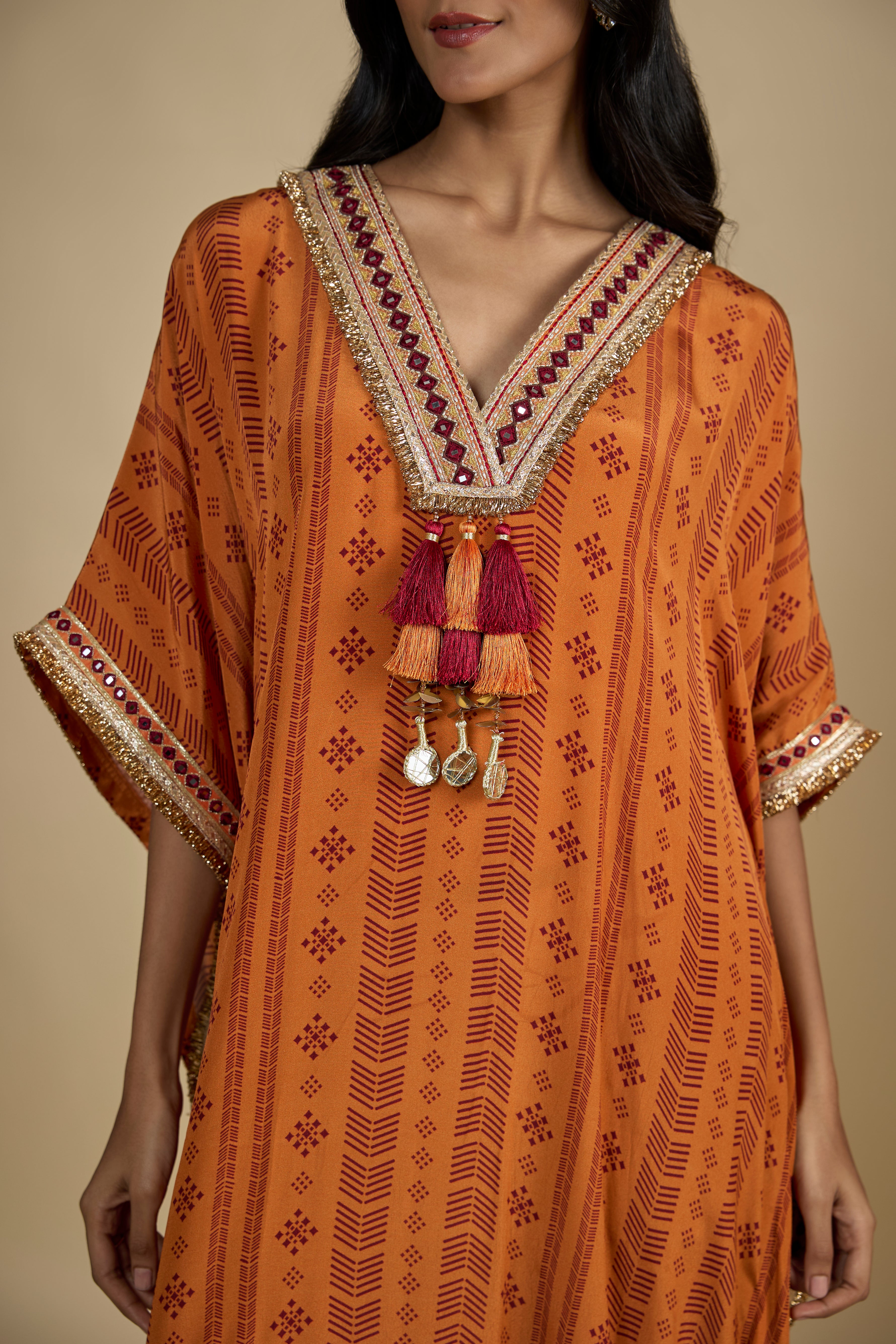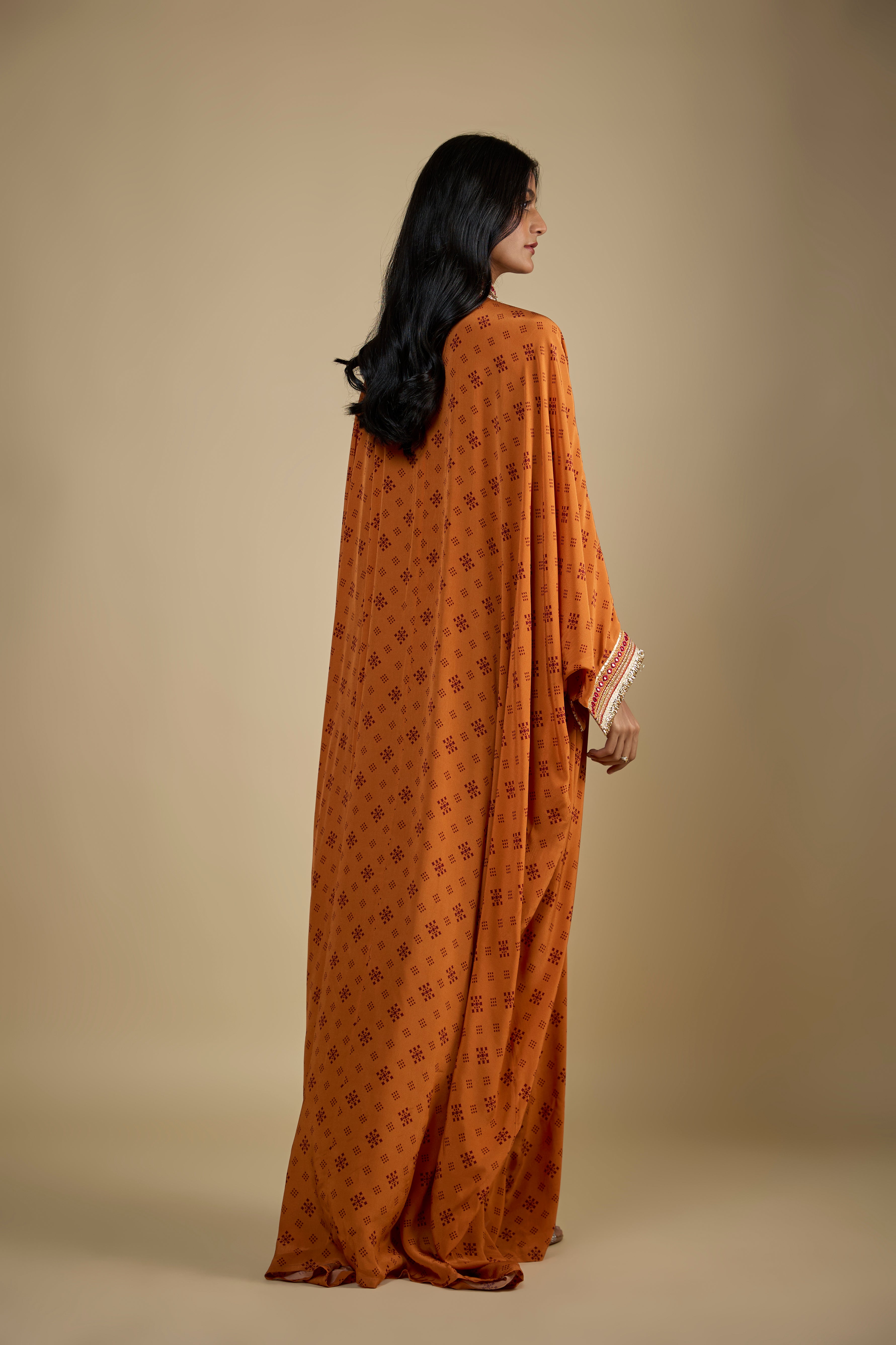 Multi Color Printed and Embroidered One- Shoulder Kaftan