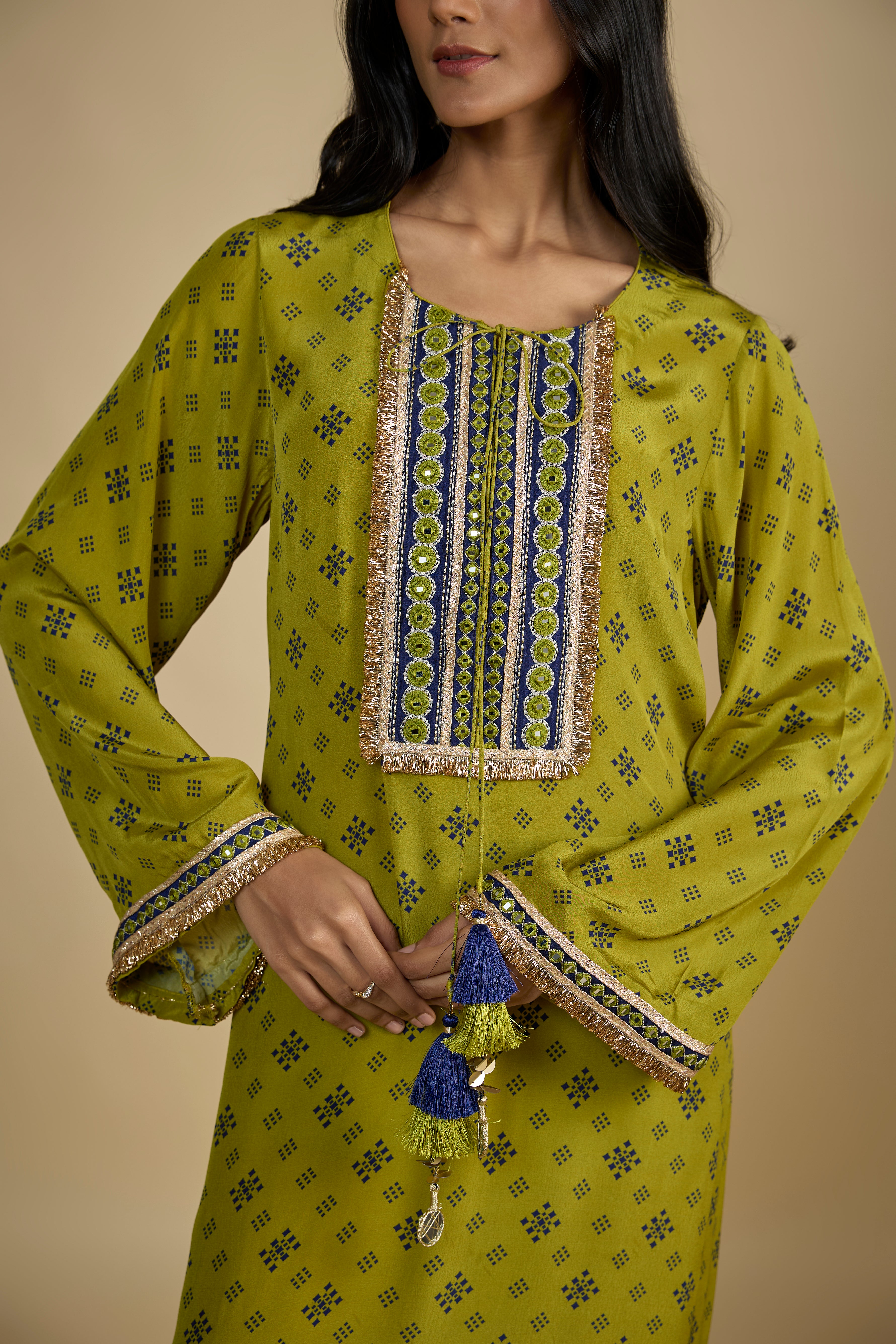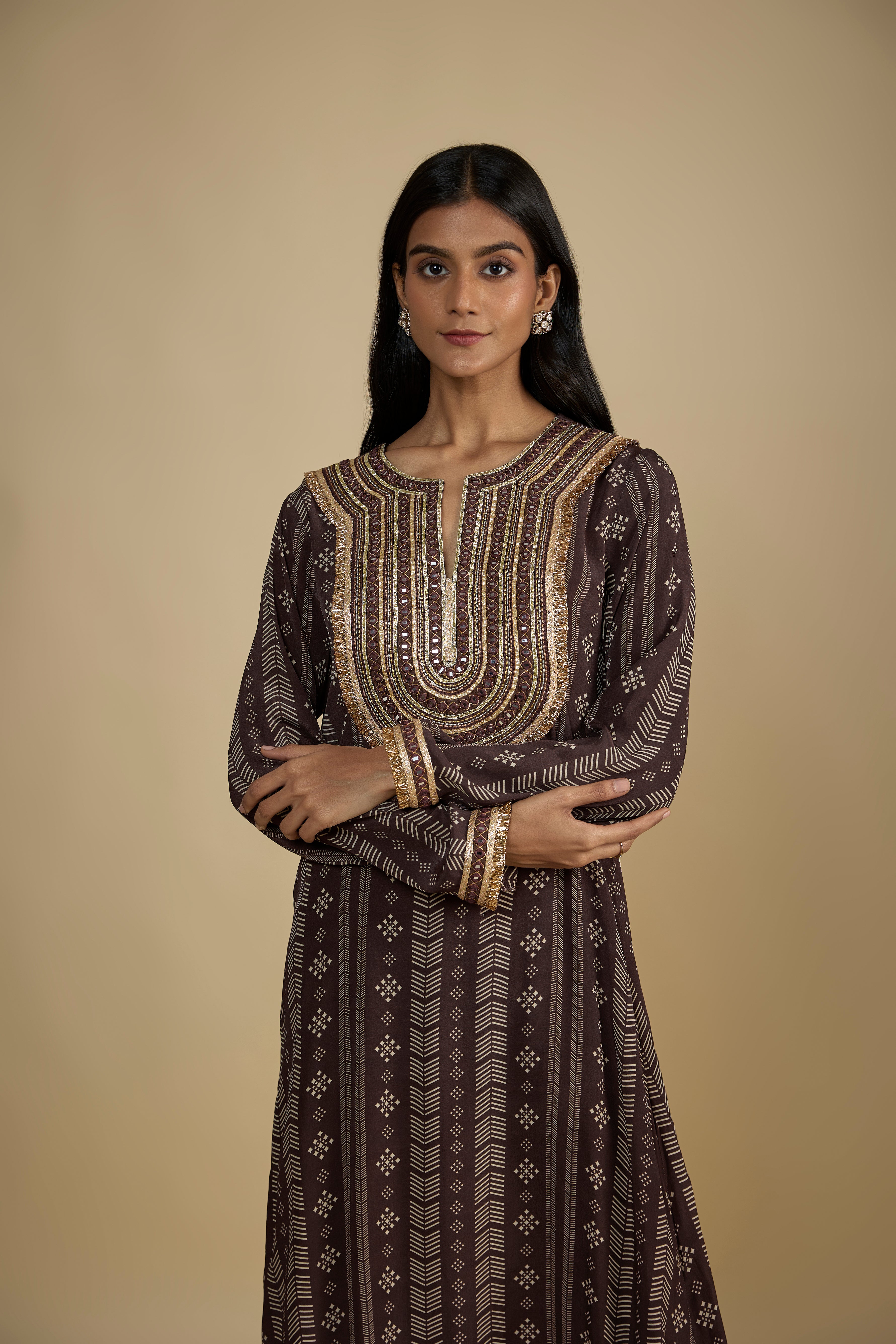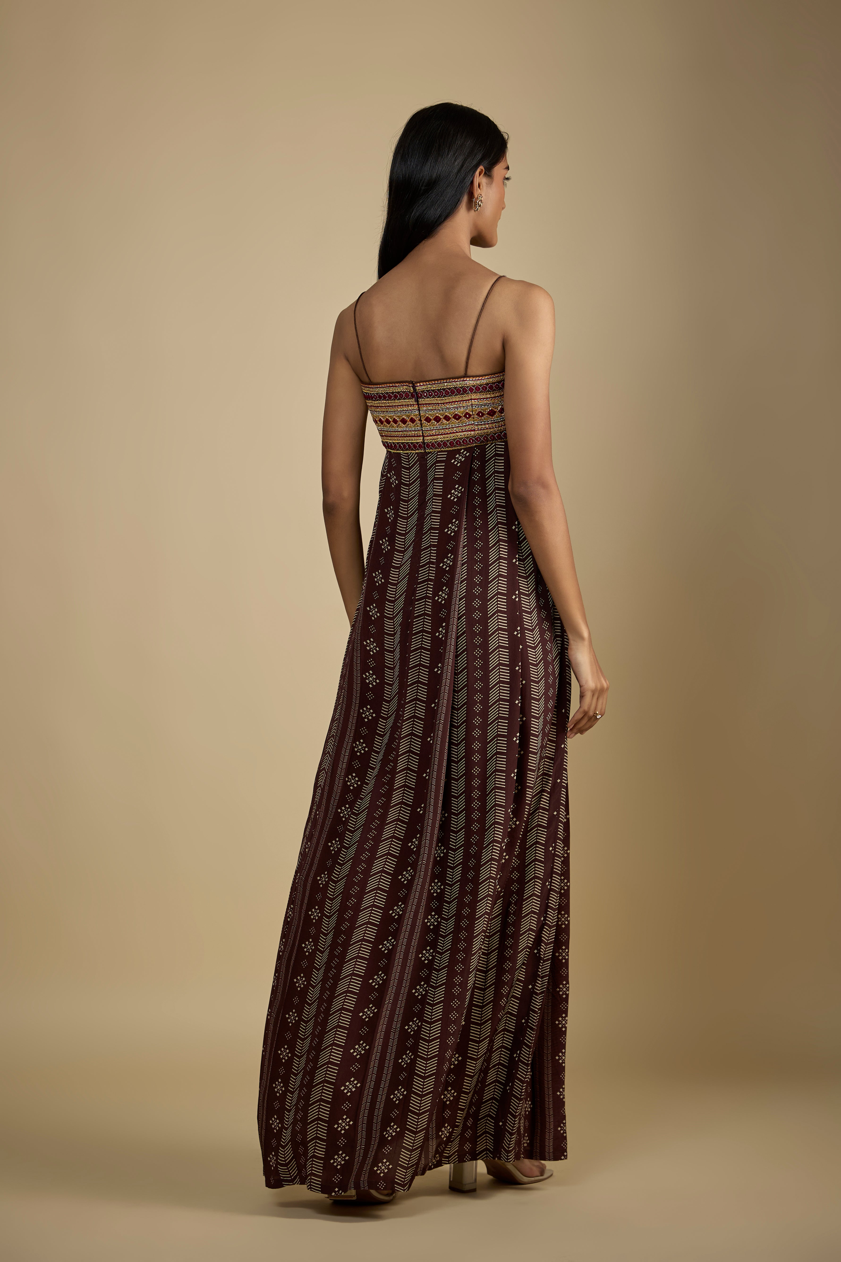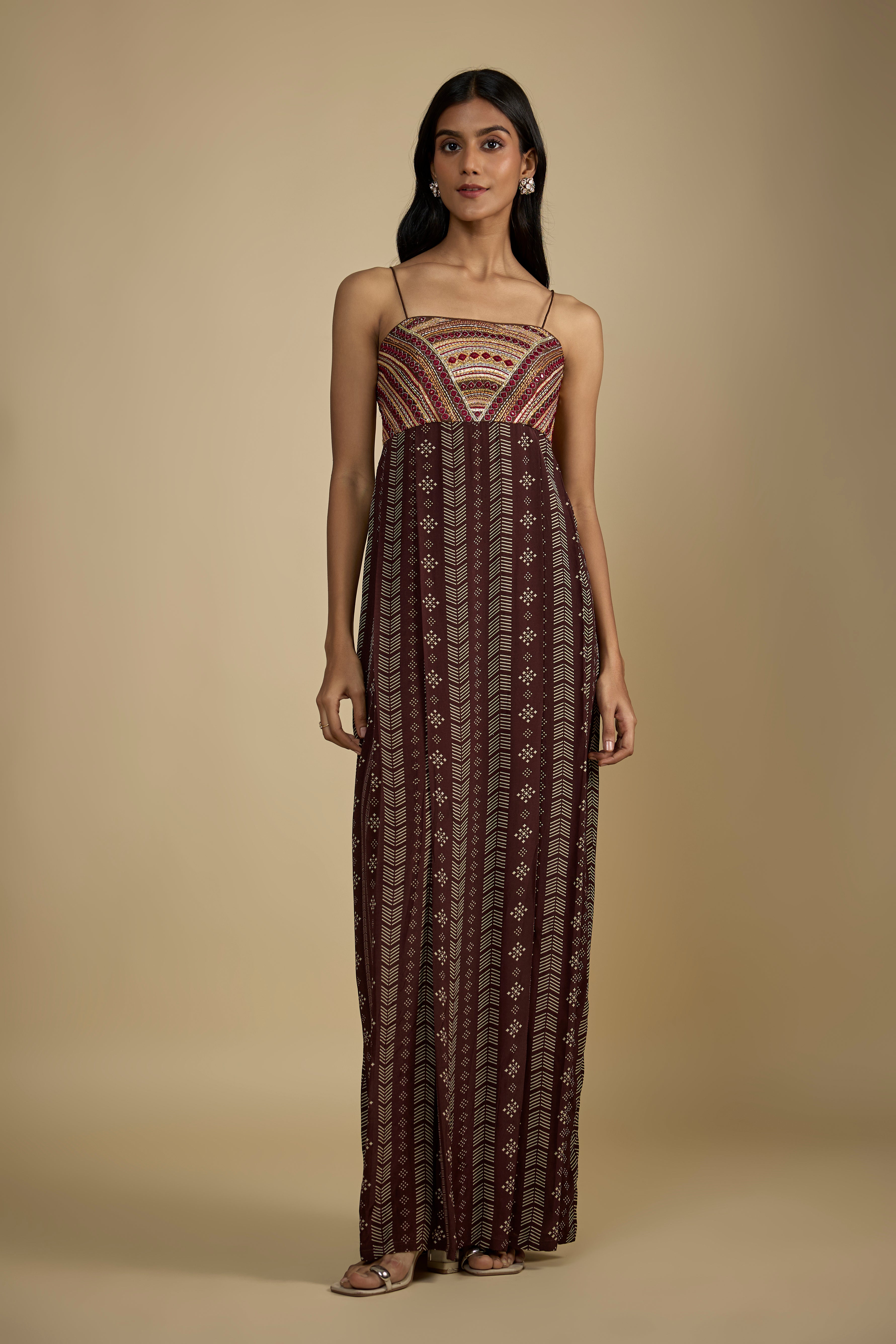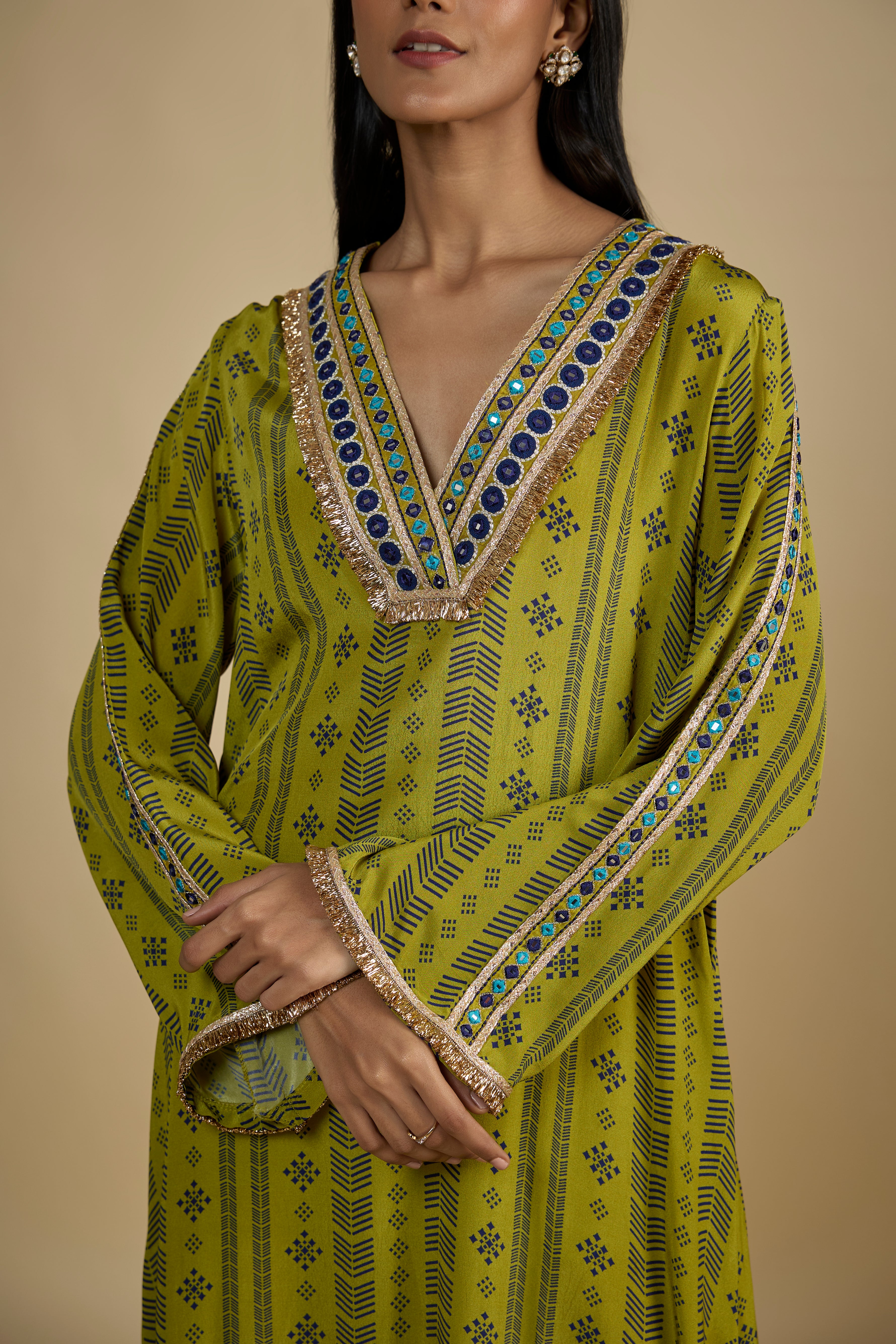 Multi Color Printed and Embroidered One- Shoulder Kaftan