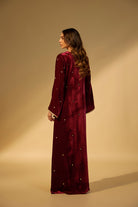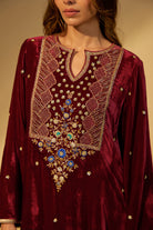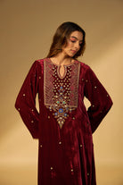 Maroon Embroidered Velvet Kaftan