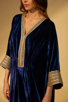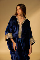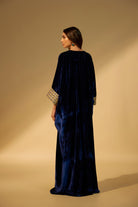 Navy Blue Embroidered Velvet Kaftan