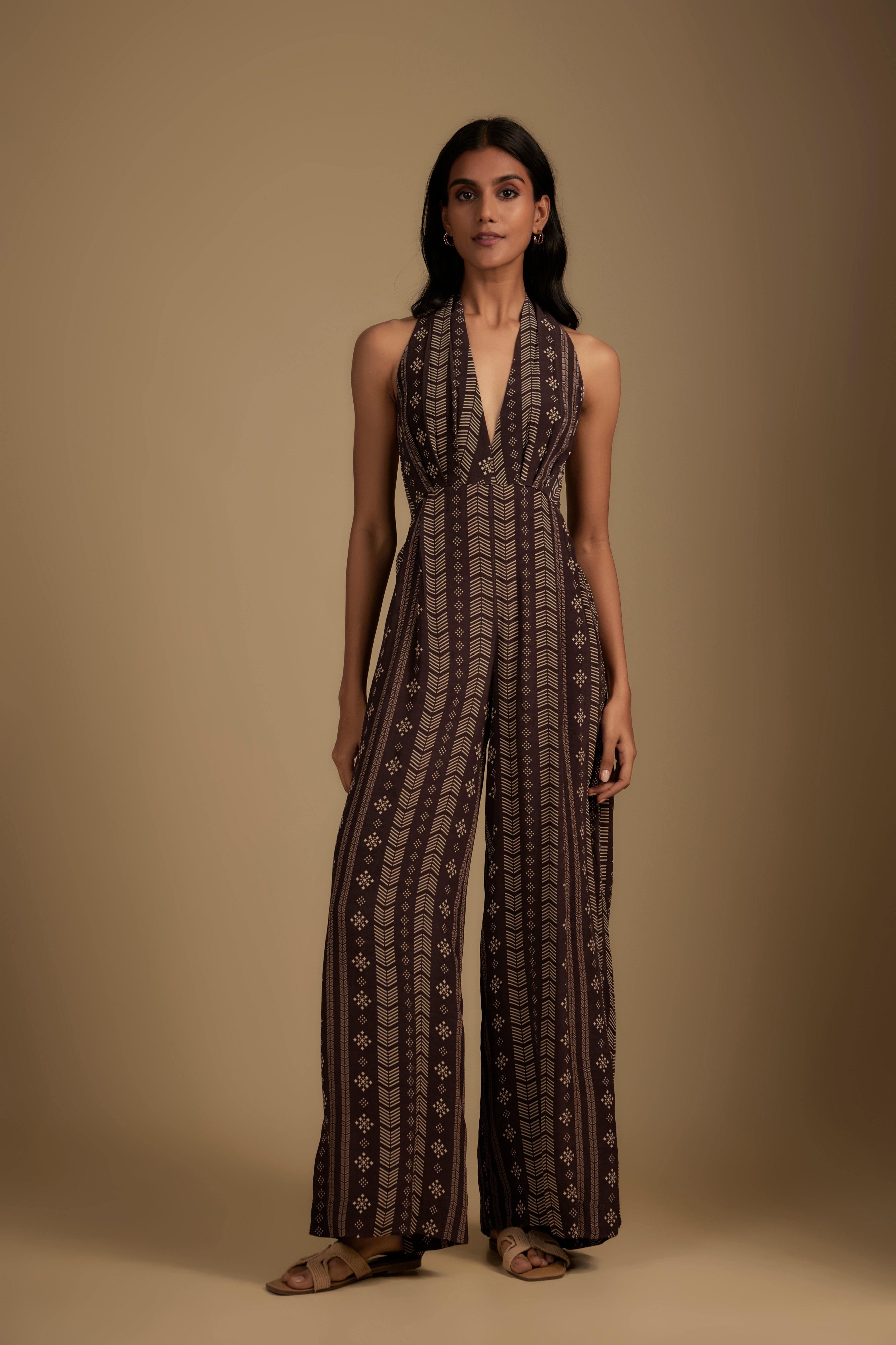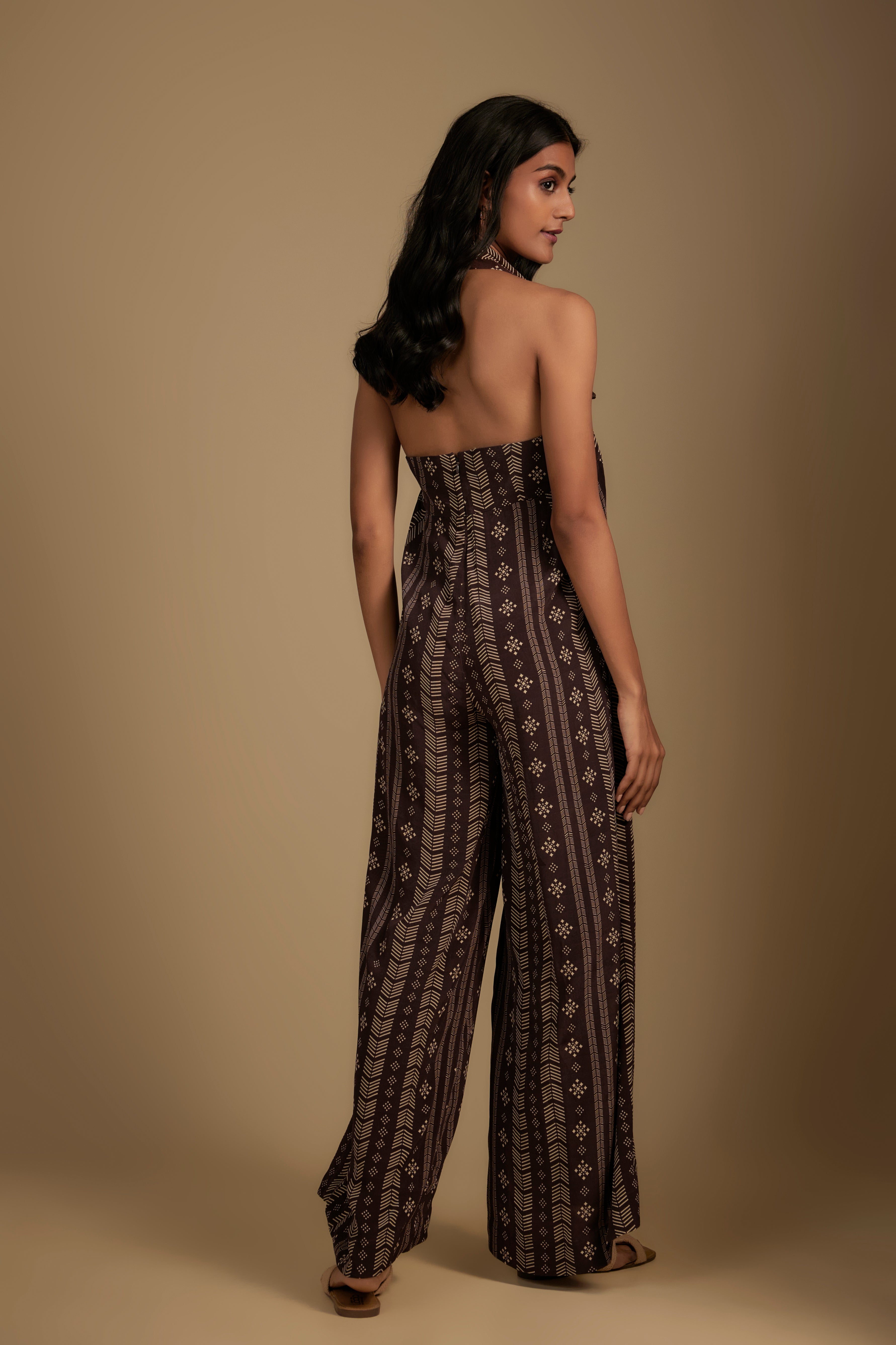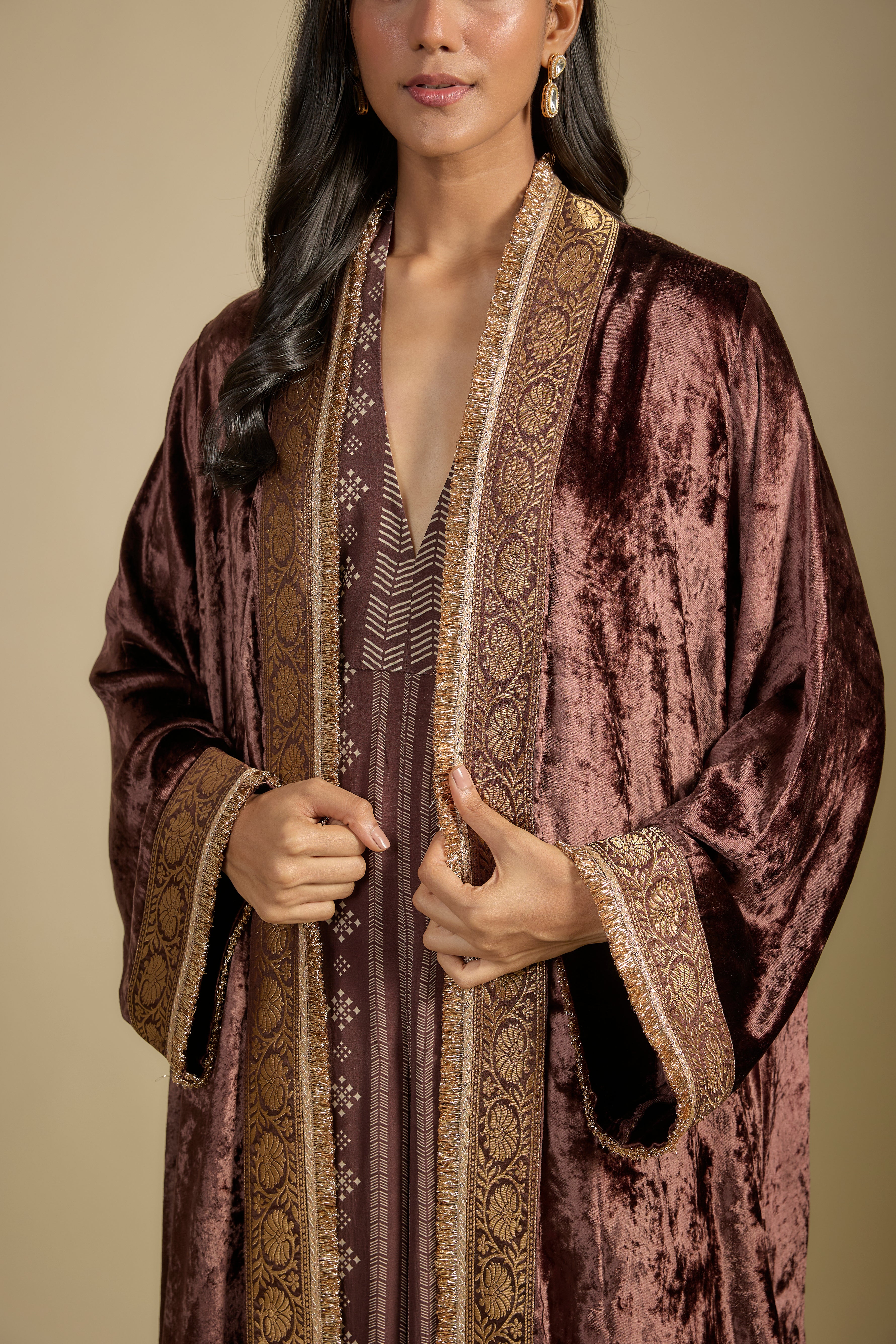 Brown Velvet Cape with Printed Jumpsuit