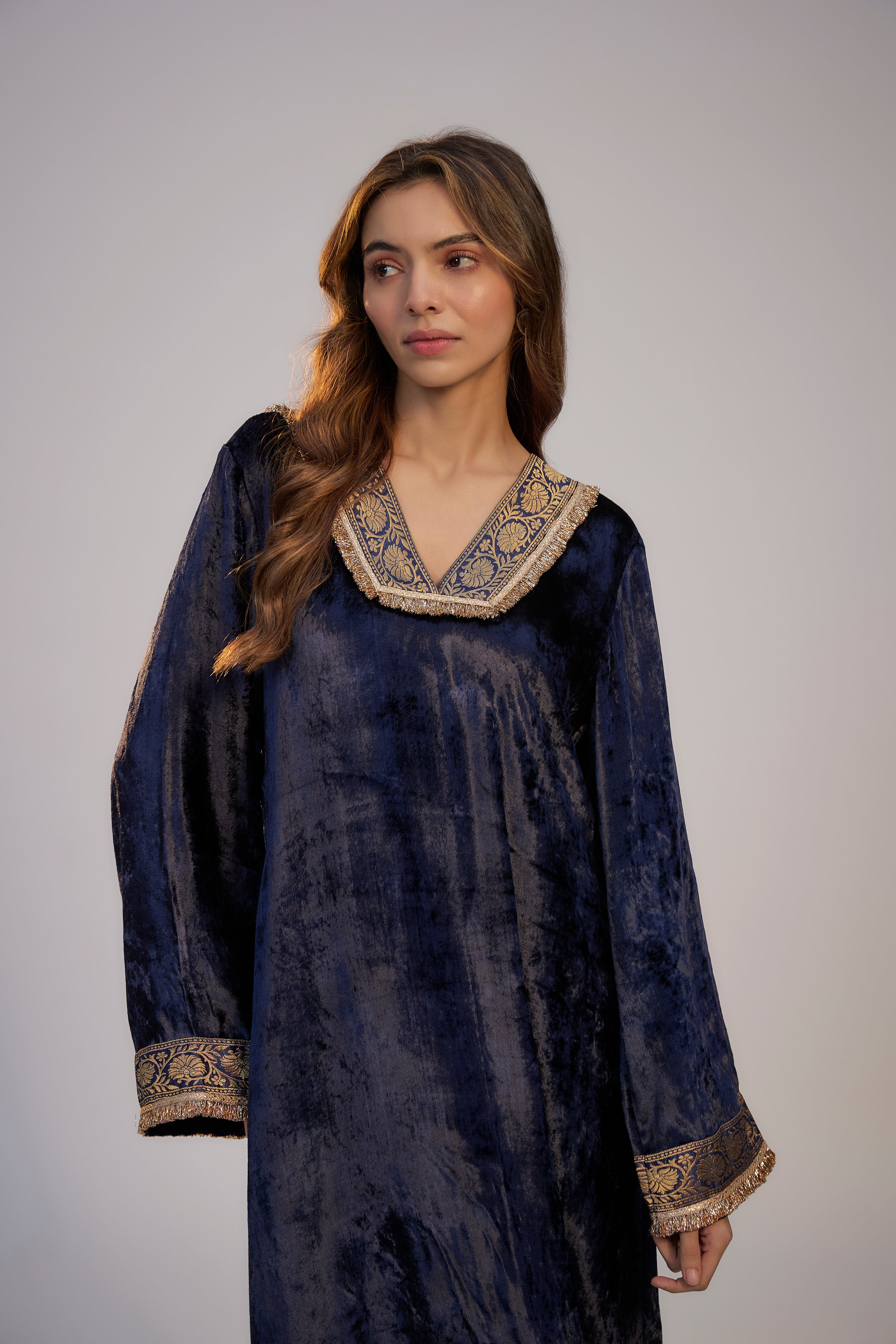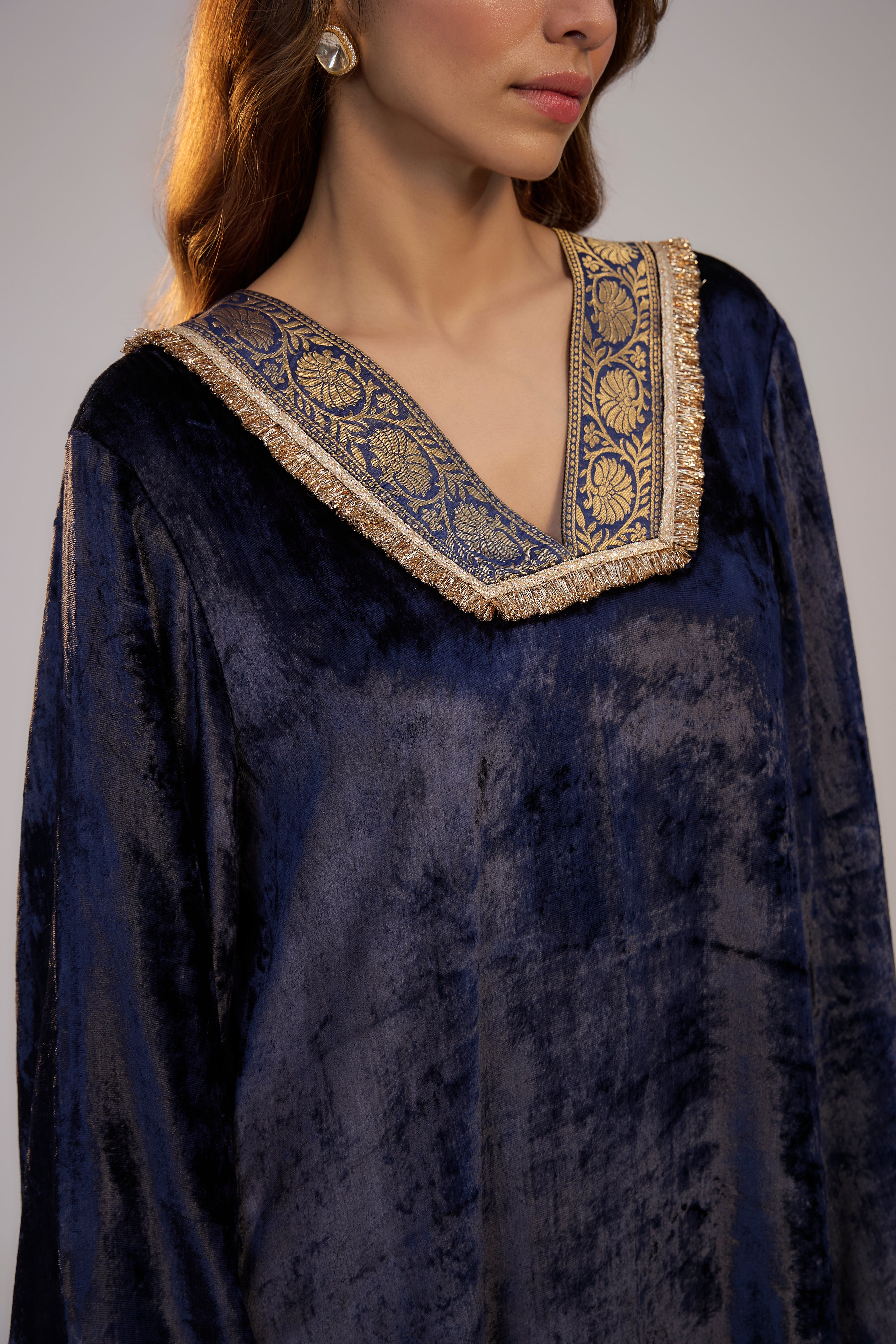 Dark Blue Velvet Kaftan