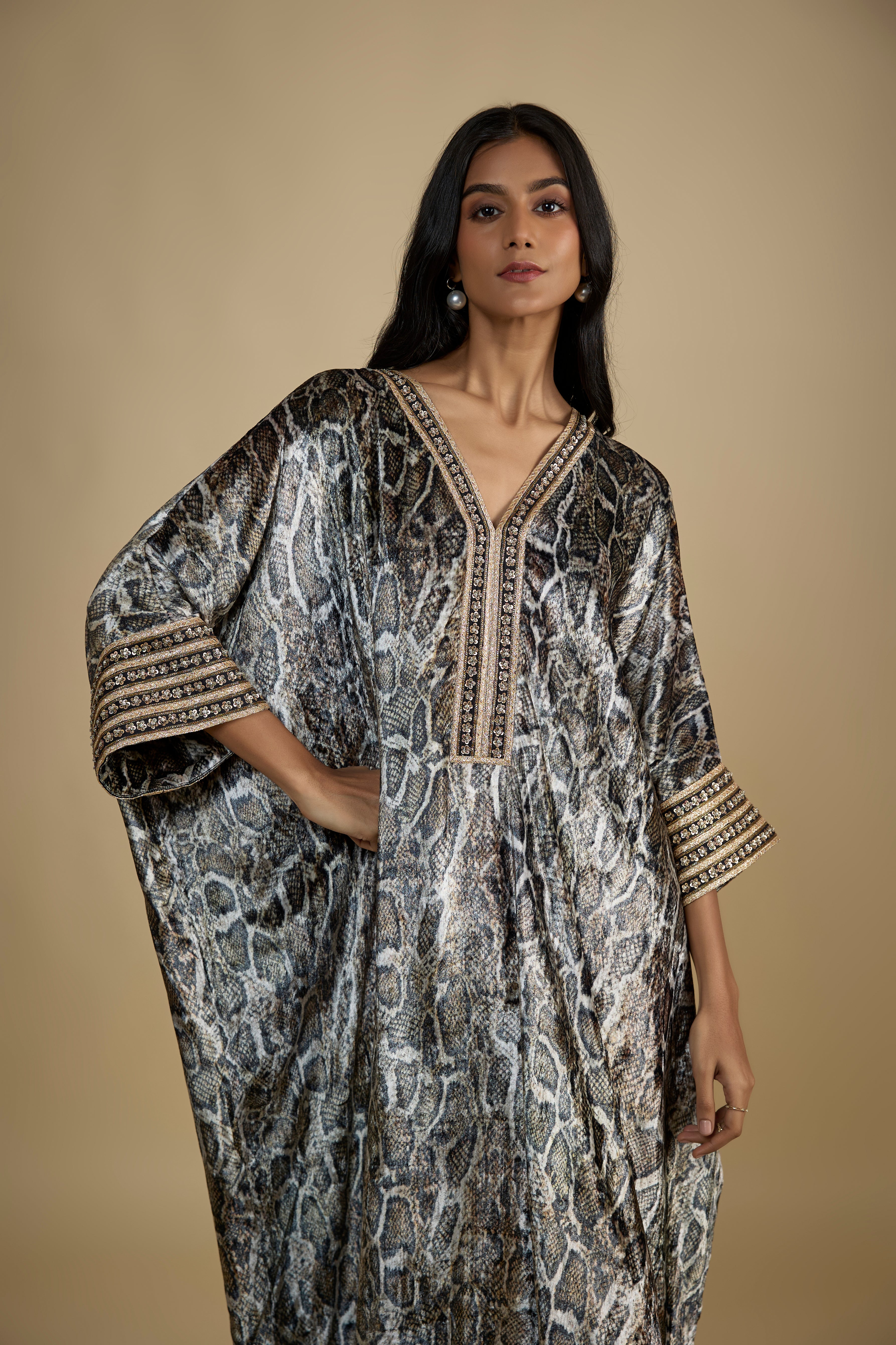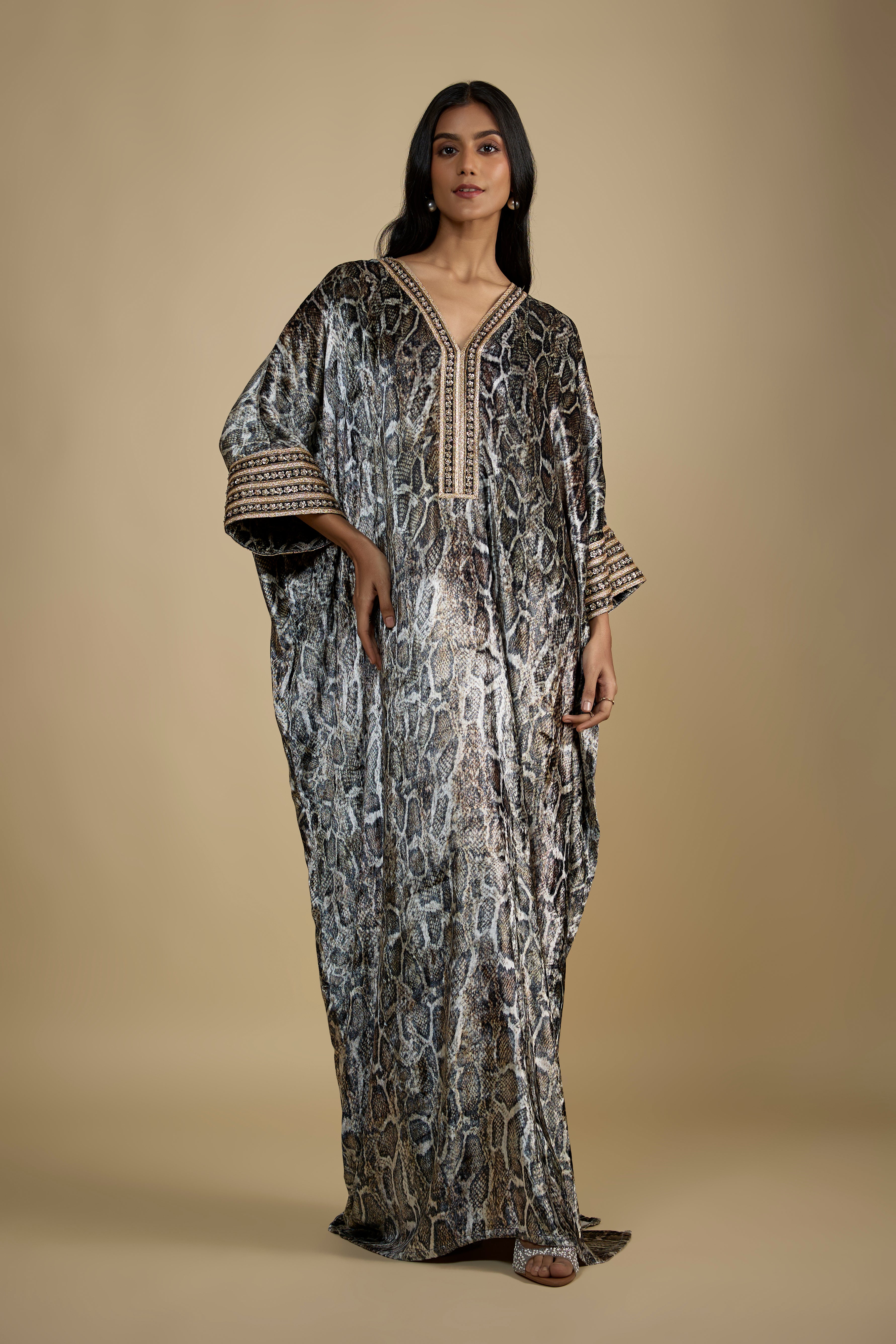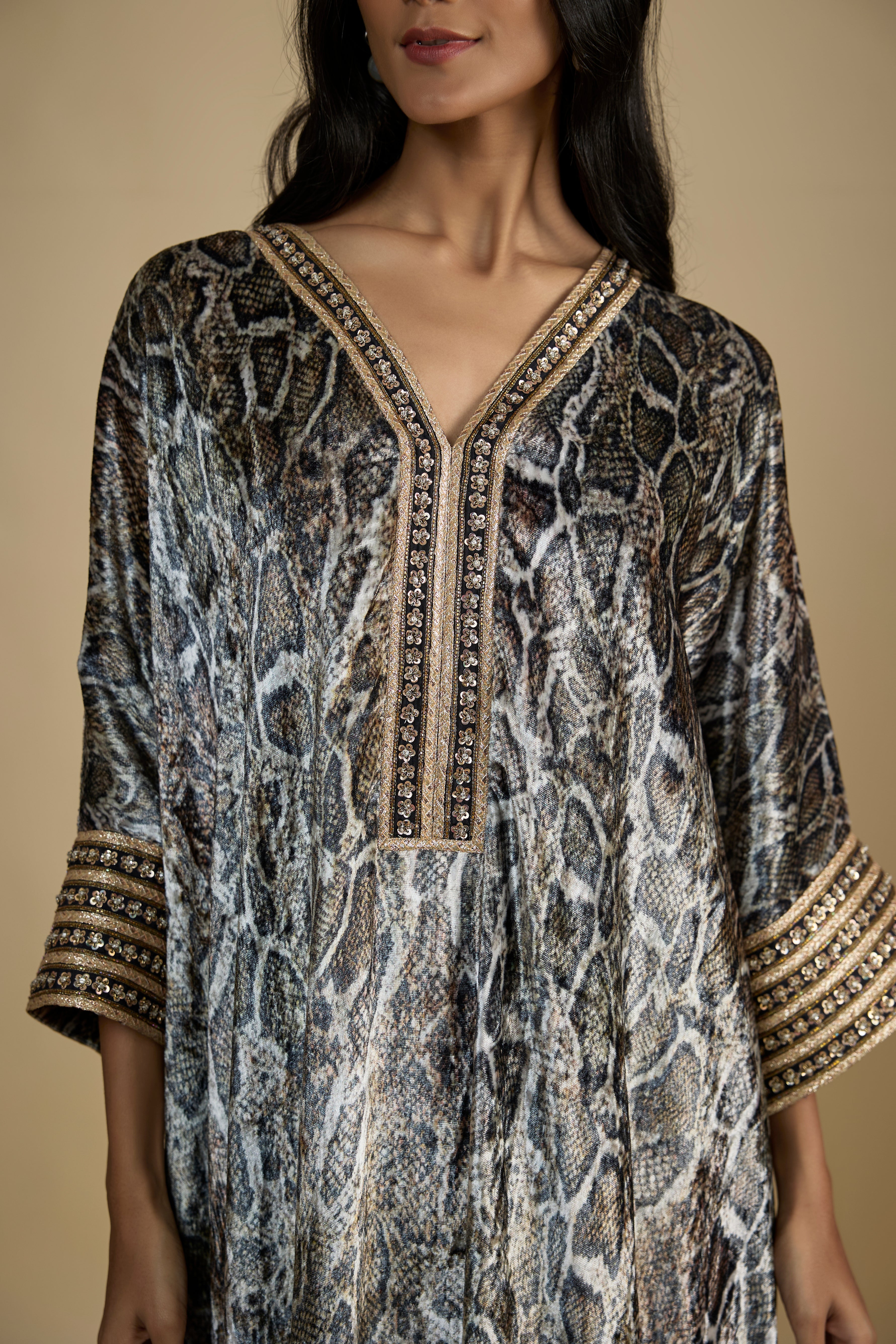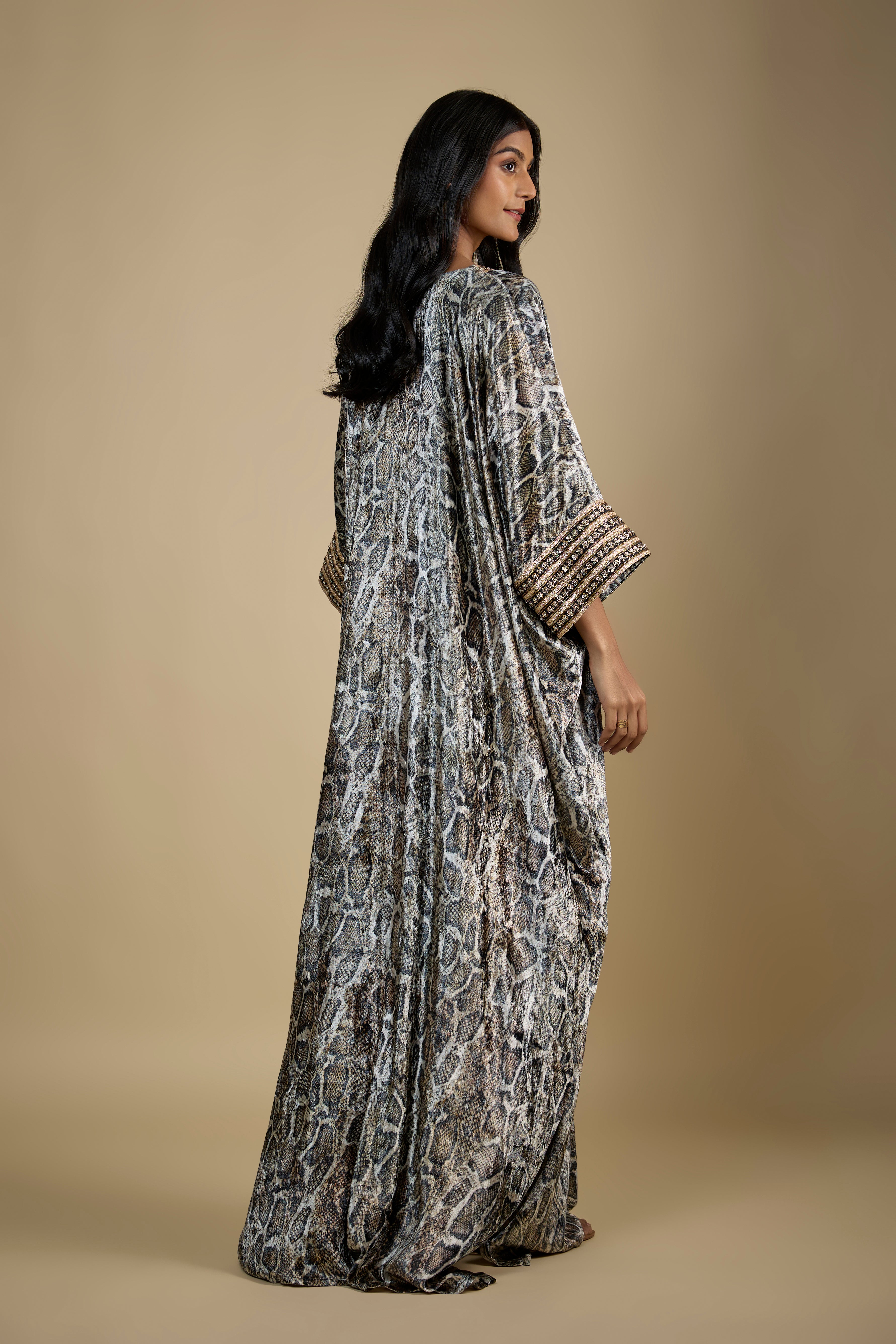 Snake Print Velvet Embroidered Kaftan