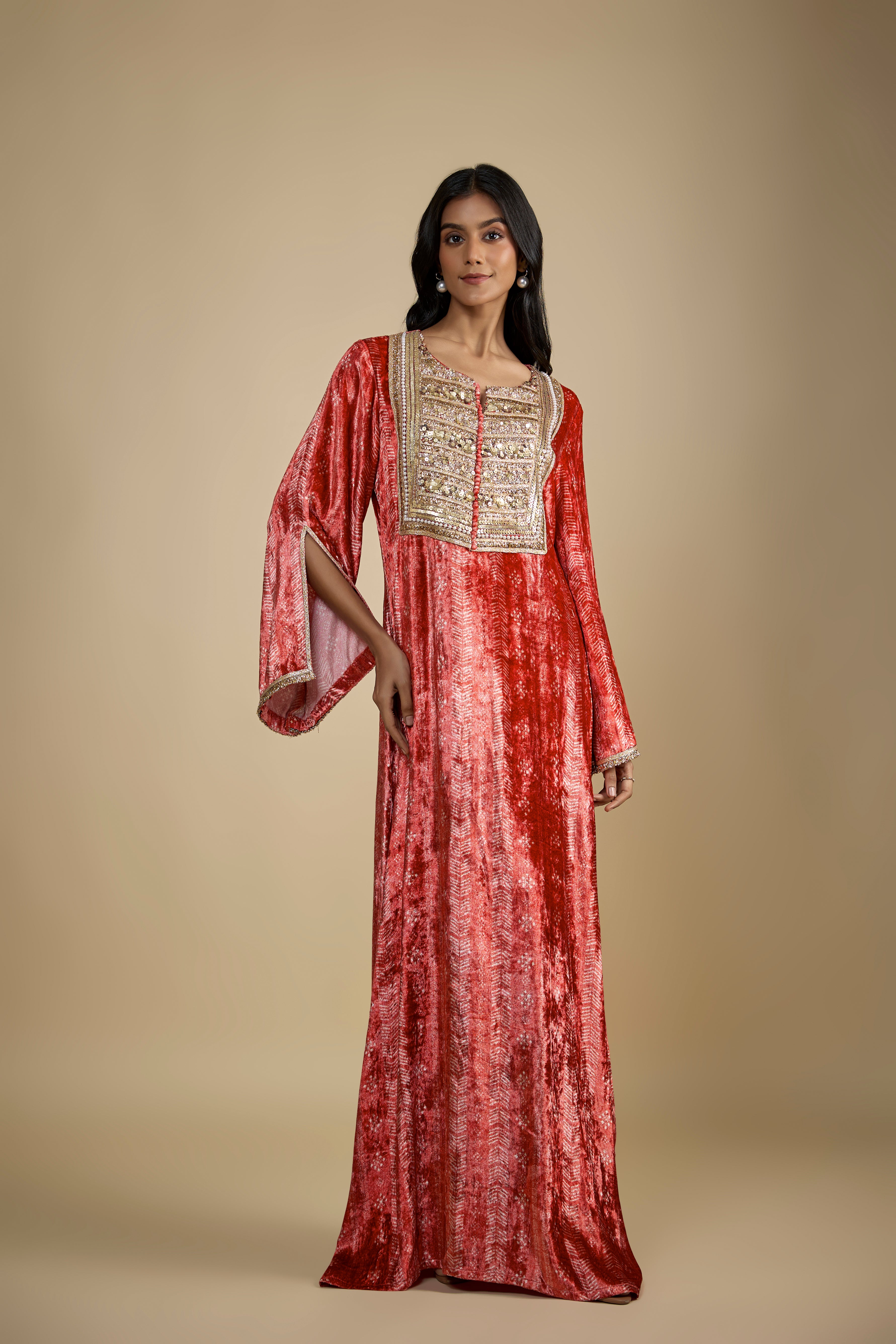 Red Embroidered Velvet Kaftan