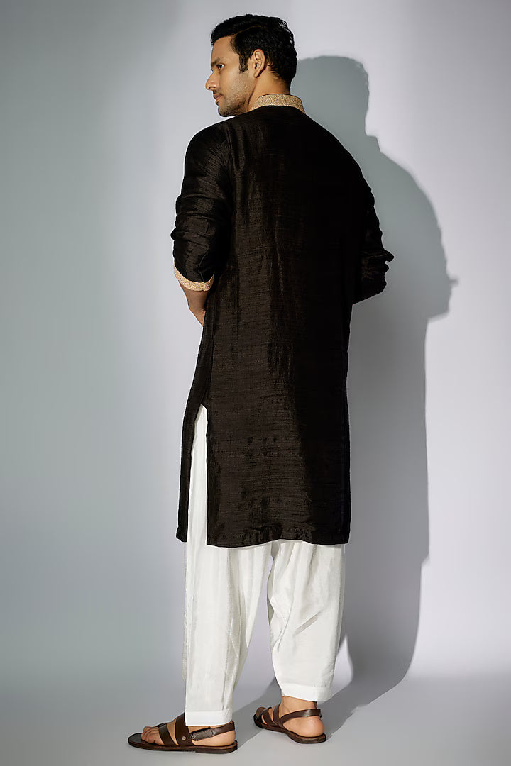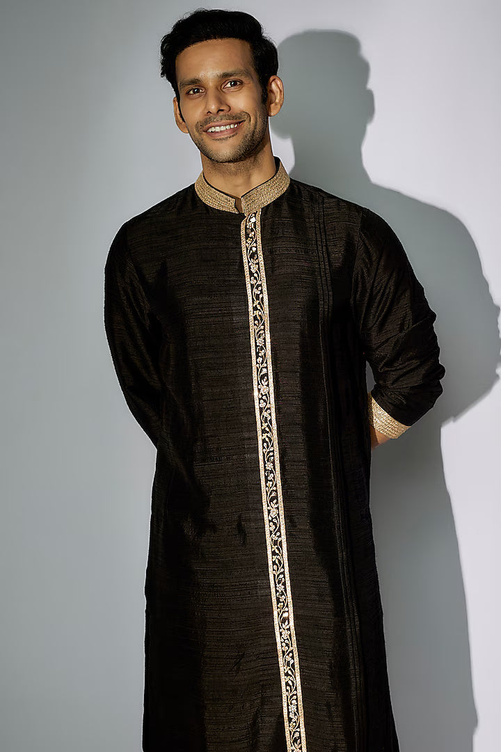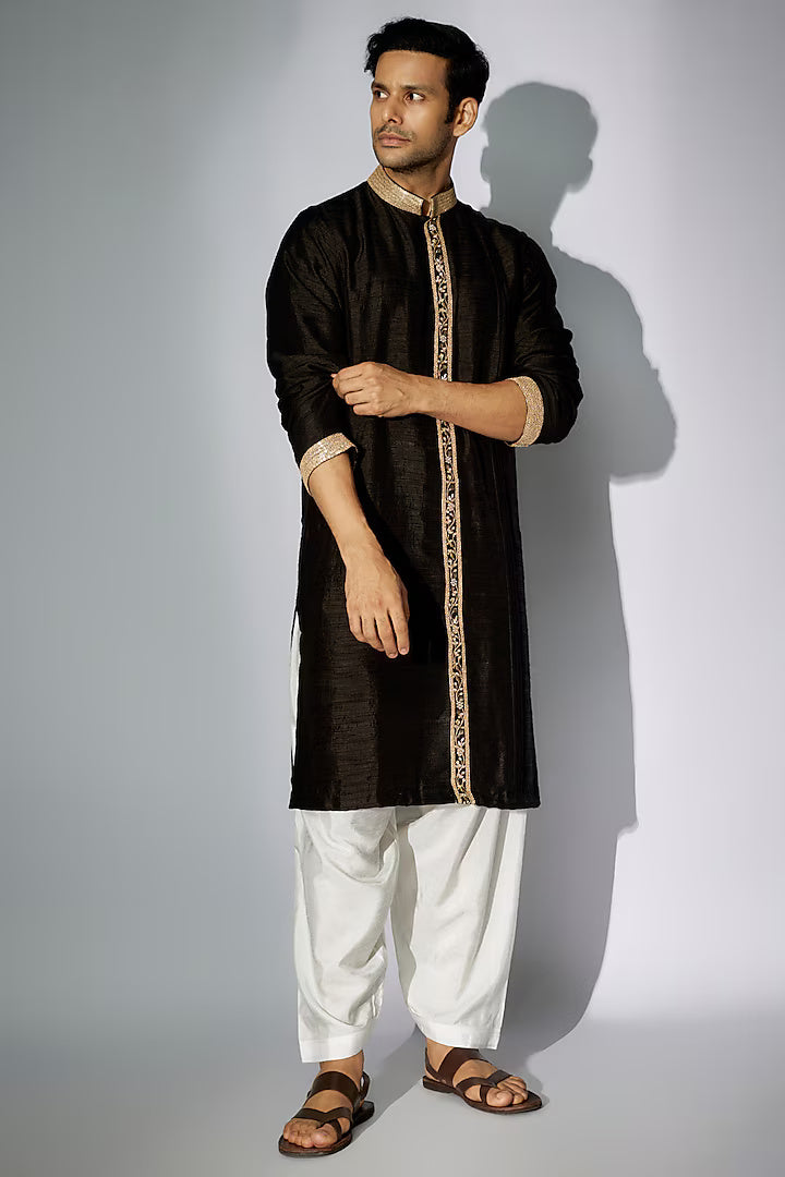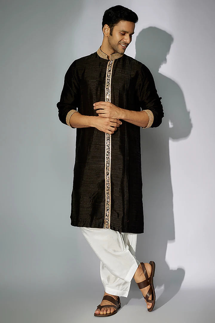 Black Raw Silk Zardosi Embroidered Kurta