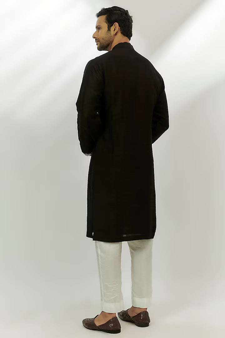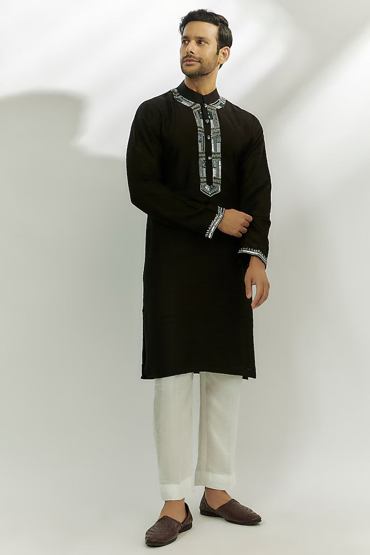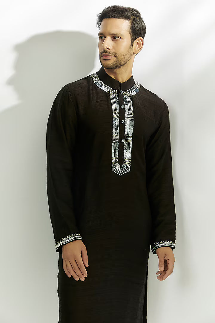 Black Raw Silk Zardosi Embroidered Kurta