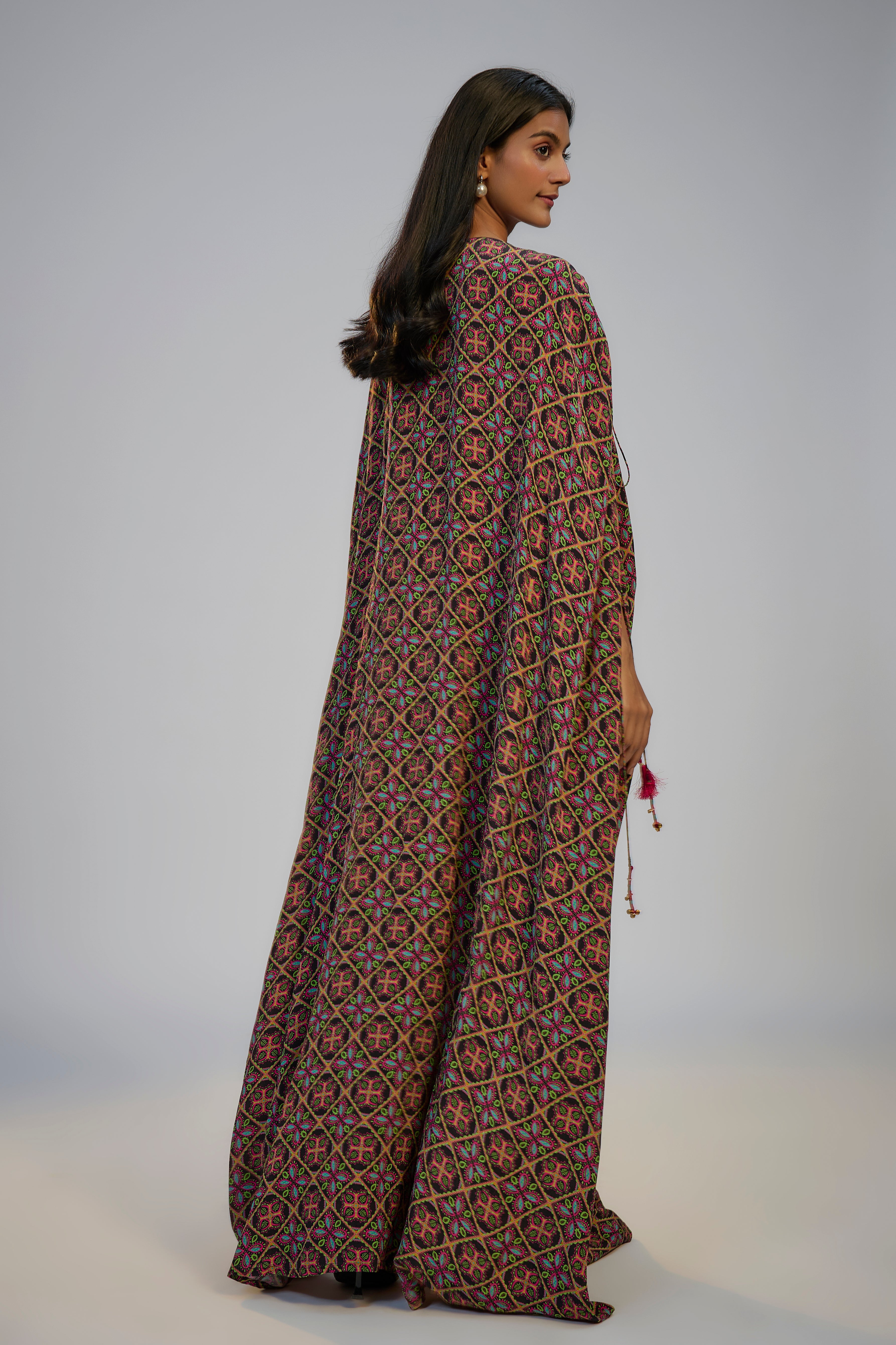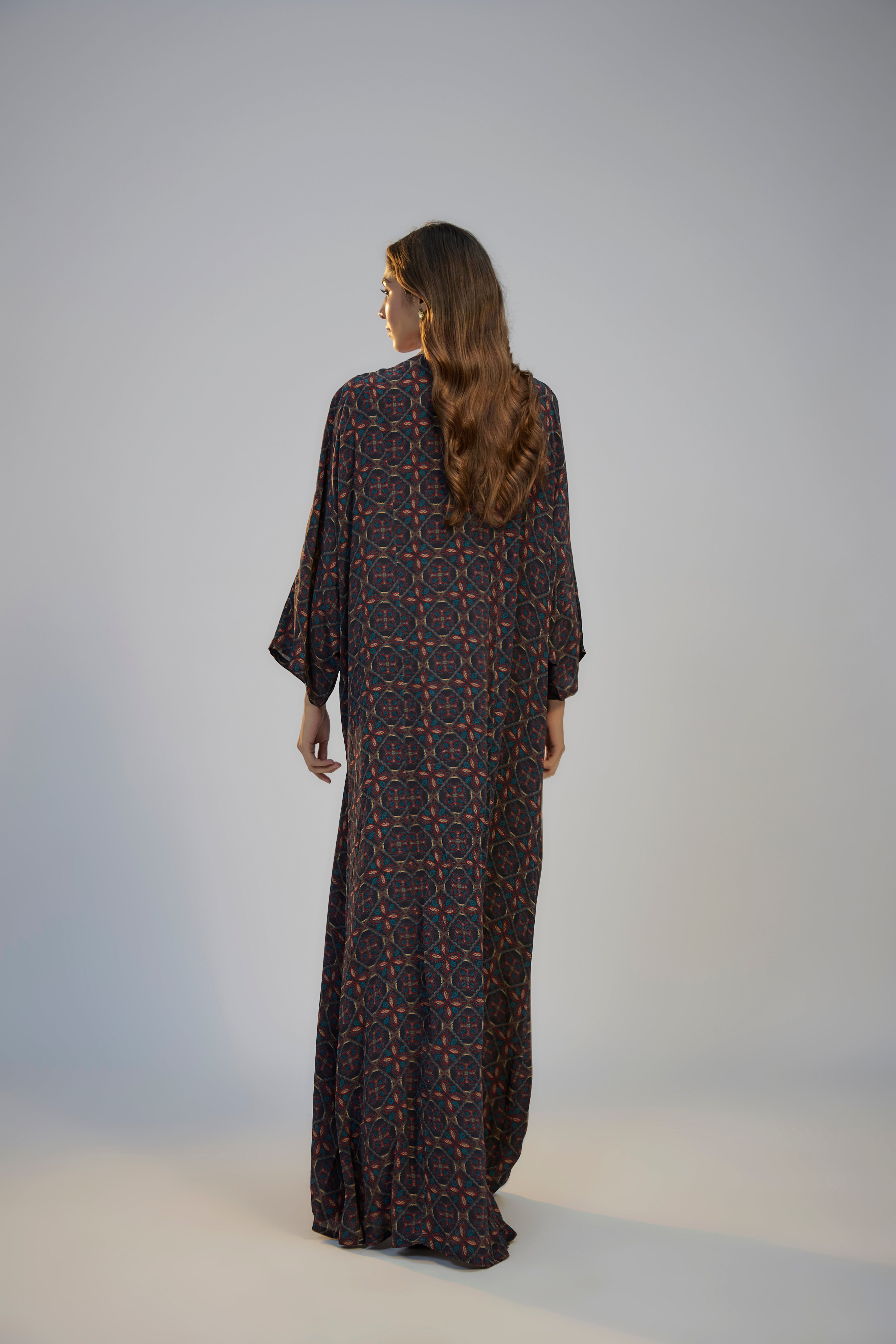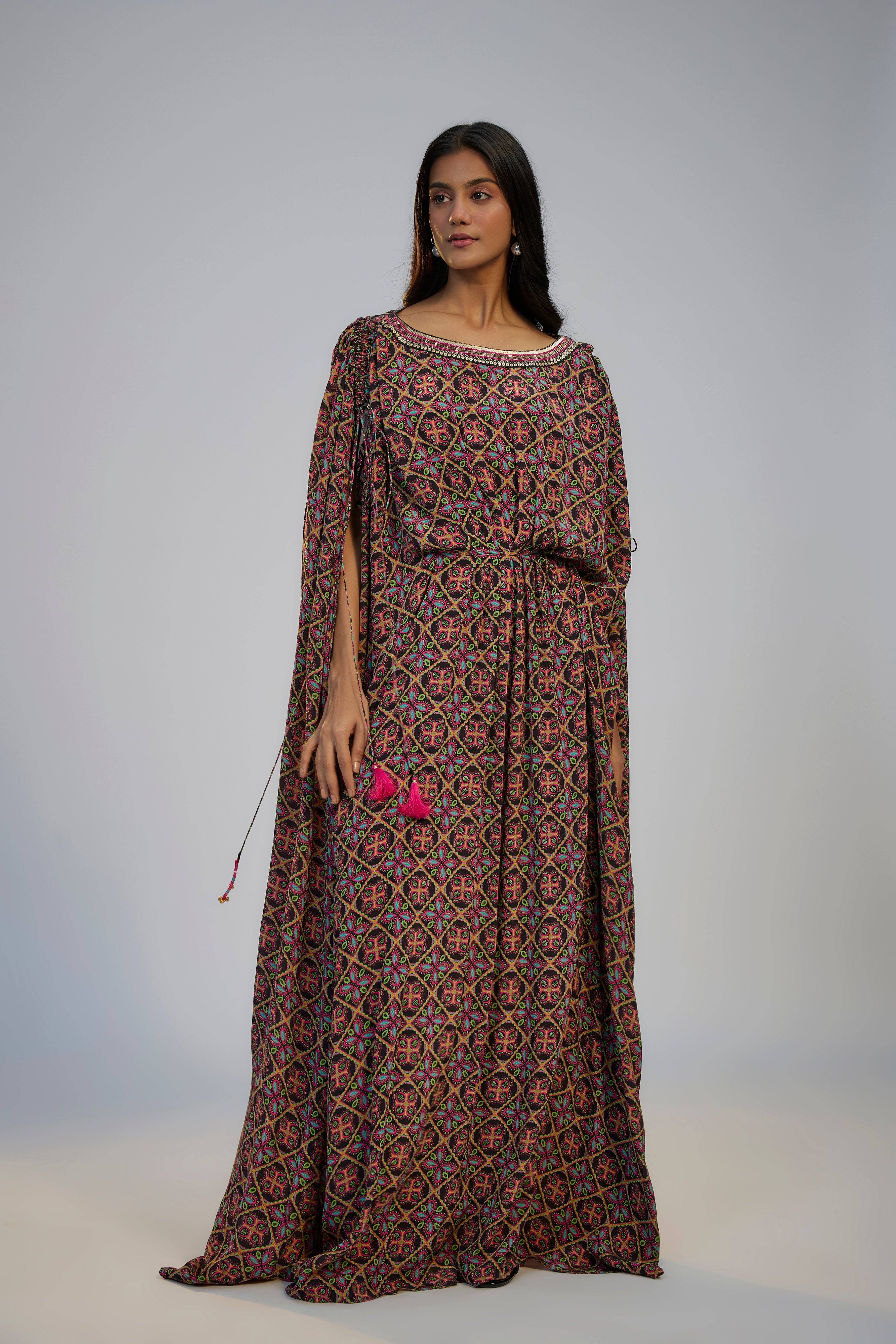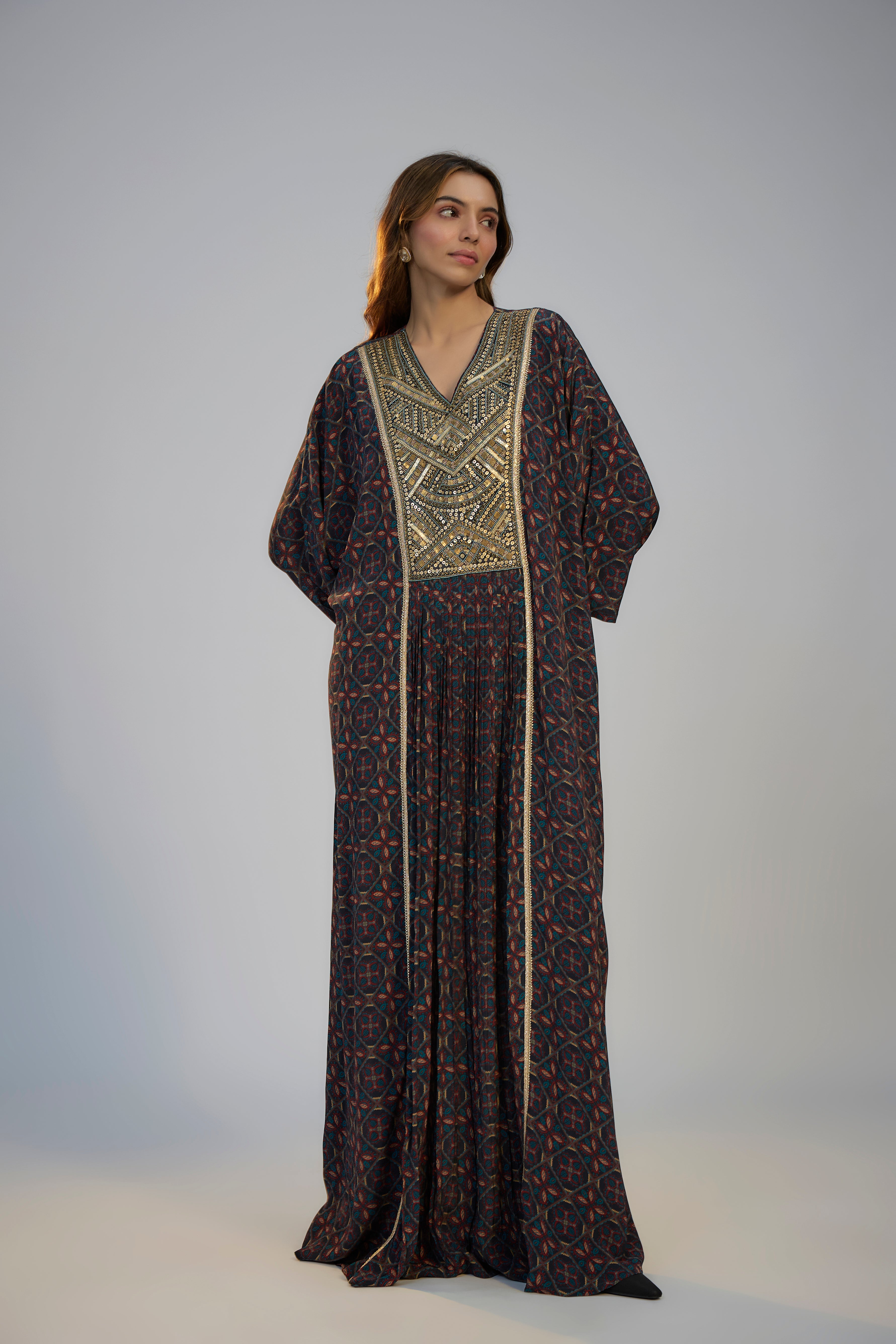 Multicolor Printed and Embroidered Kaftan