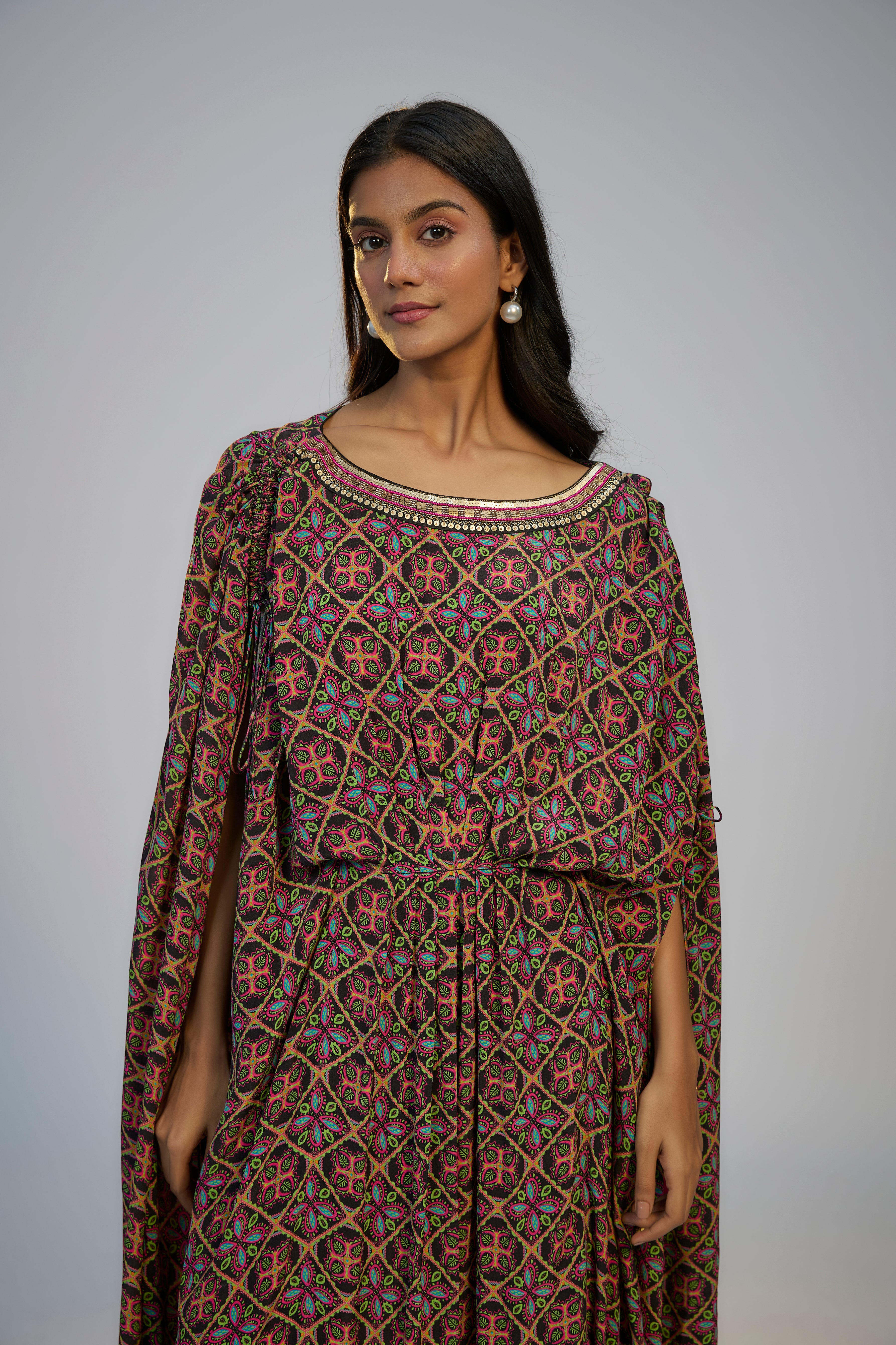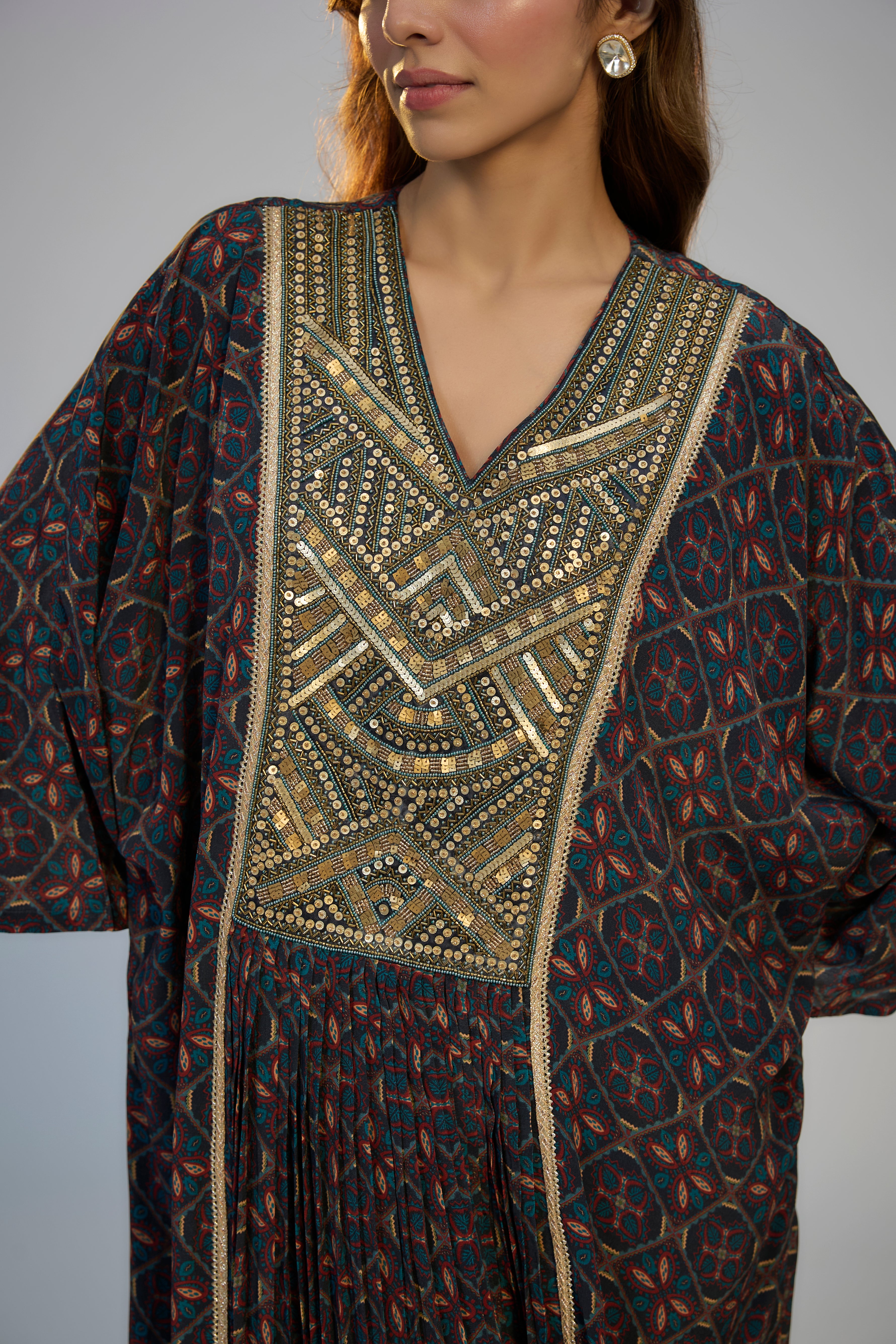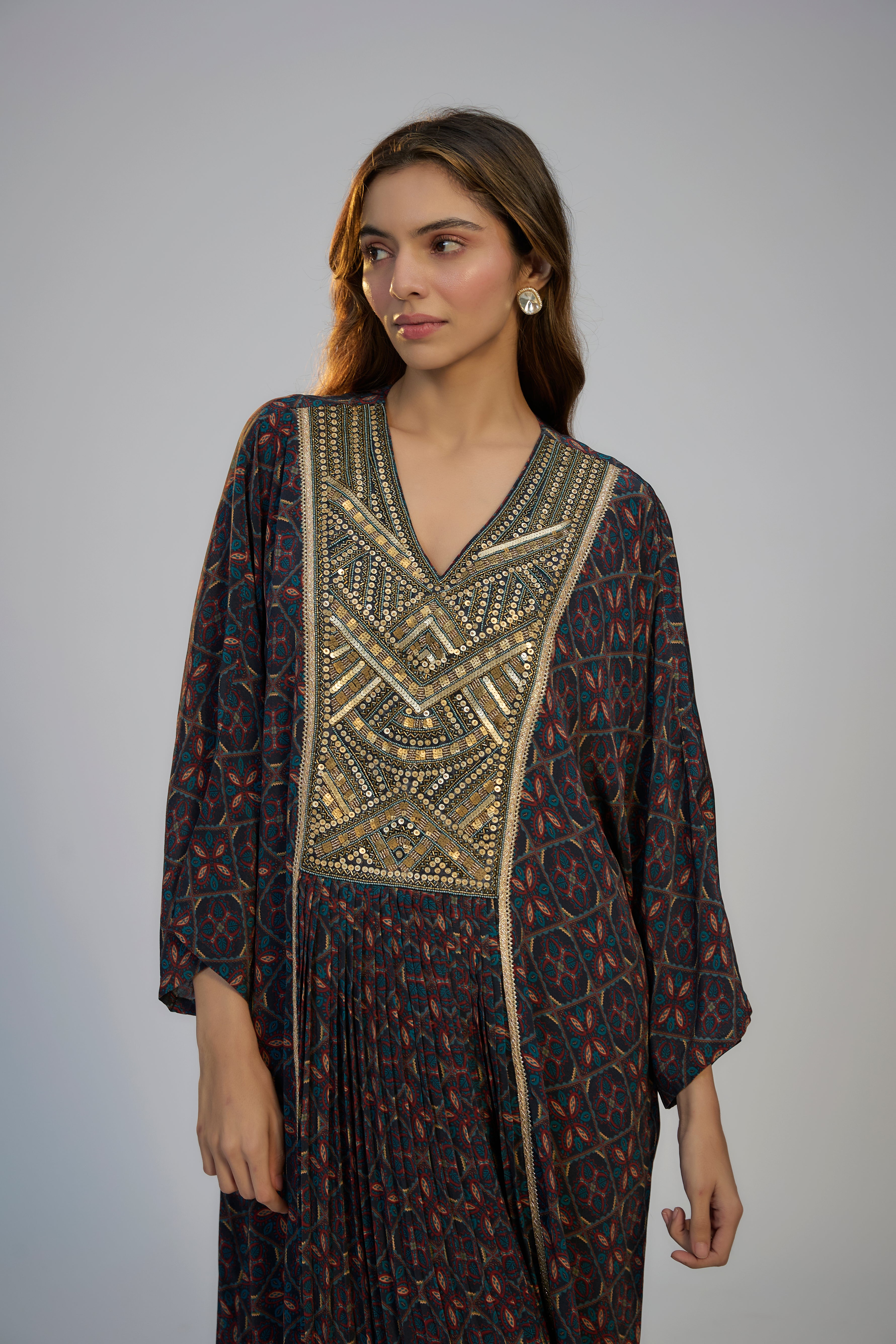 Multicolor Printed and Embroidered Kaftan