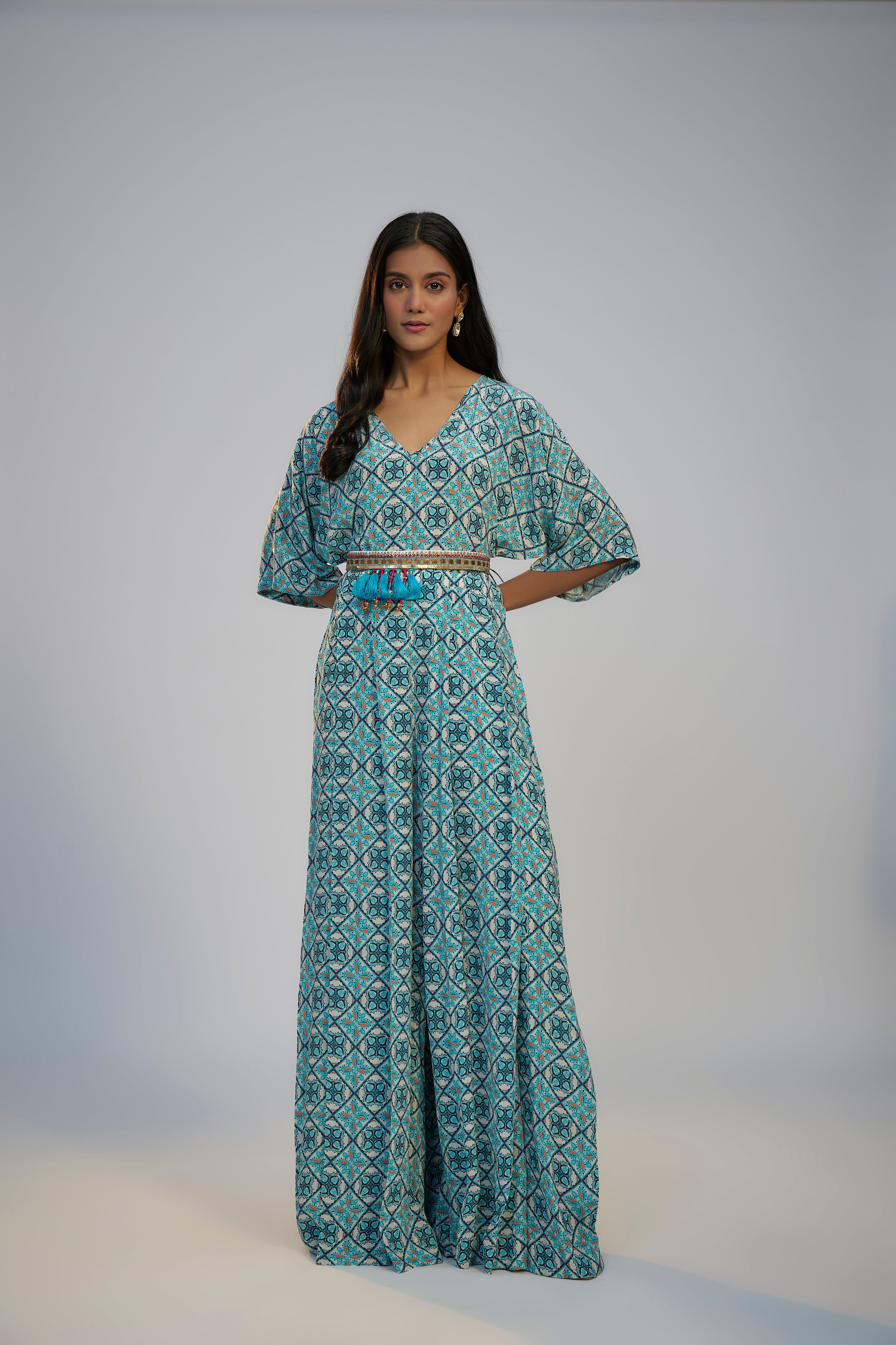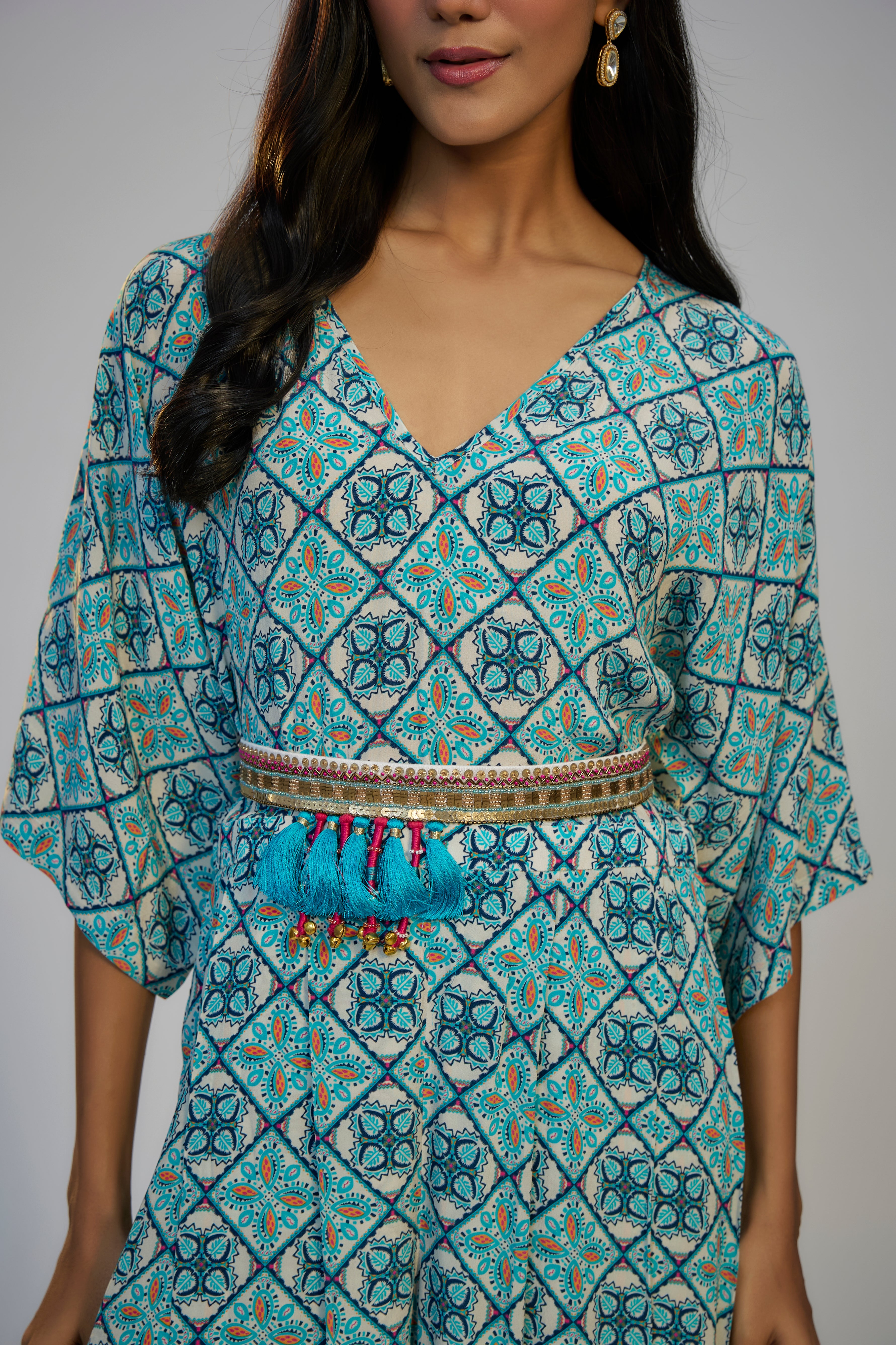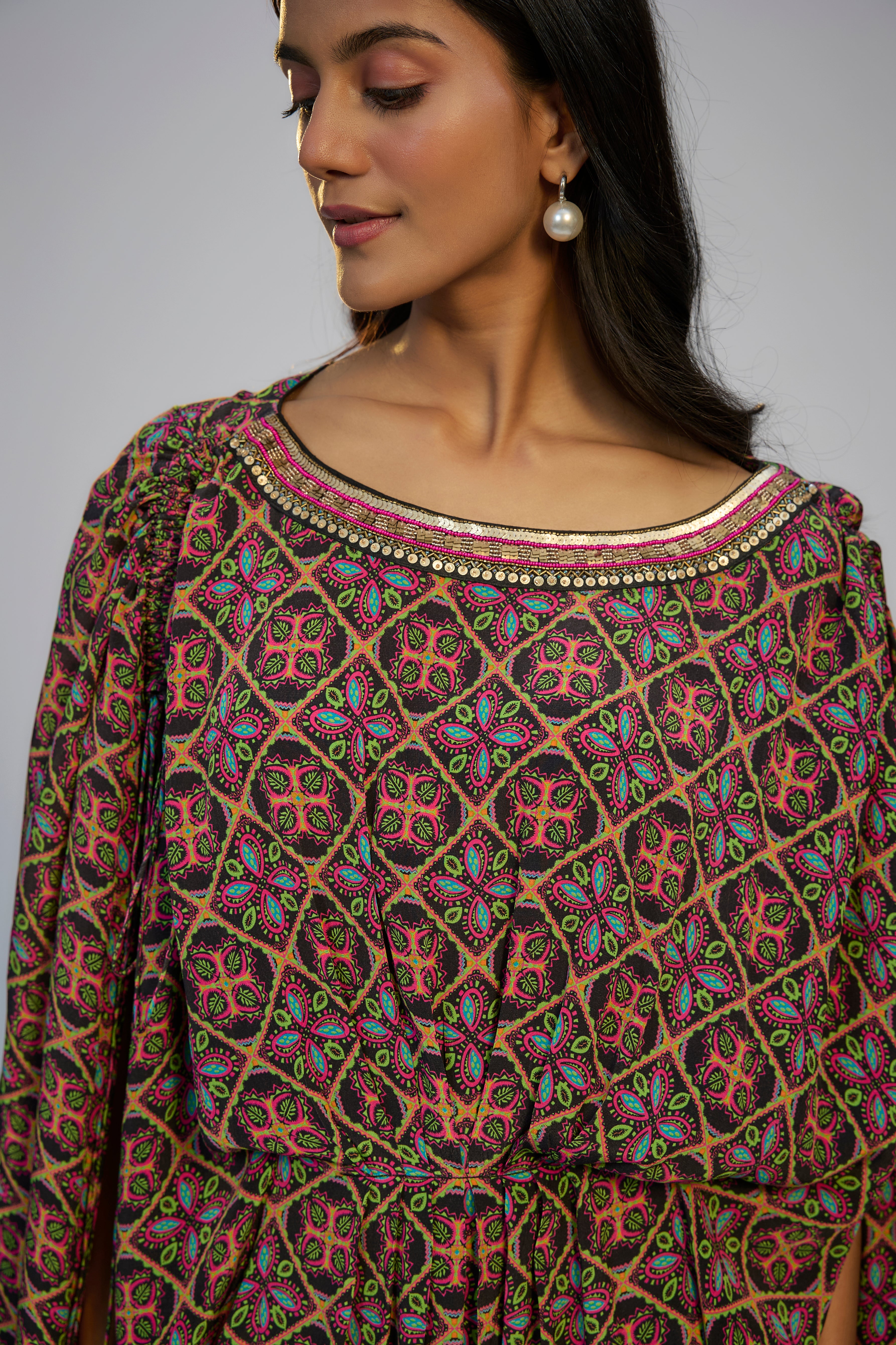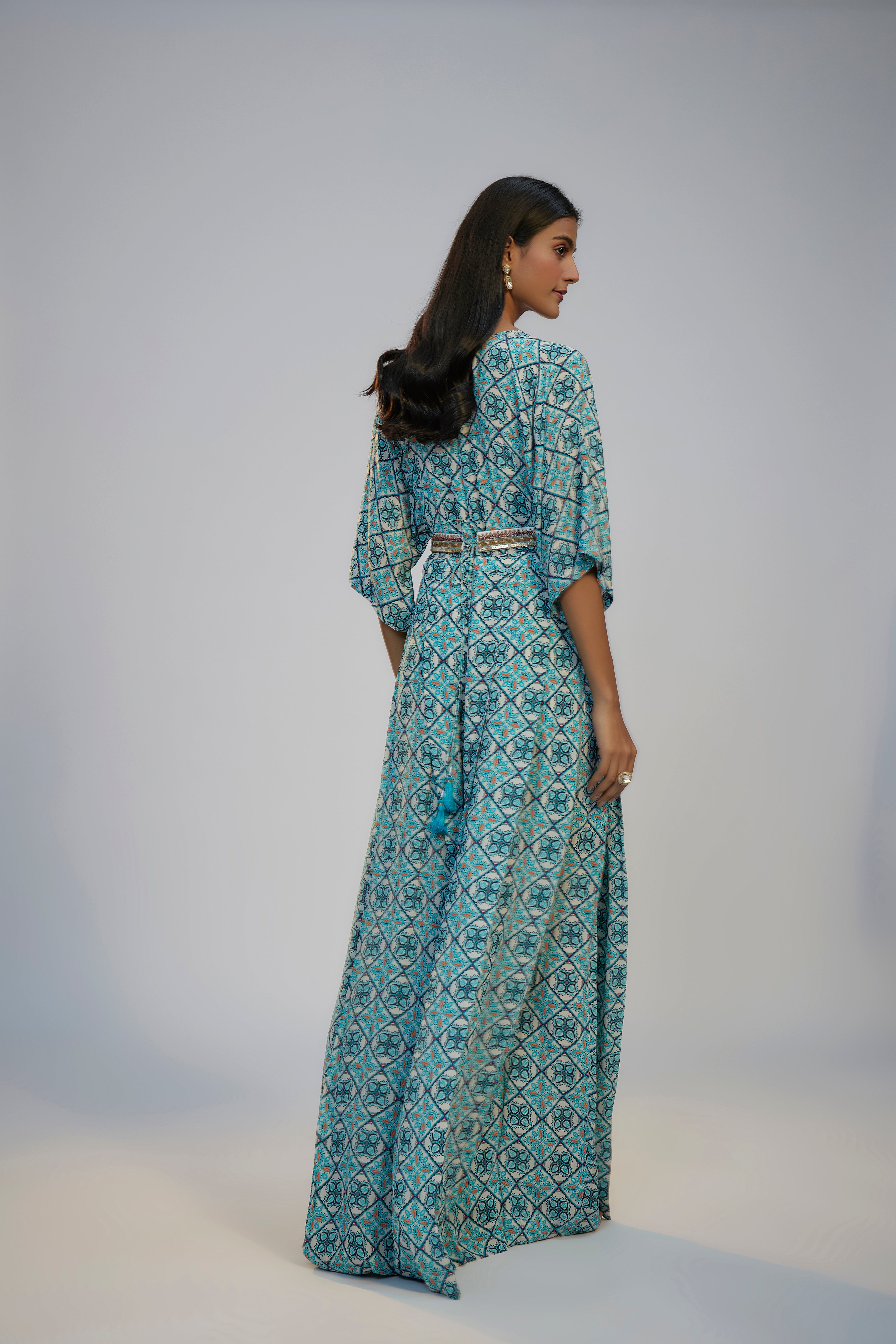 Multicolor Printed and Embroidered Kaftan