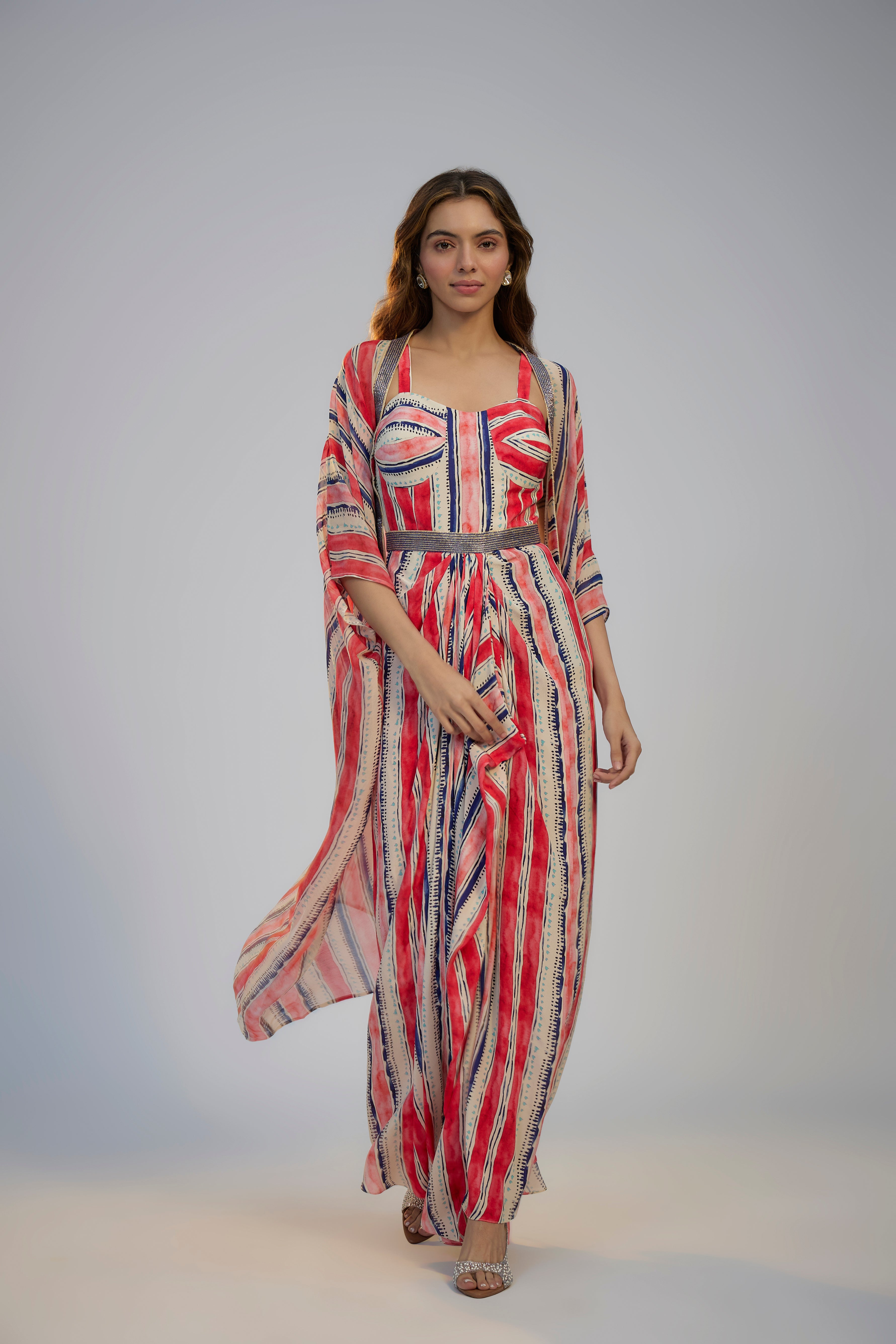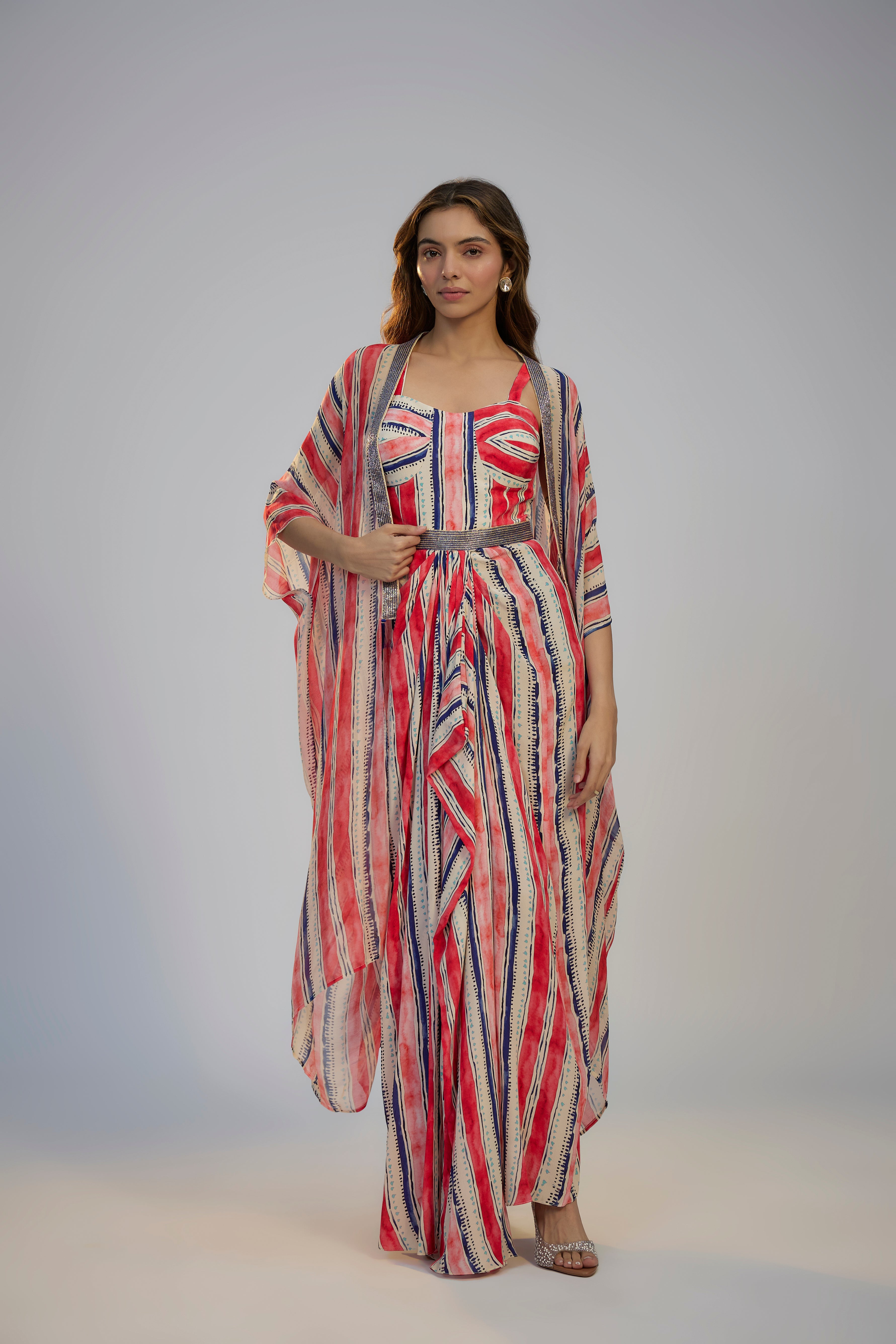 Ivory Stripes Printed Cape Set