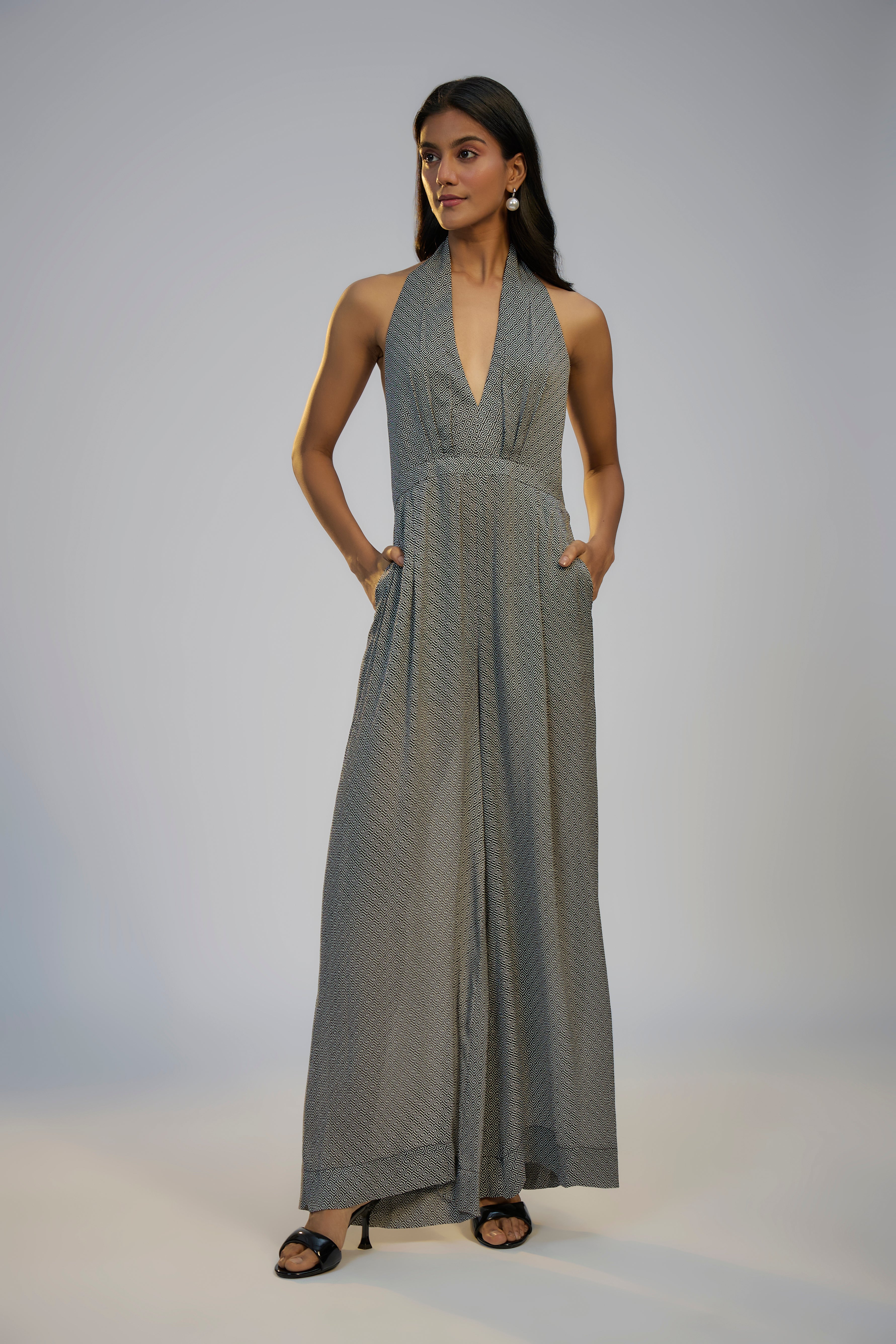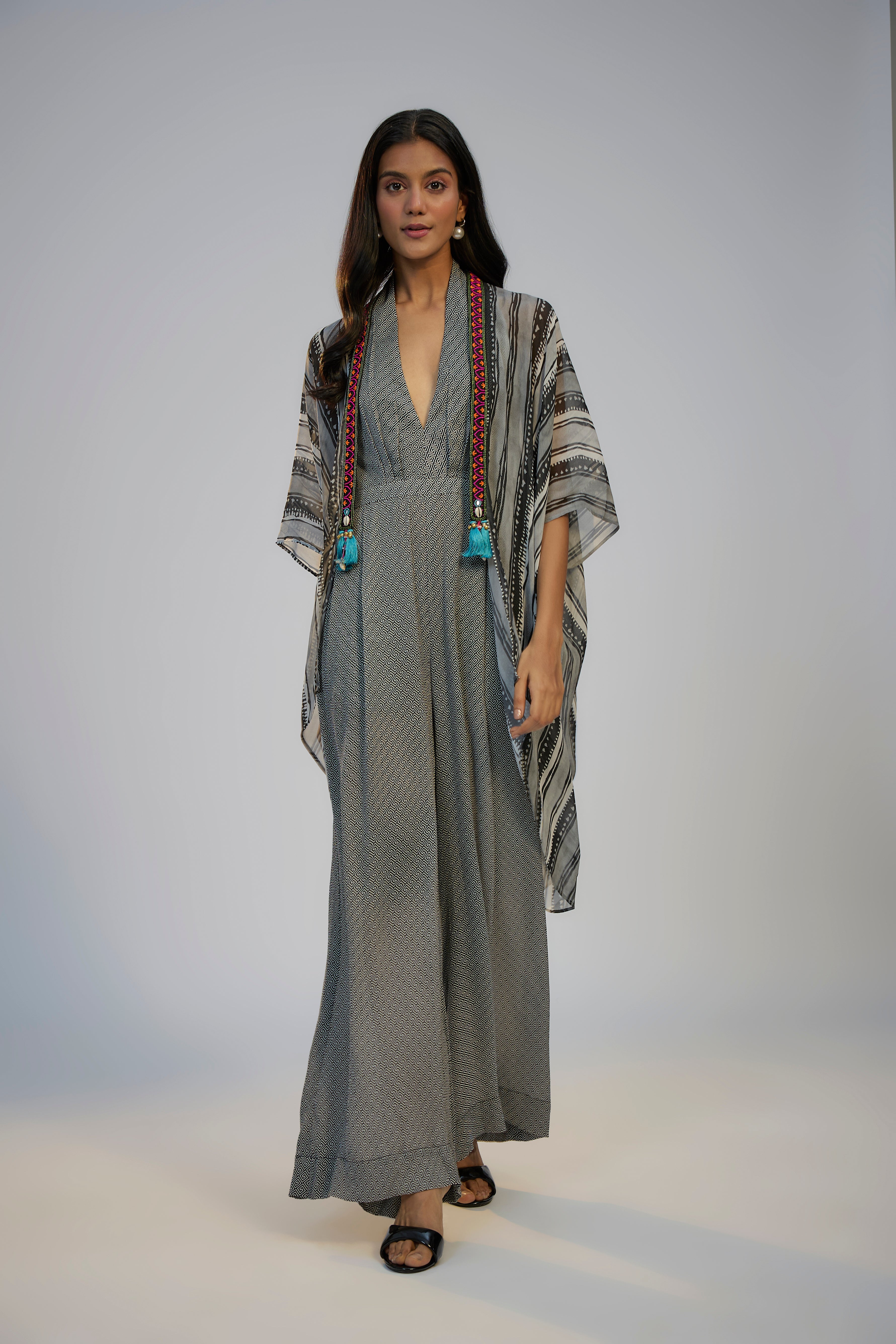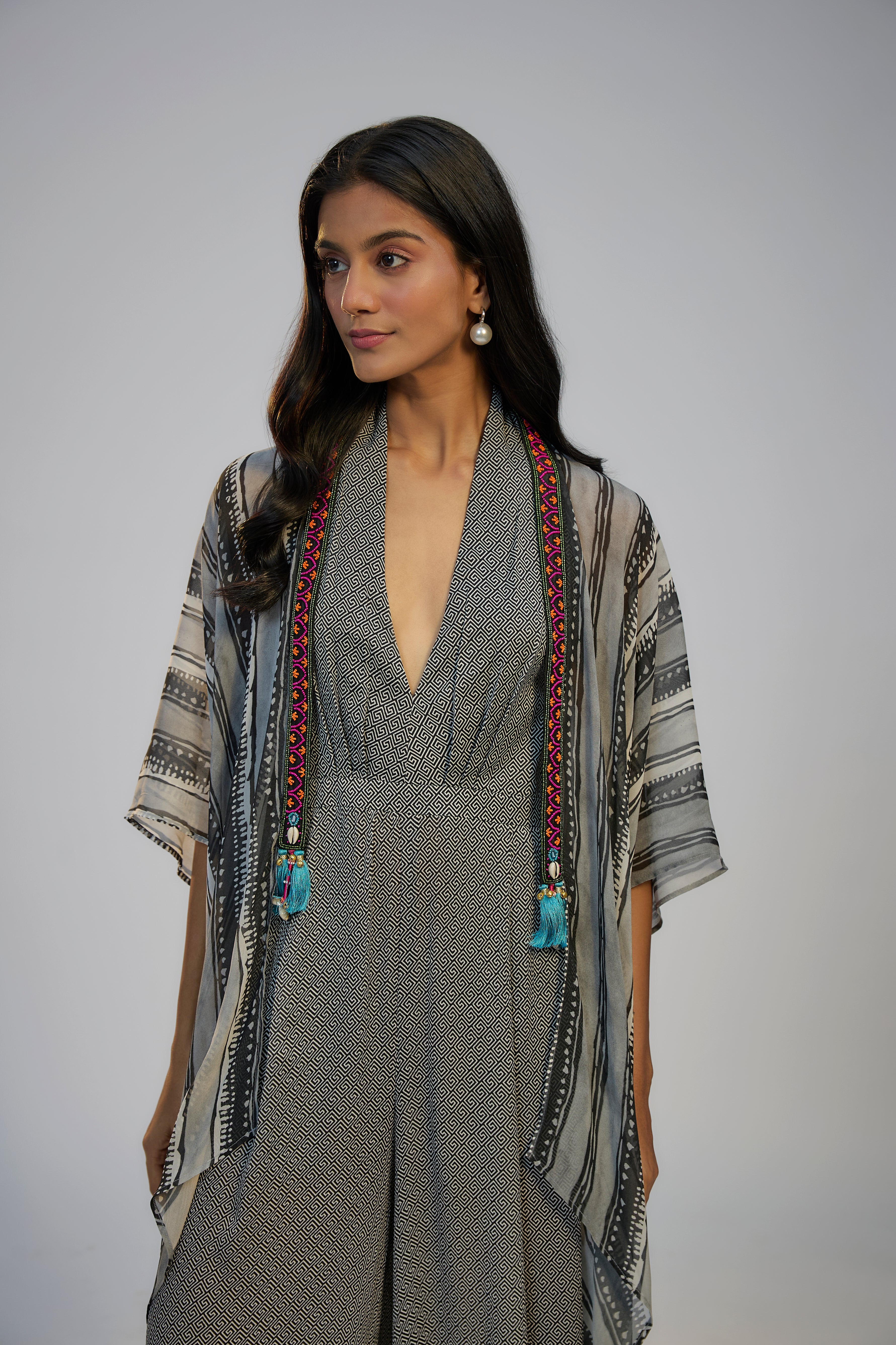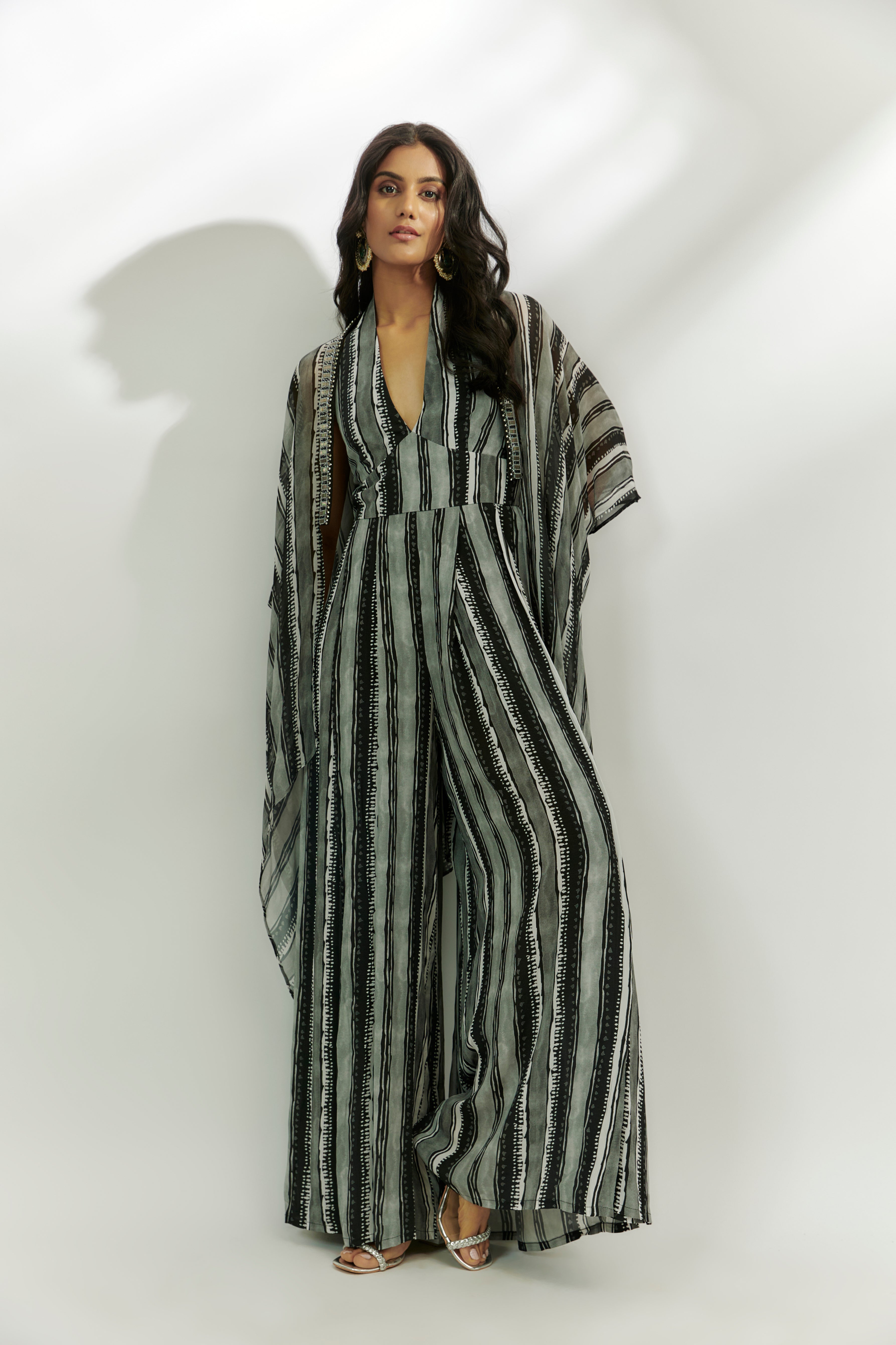 Nidhi Black Crepe Digital Printed Jumpsuit With Cape