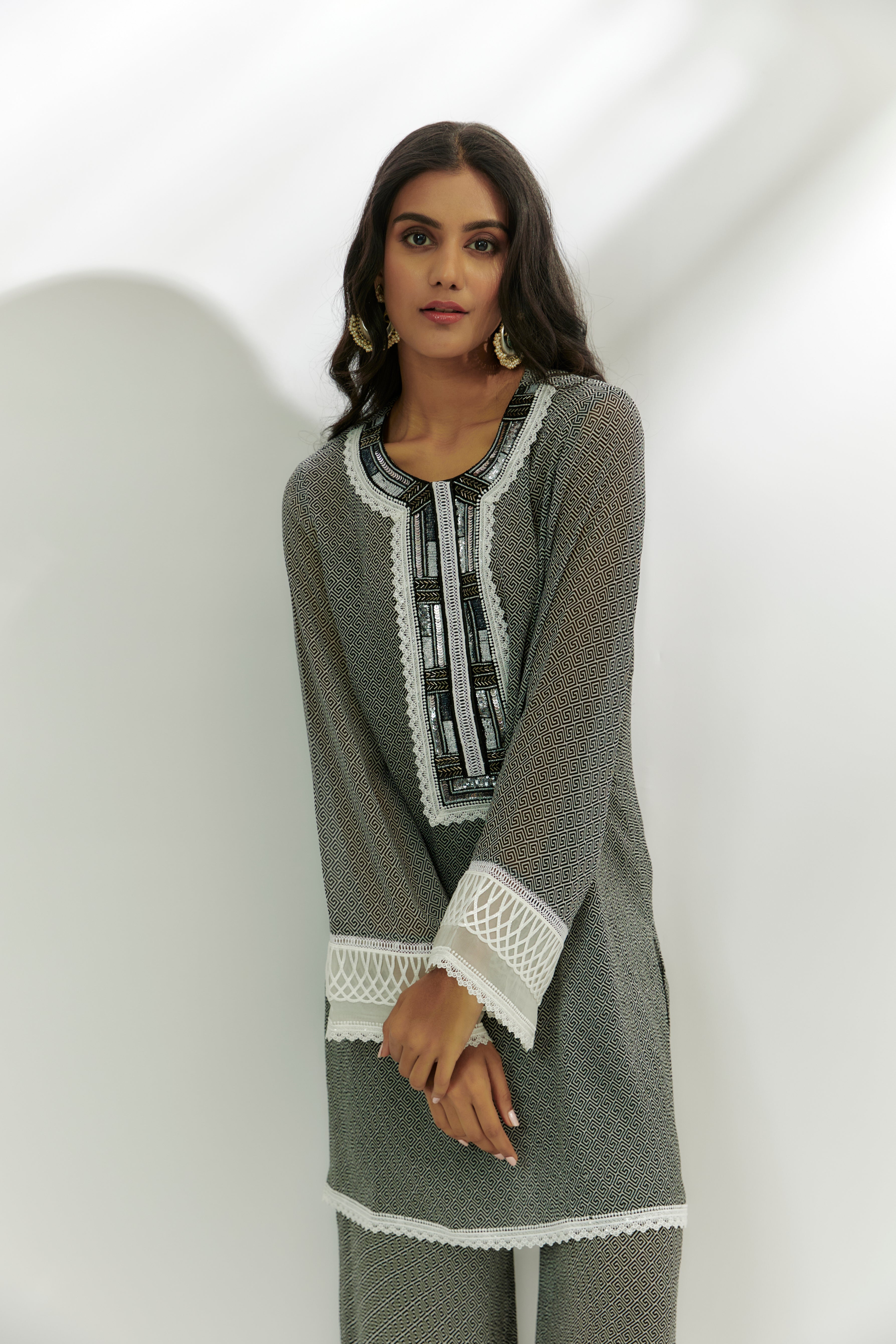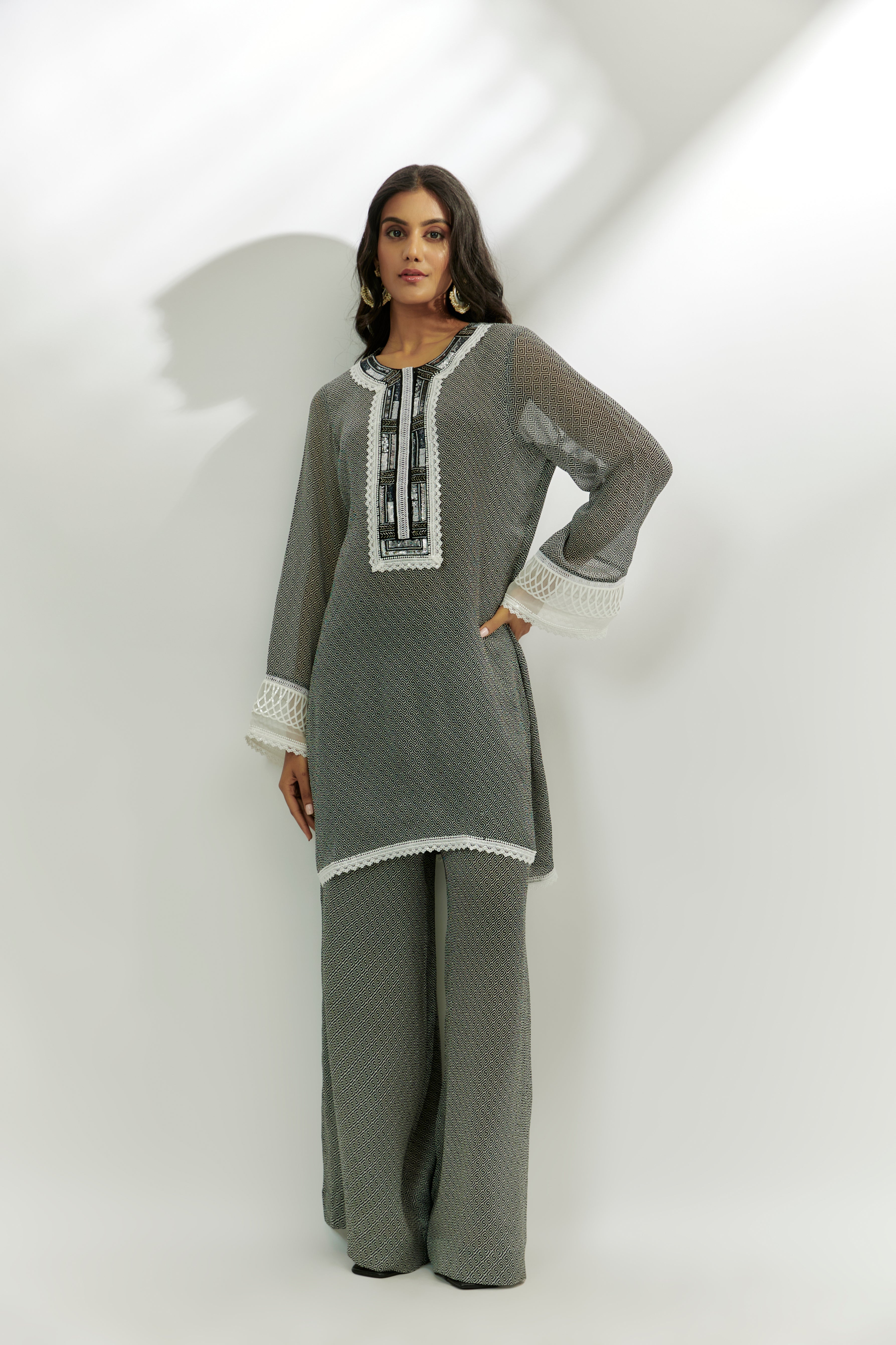 Zohra Black Cotton Crush Digital Printed Short Kurta Set