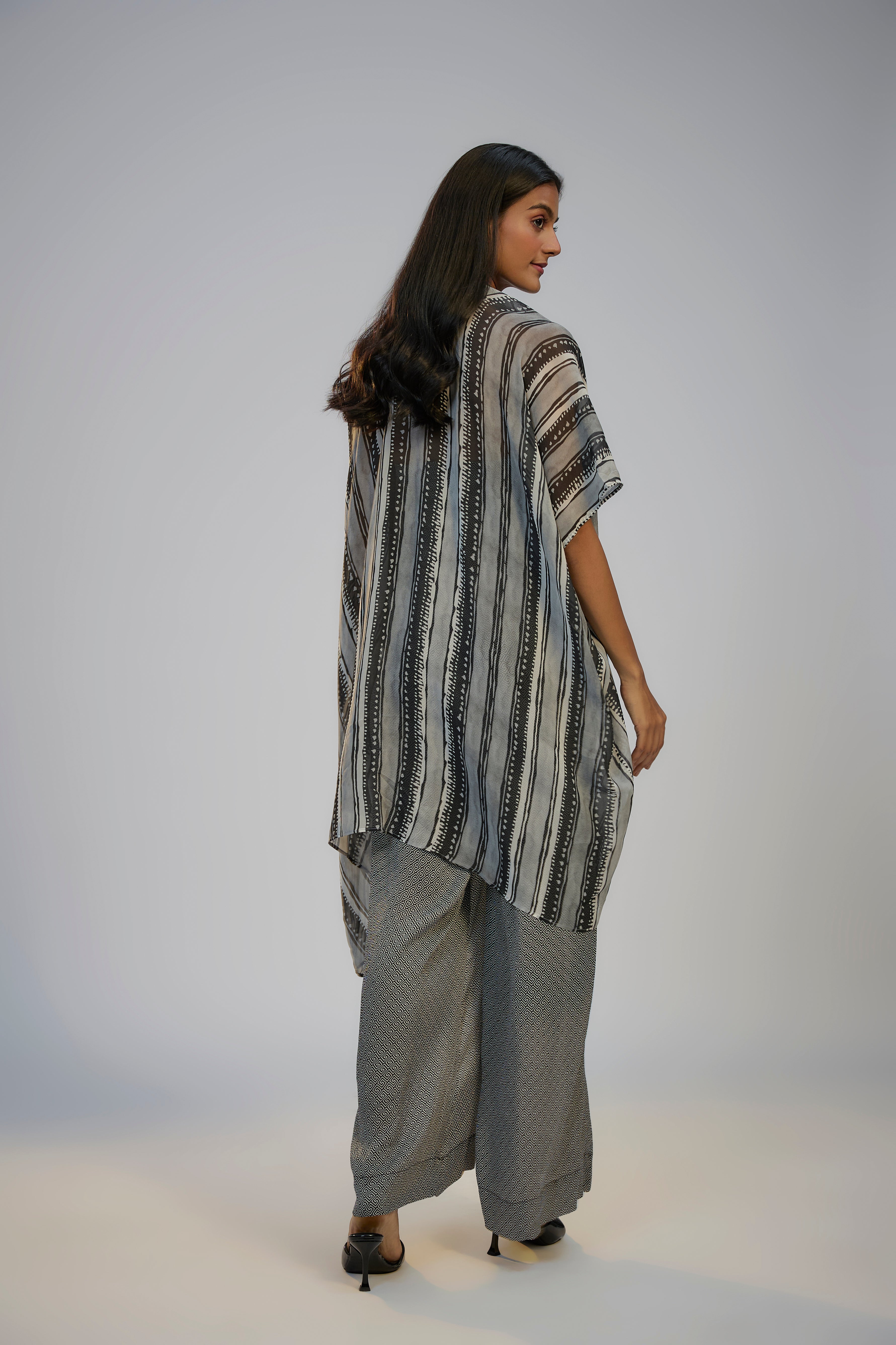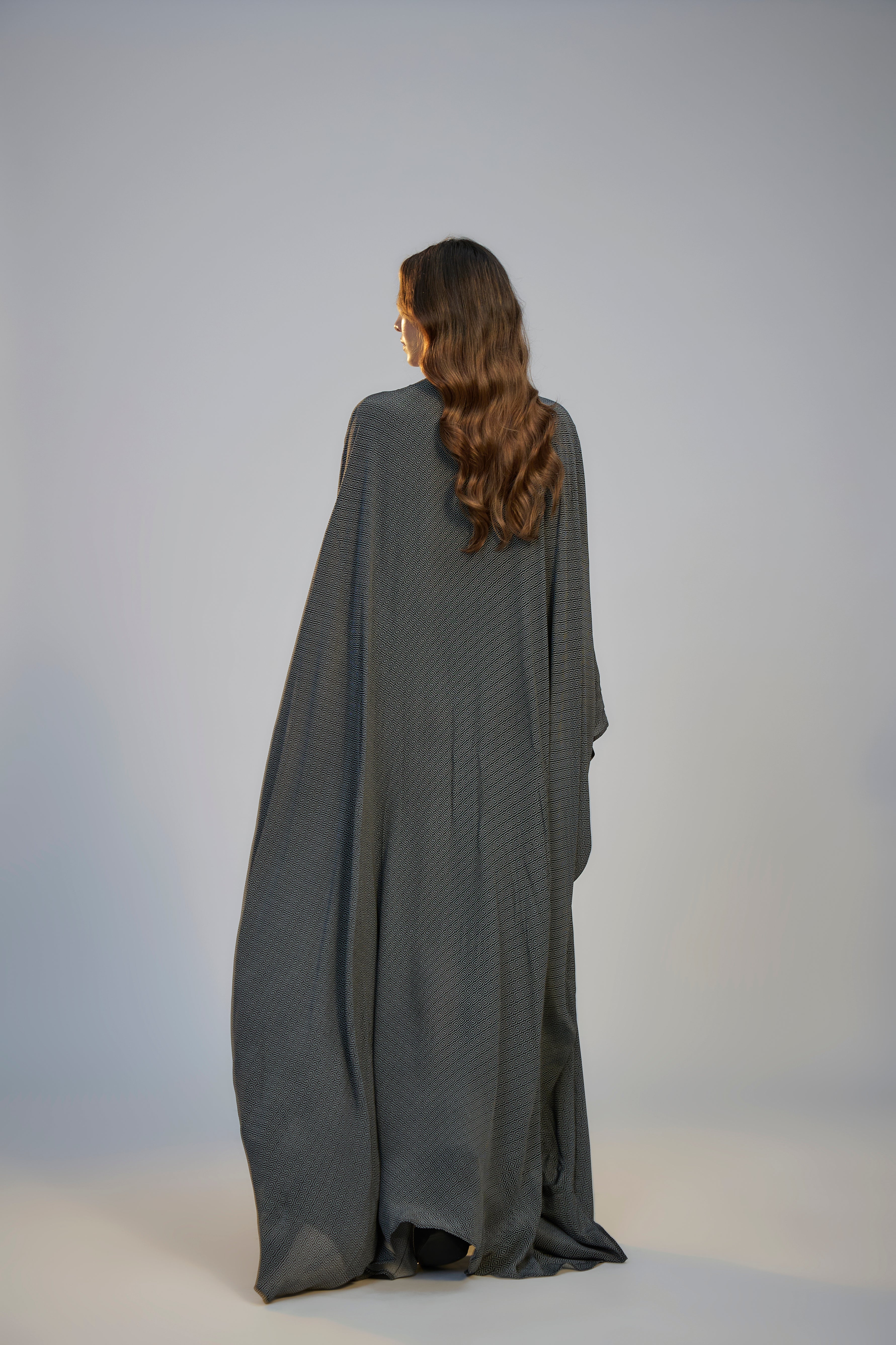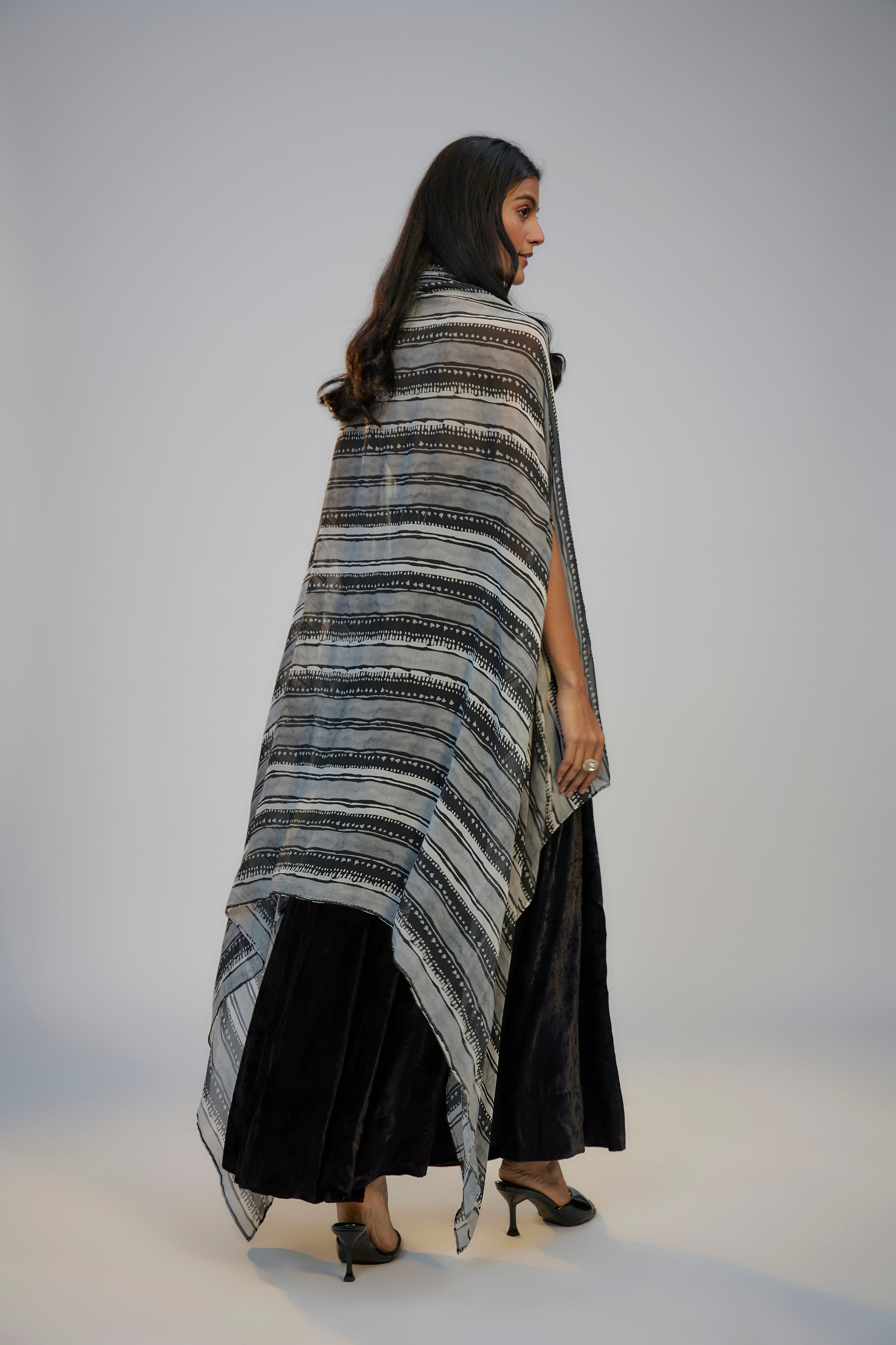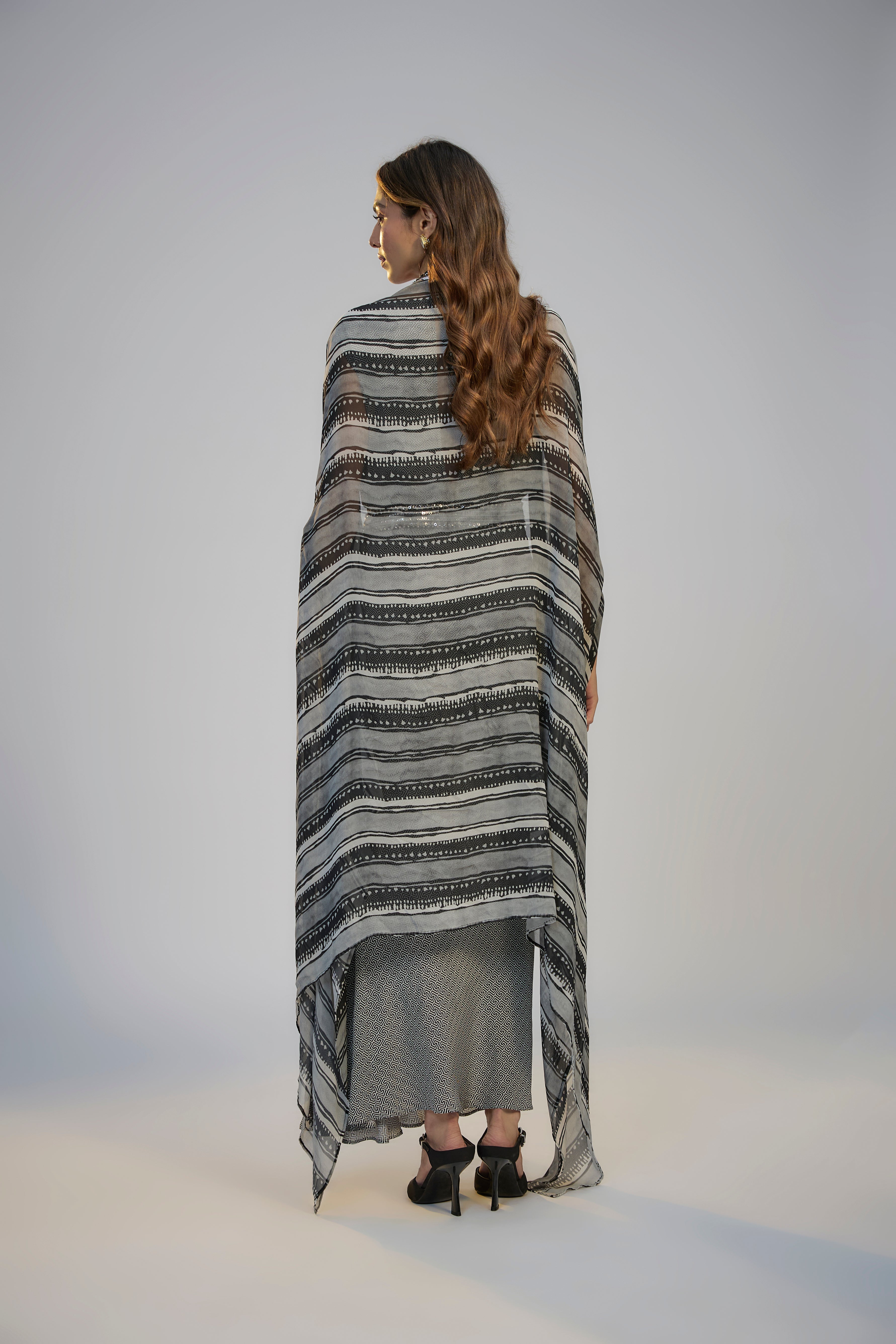 Black- Blue Stripes Printed and Embroidered Kaftan