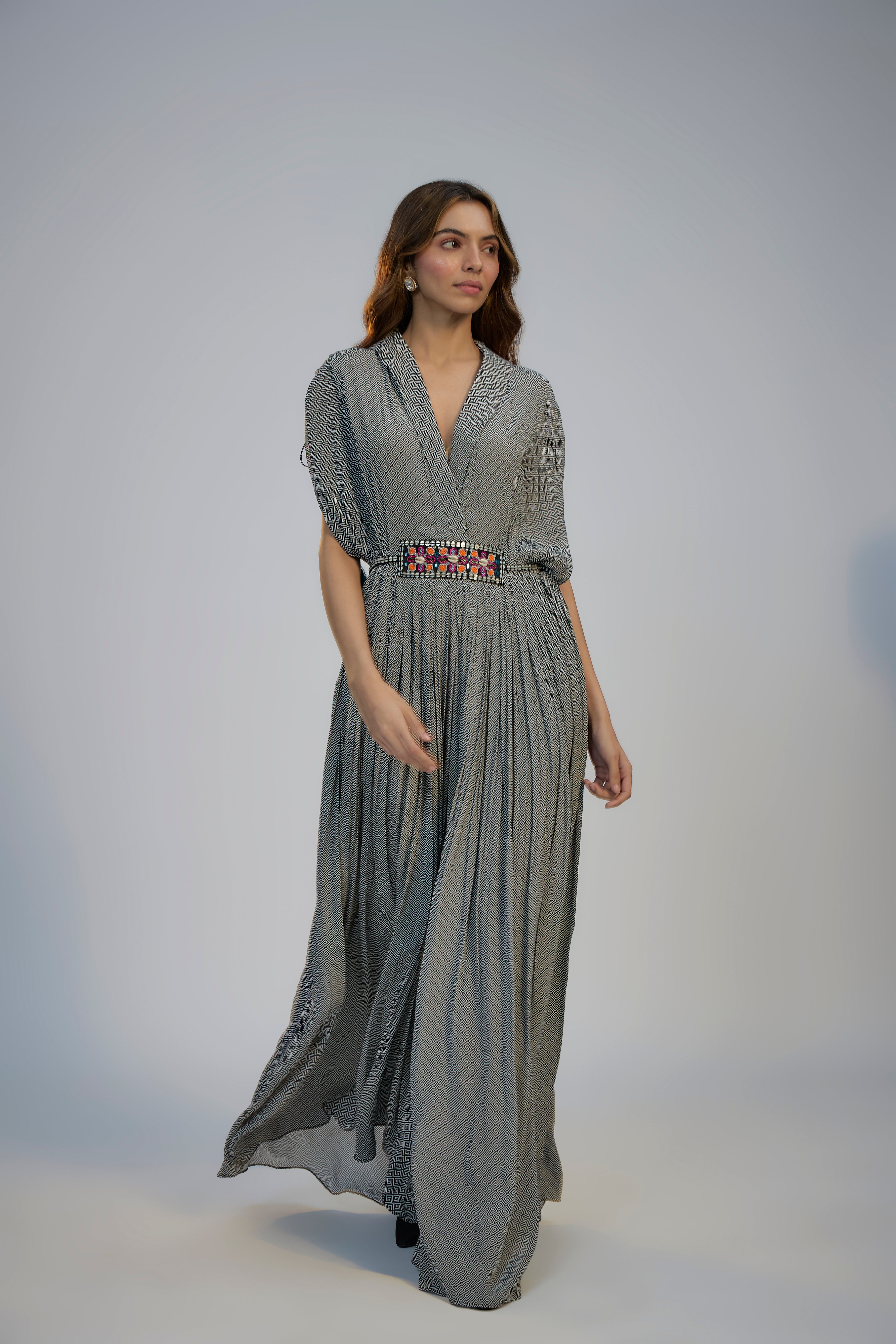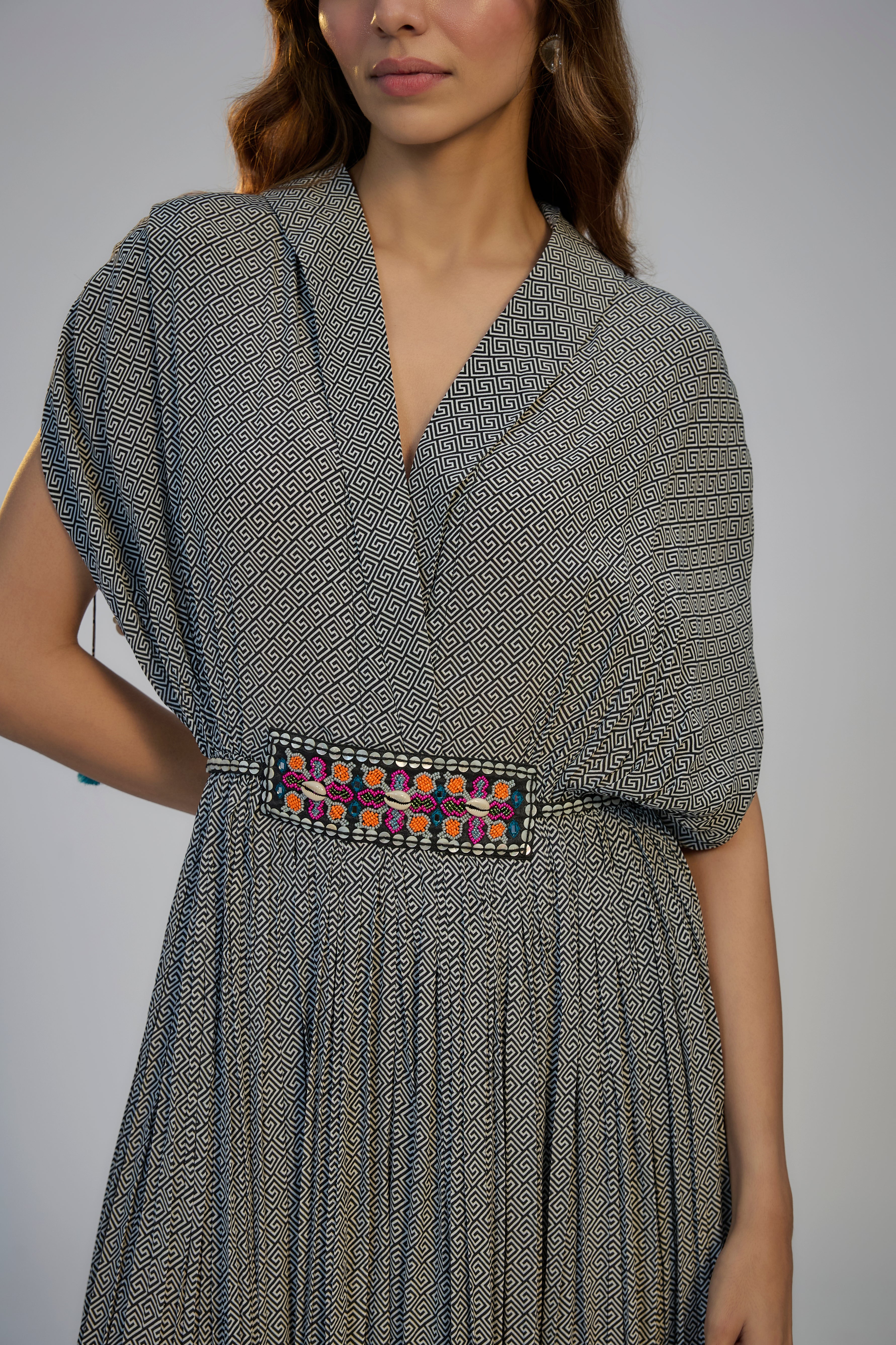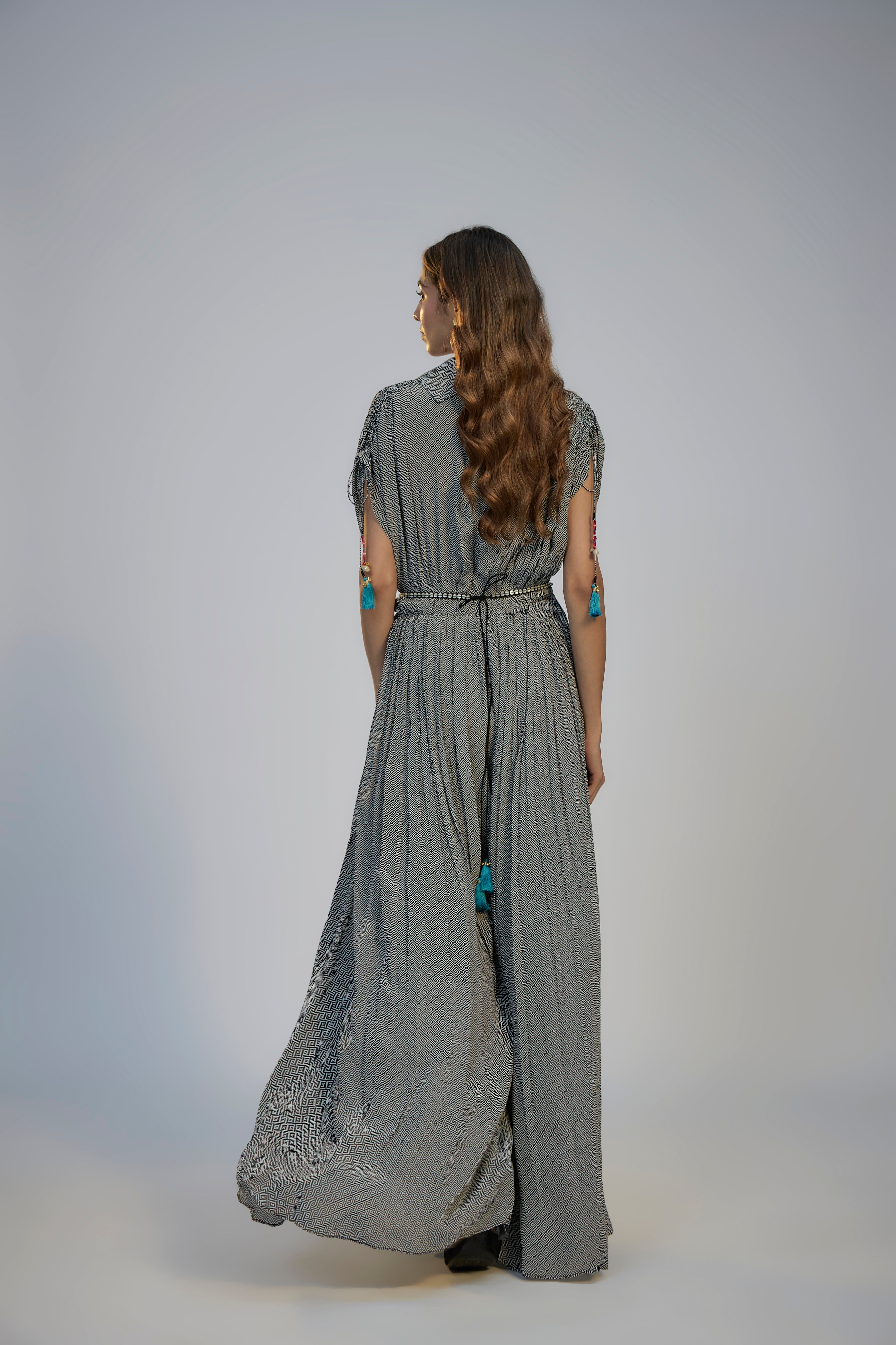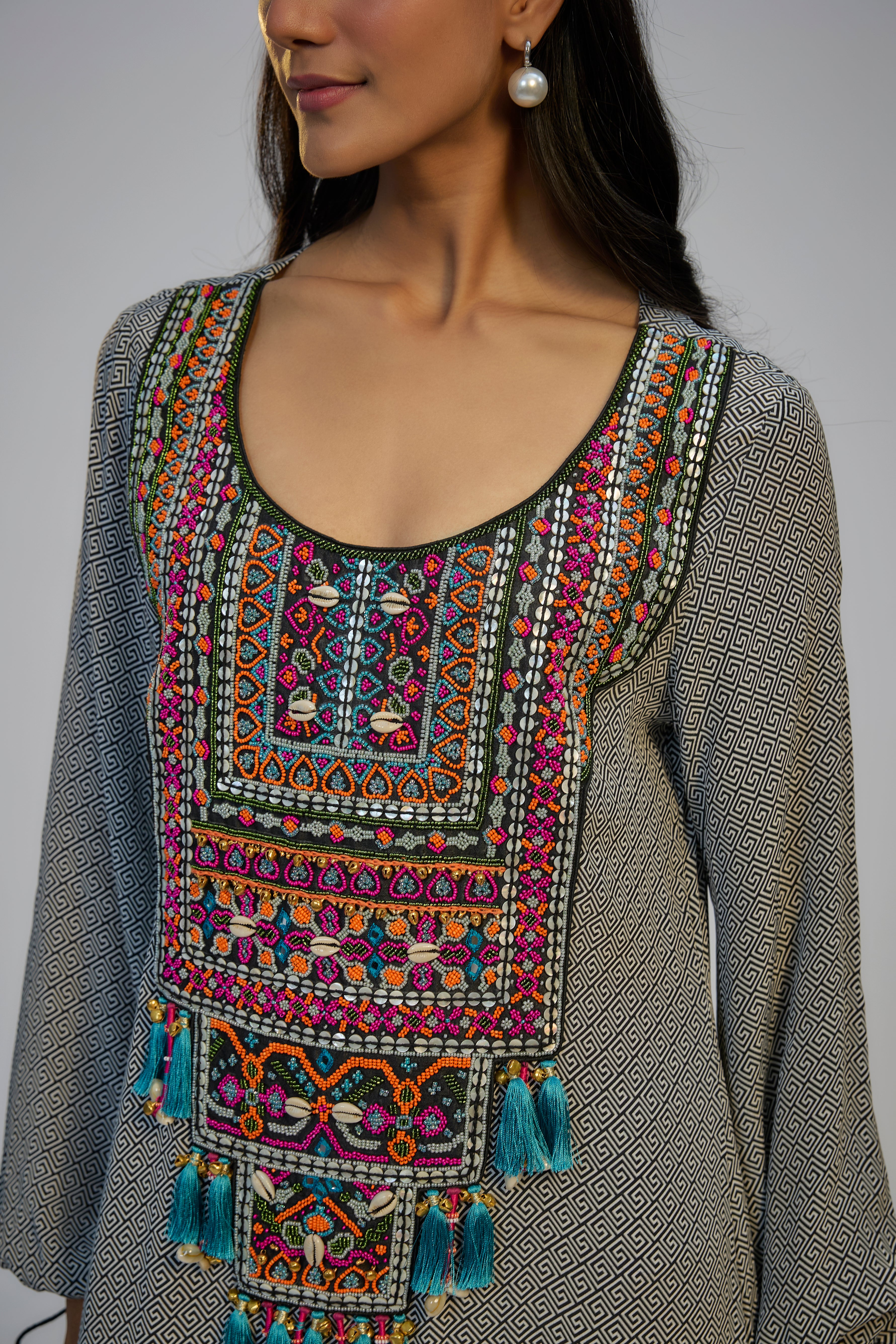 Black- Blue Stripes Printed and Embroidered Kaftan