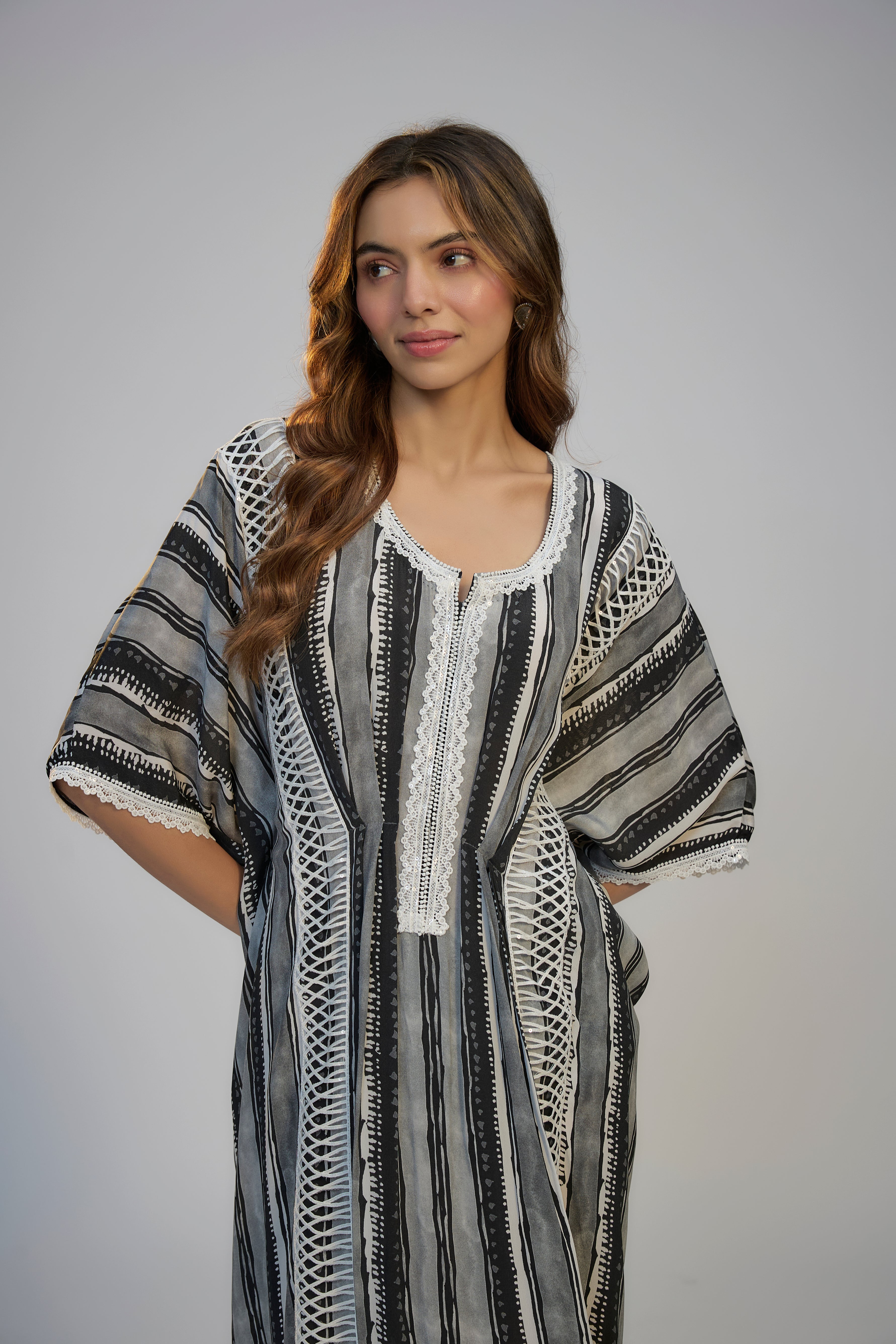 Kritika Black Cotton Crush Stripe Digital Printed Kaftan