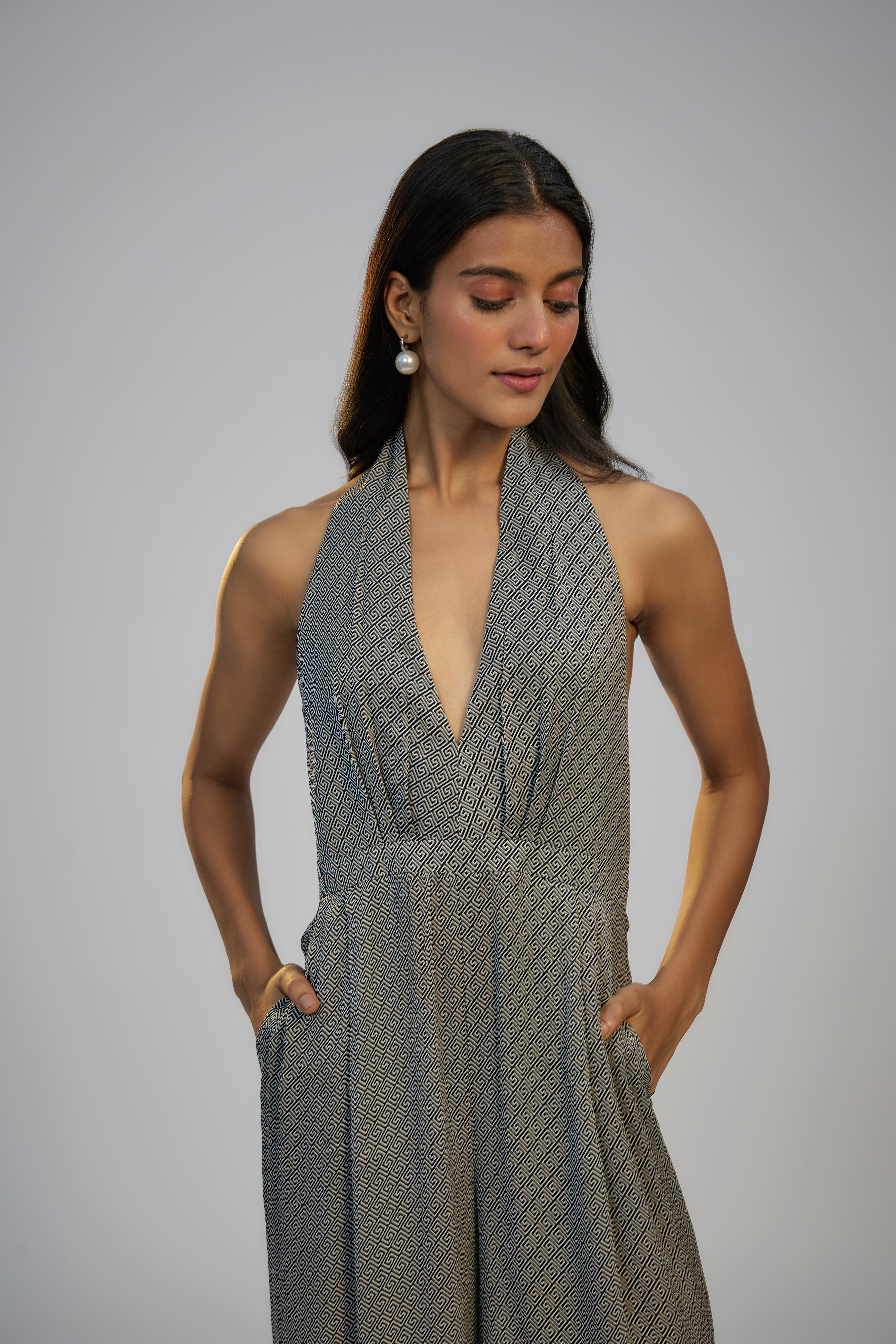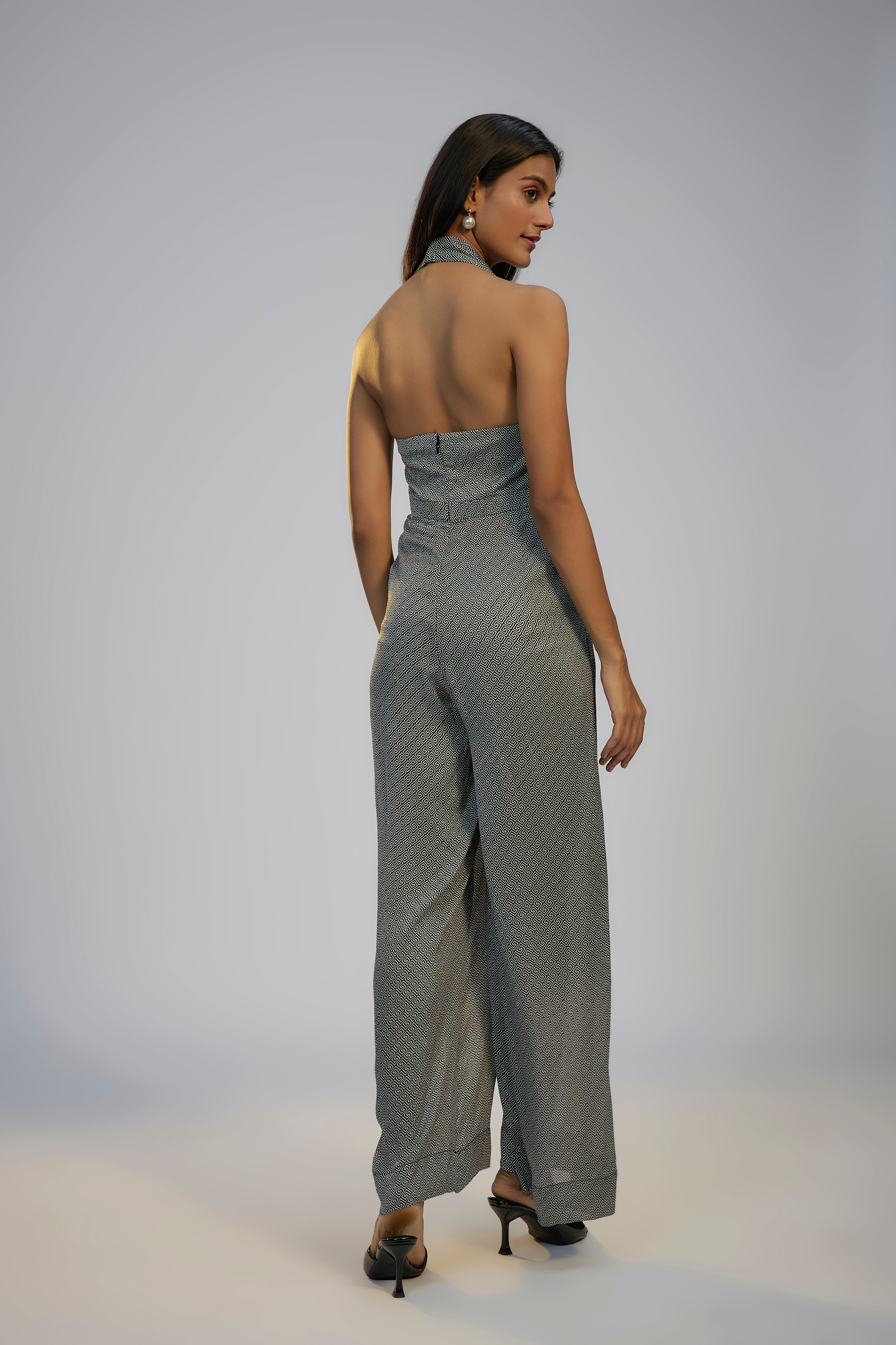 Neelam Black Cotton Crush Digital Printed Jumpsuit With Belt