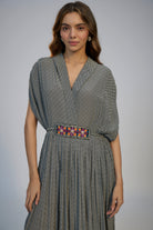 Featuring a black printed crepe jumpsuit with beads and shells embroidery.