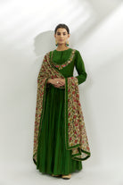 Dark Green Chanderi Zardosi Embroidered Anarkali Set