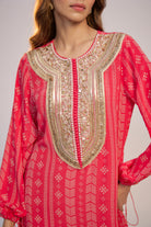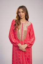 Fuschia Pink Printed and Embroidered Kaftan