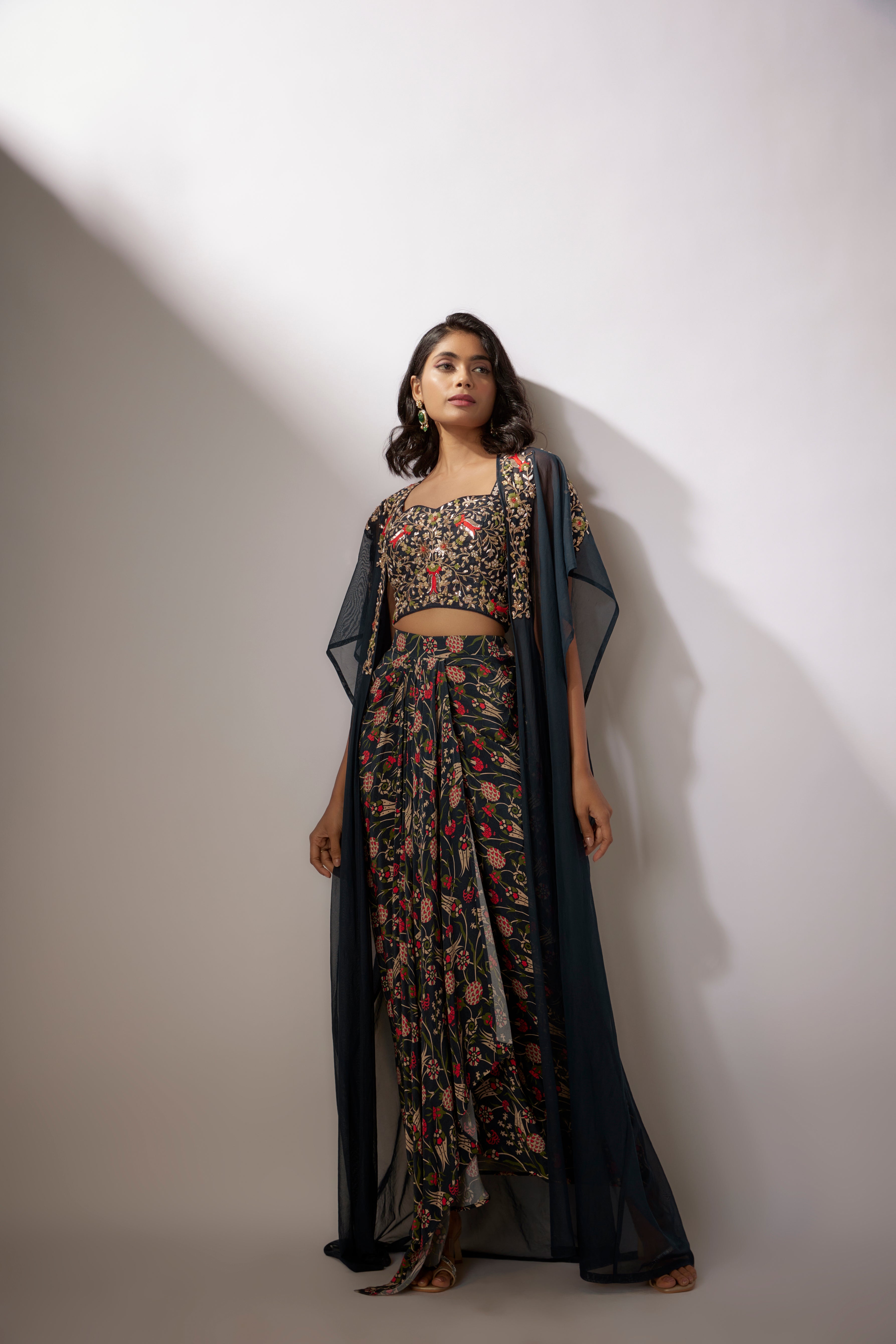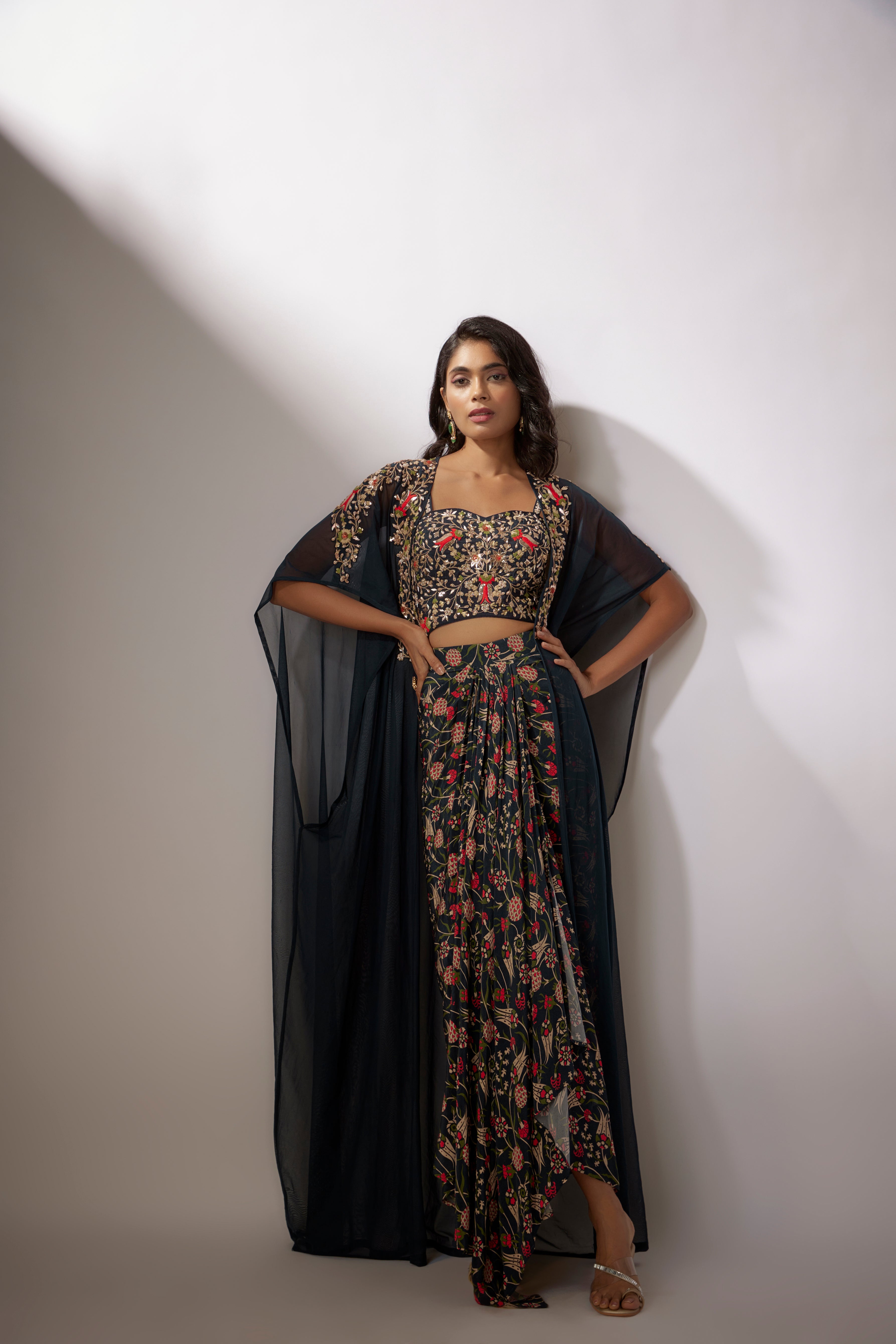 • FABRIC: Blouse- Dupion | Skirt-Crepe | Cape- net
