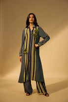 Yellow- Black Printed And Embroidered Kurta Set